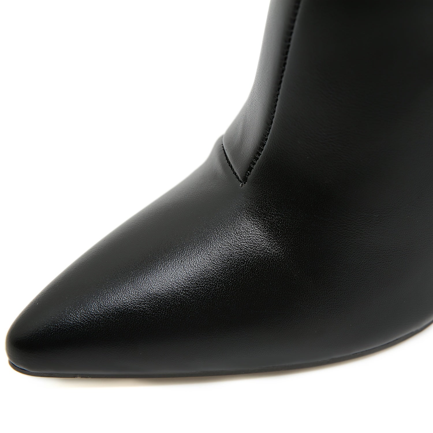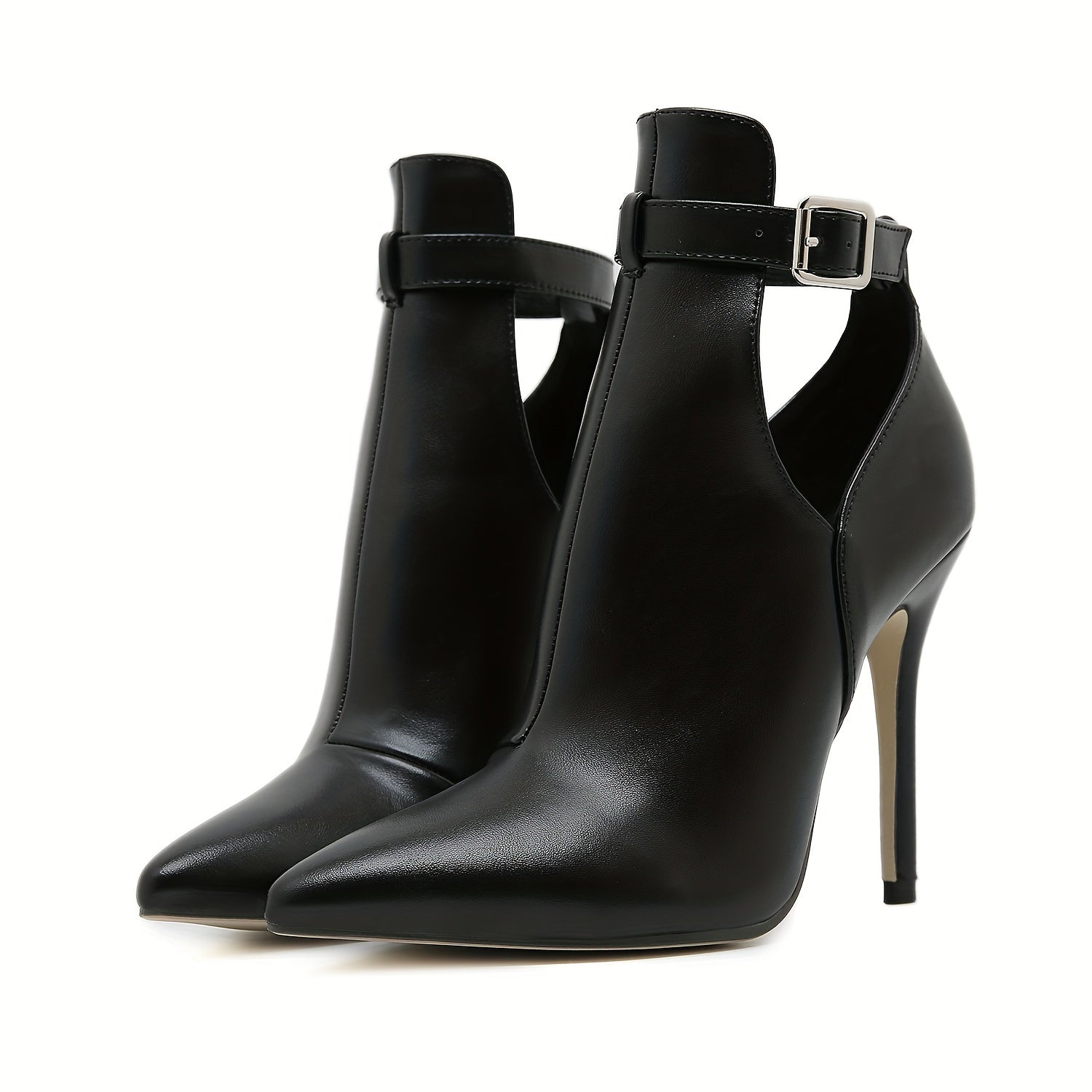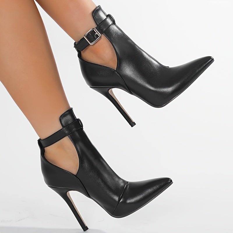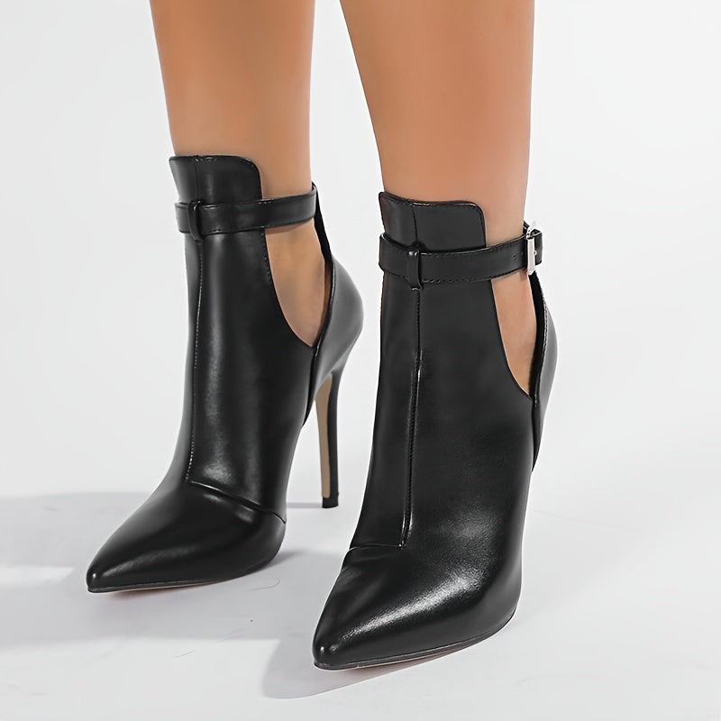Стильные ankle-ботильоны с пряжкой, острым носком, шпилькой, резиновой подошвой и текстильной стелькой. Сделано в Хуэйчжоу.