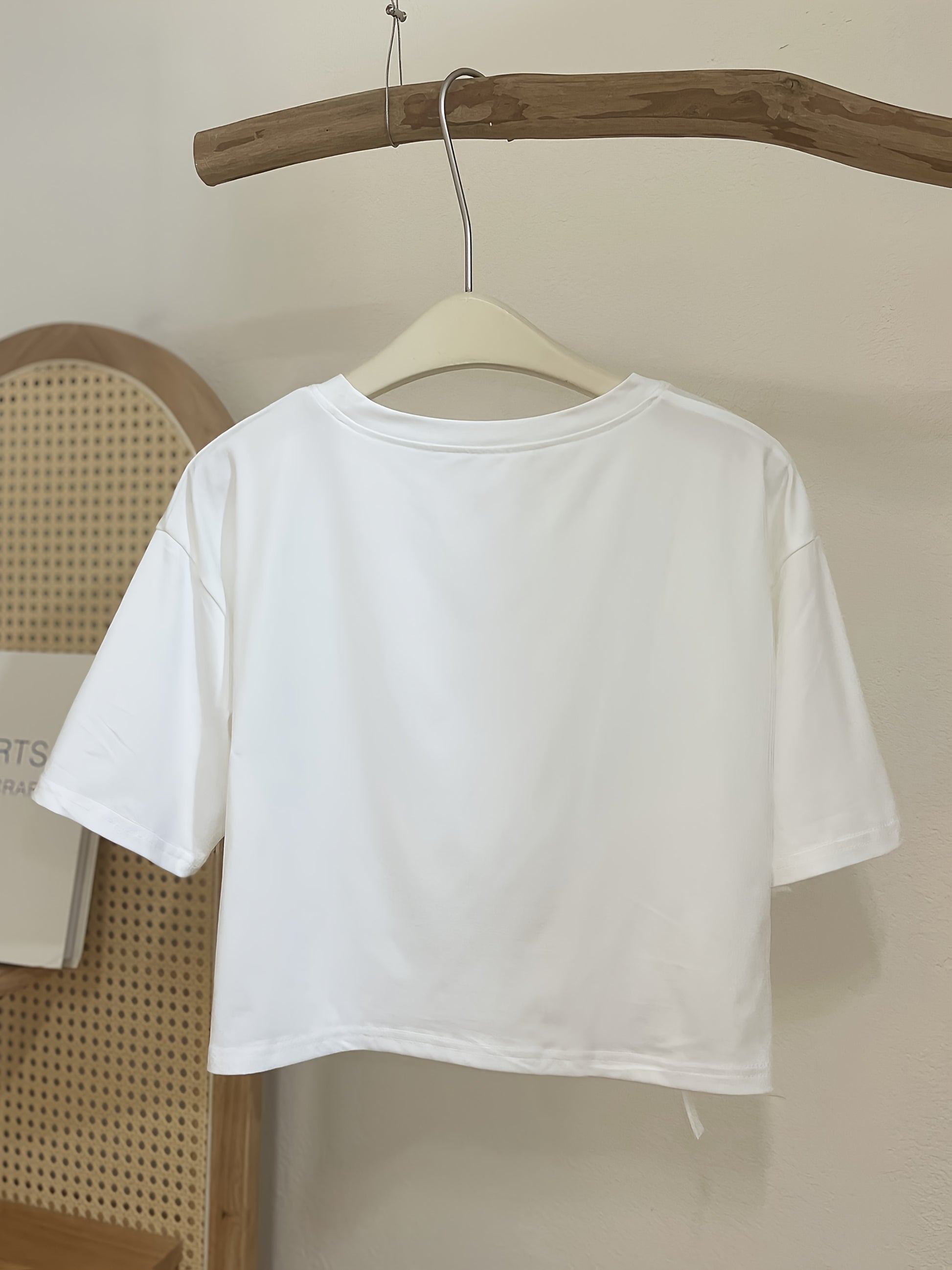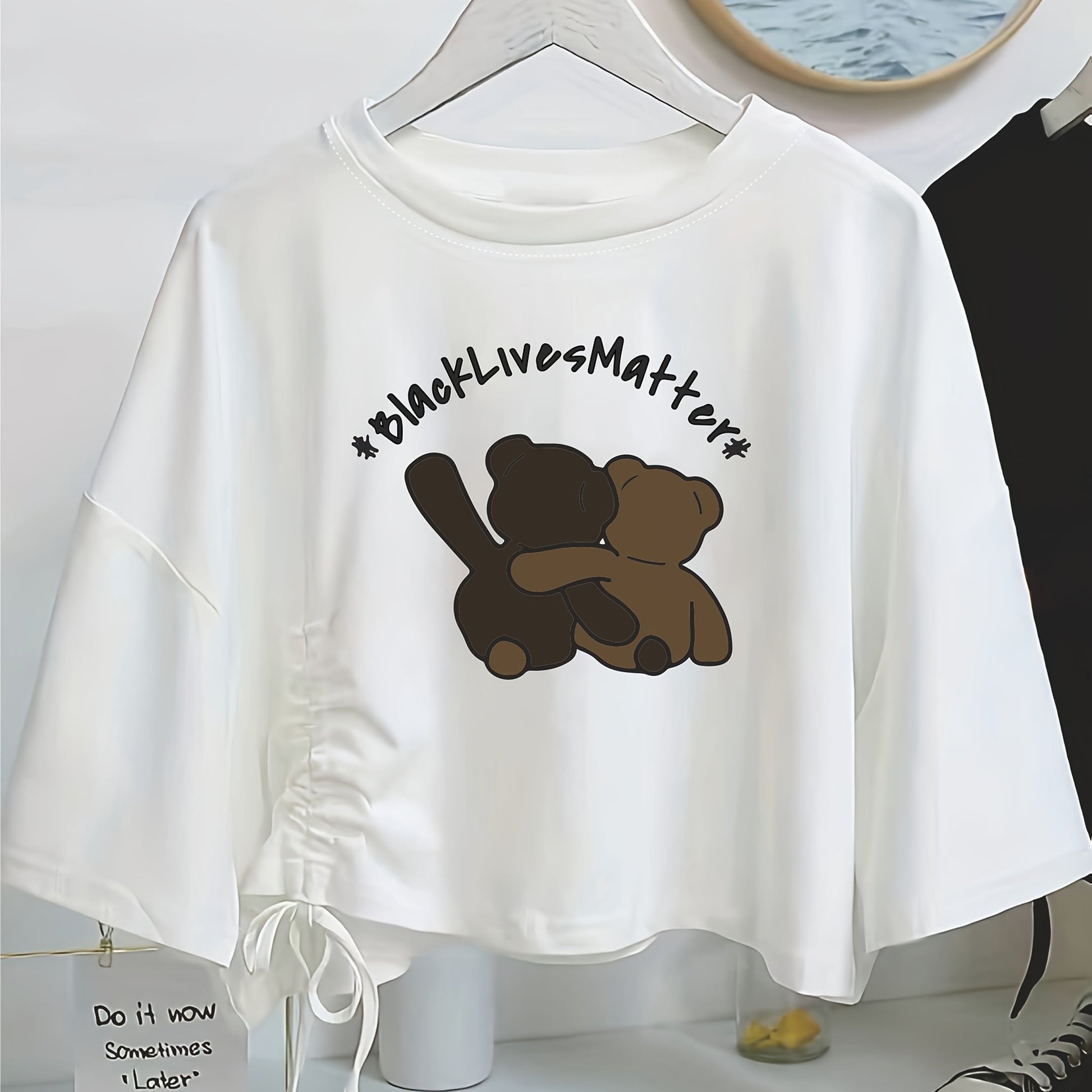 Стильный топ-кроп с принтом медведя для женщин, можно стирать в машине.