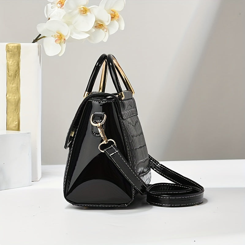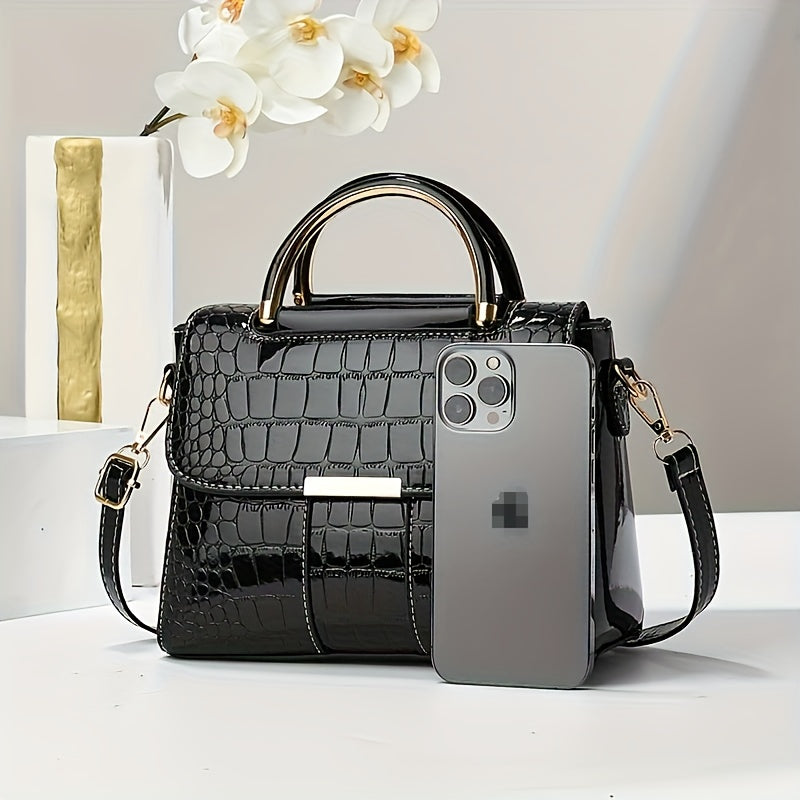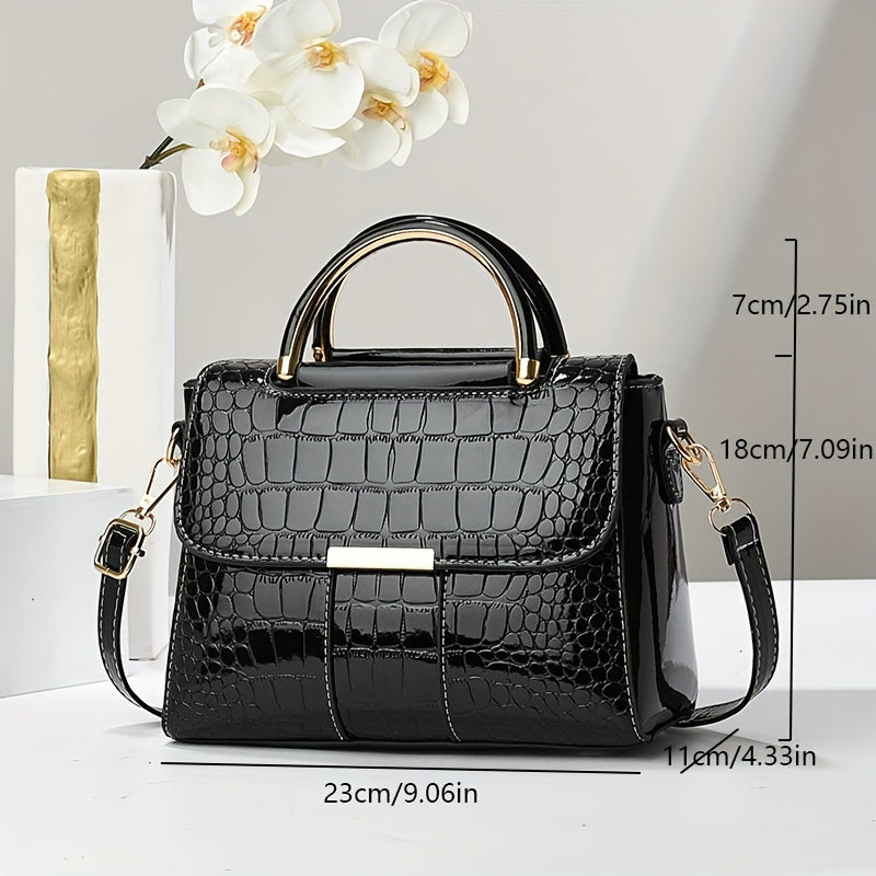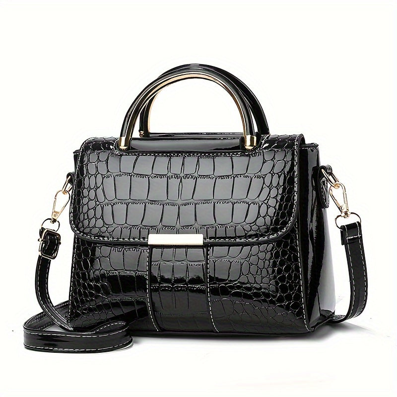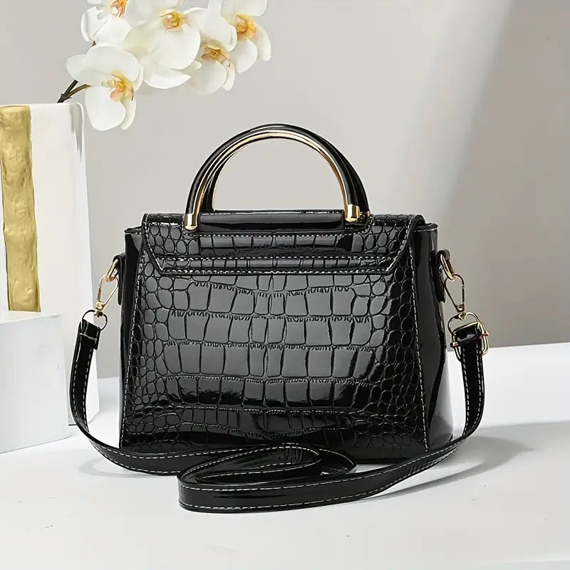 Стильная черная сумка через плечо с крокодиловым узором для женщин с магнитным замком и простым однотонным дизайном.
