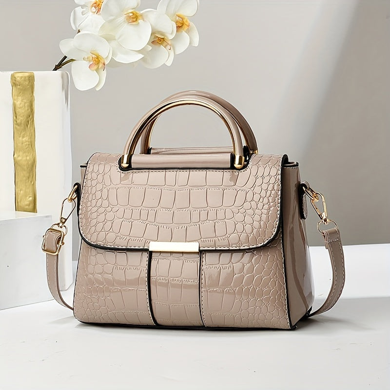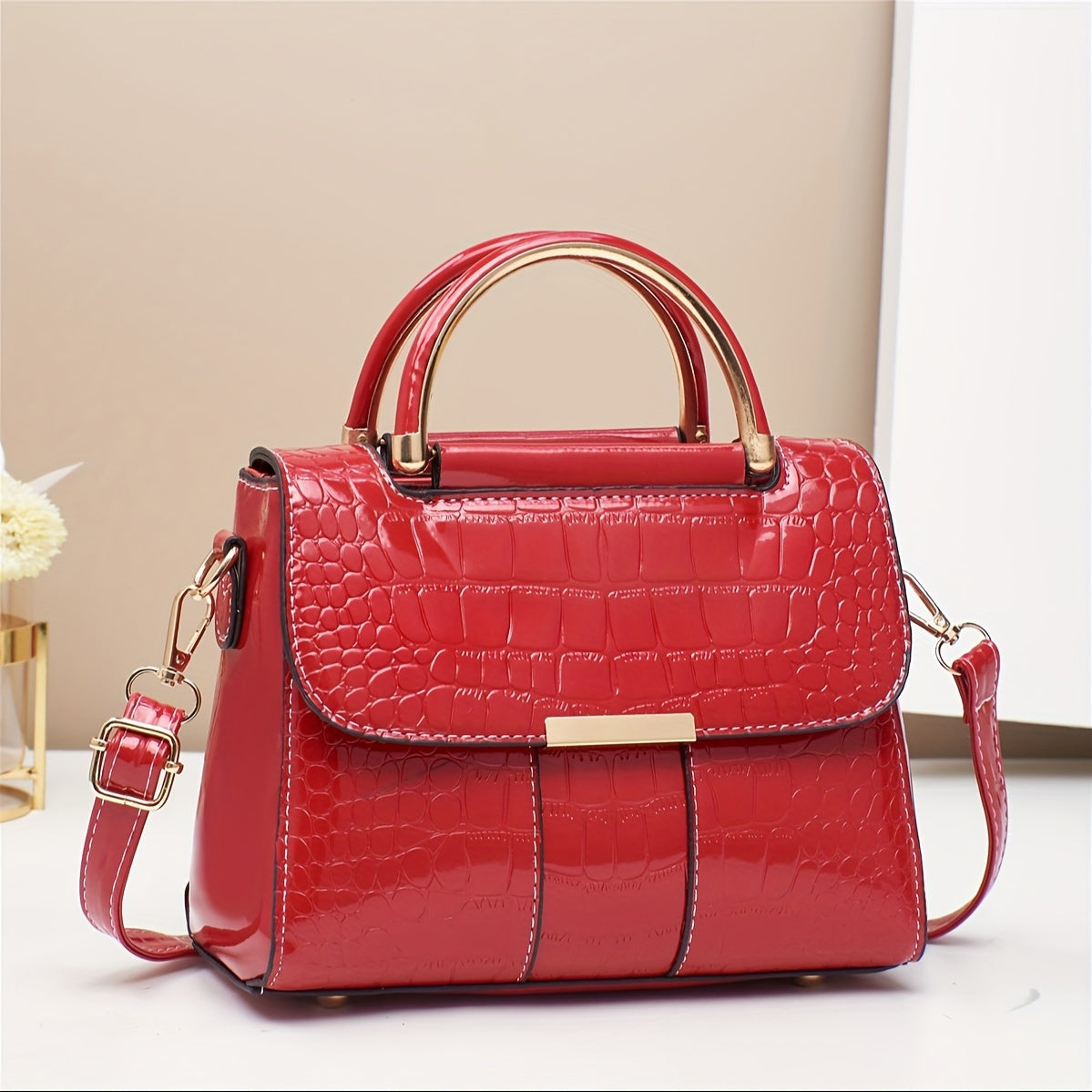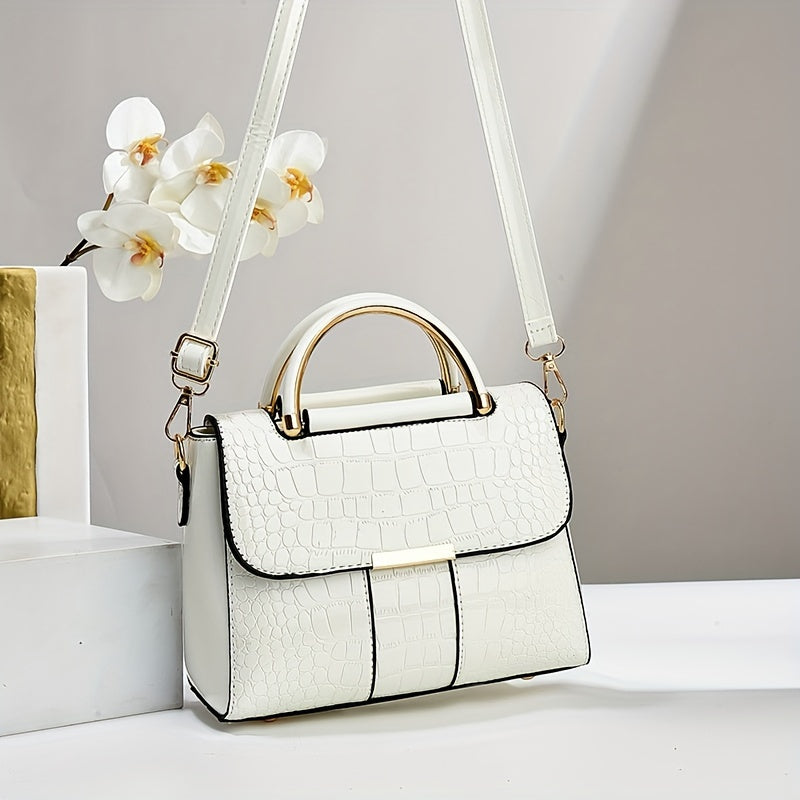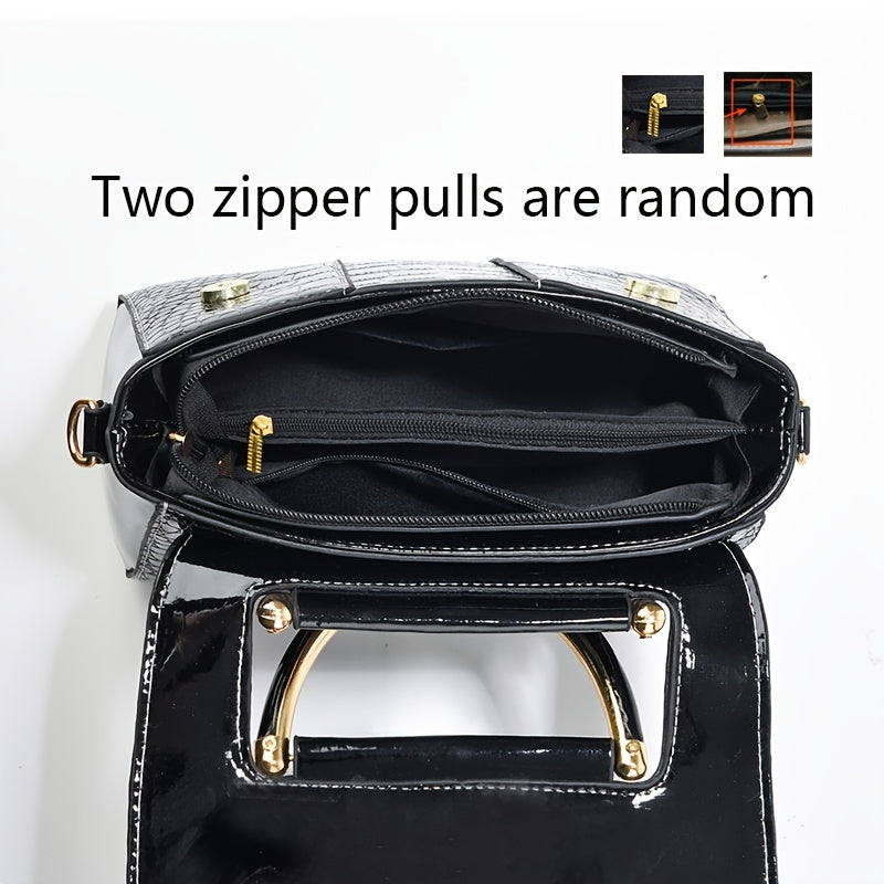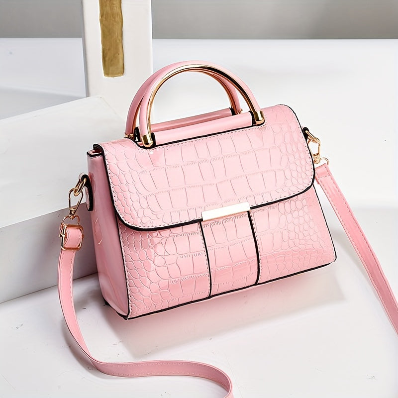 Стильная черная сумка через плечо с крокодиловым узором для женщин с магнитным замком и простым однотонным дизайном.