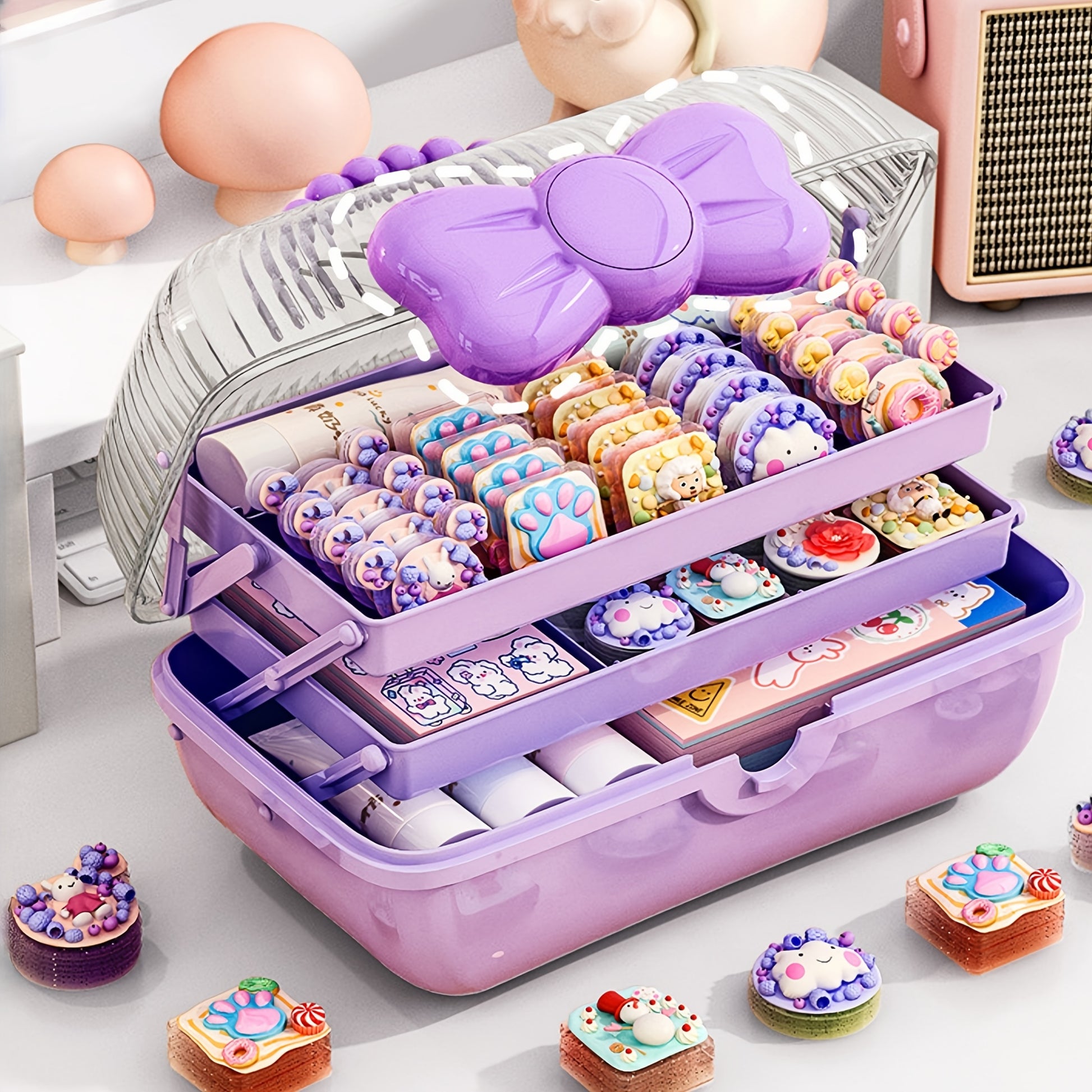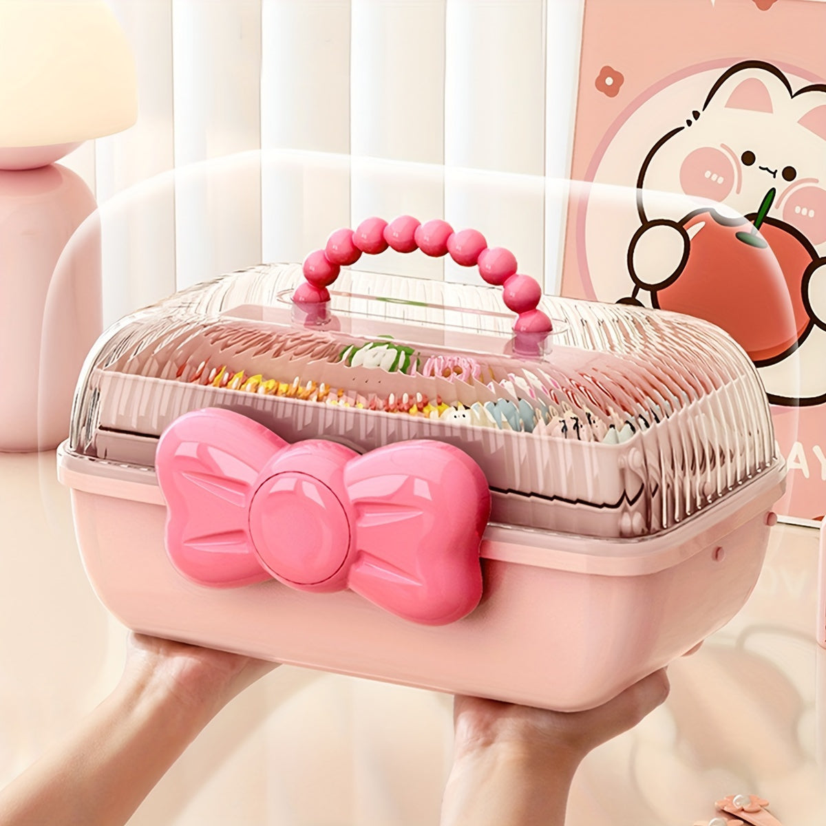 Пластиковый органайзер для украшений с бантиком для аксессуаров для волос и рукоделия
