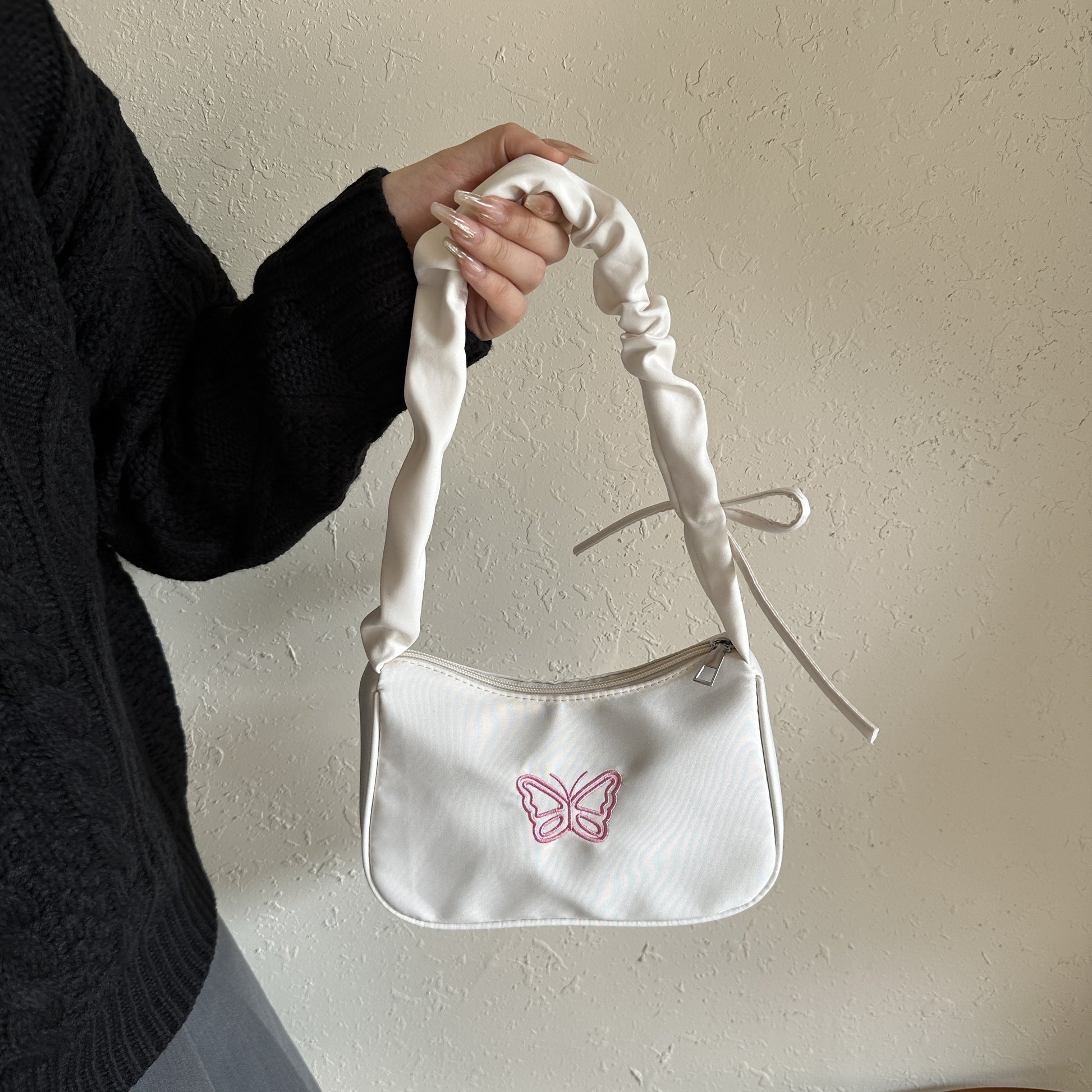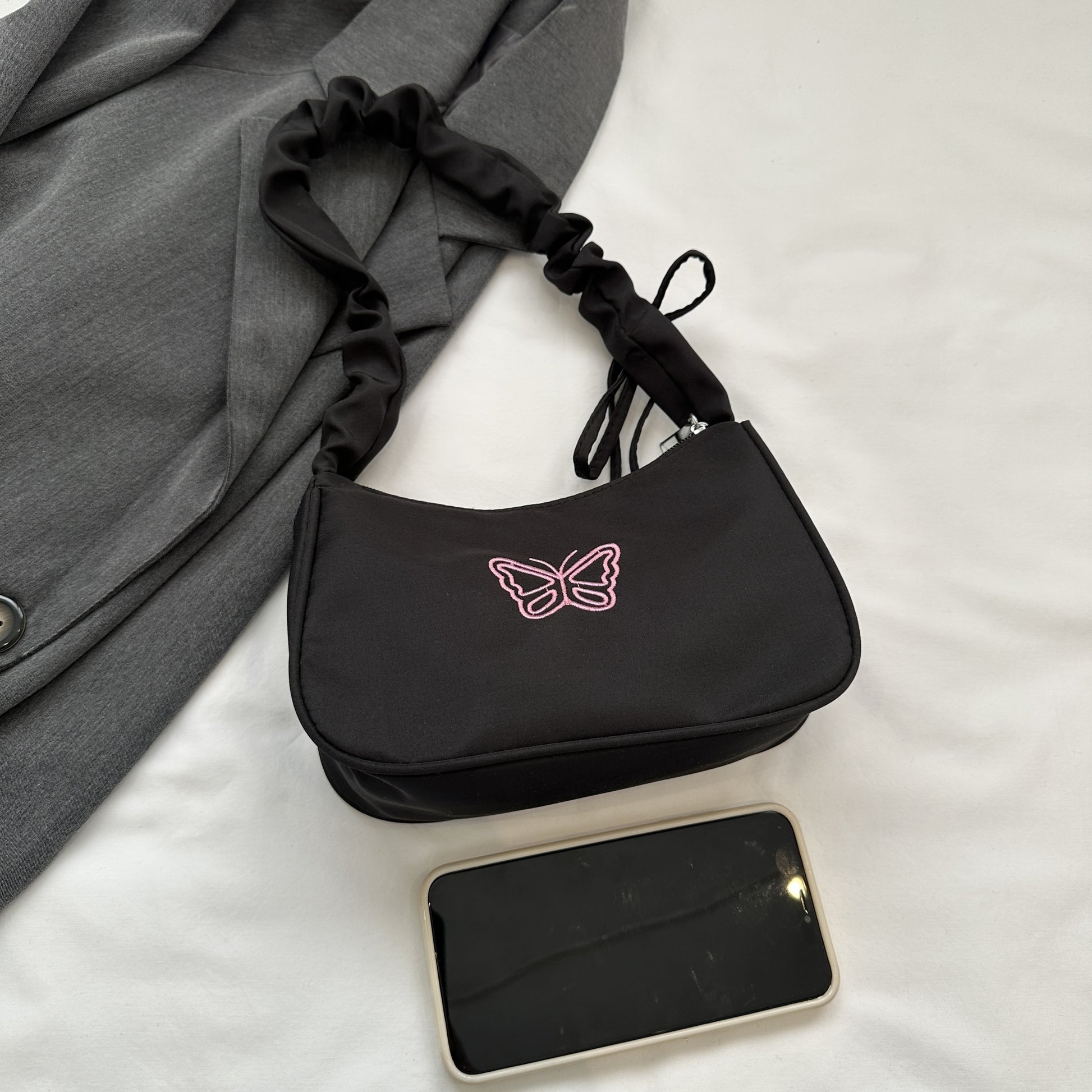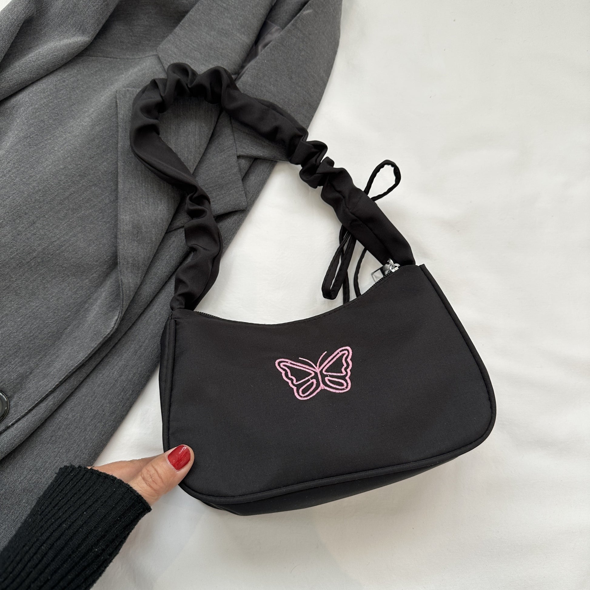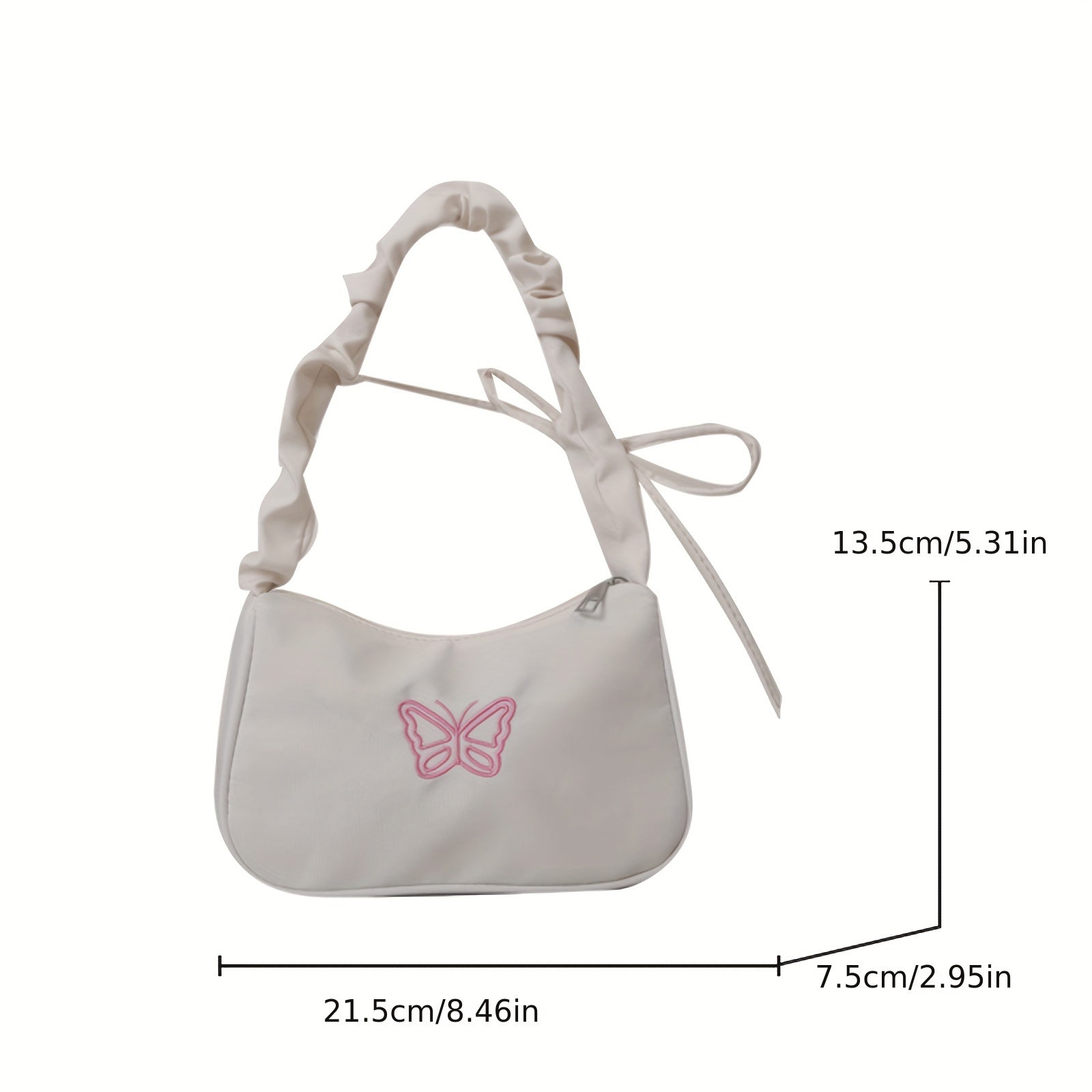 Стильная сумка через плечо с принтом бабочек для женщин, выполненная из повседневной оксфордской ткани с драпированным облачным дизайном, застежкой на молнии и полиэстеровой подкладкой.