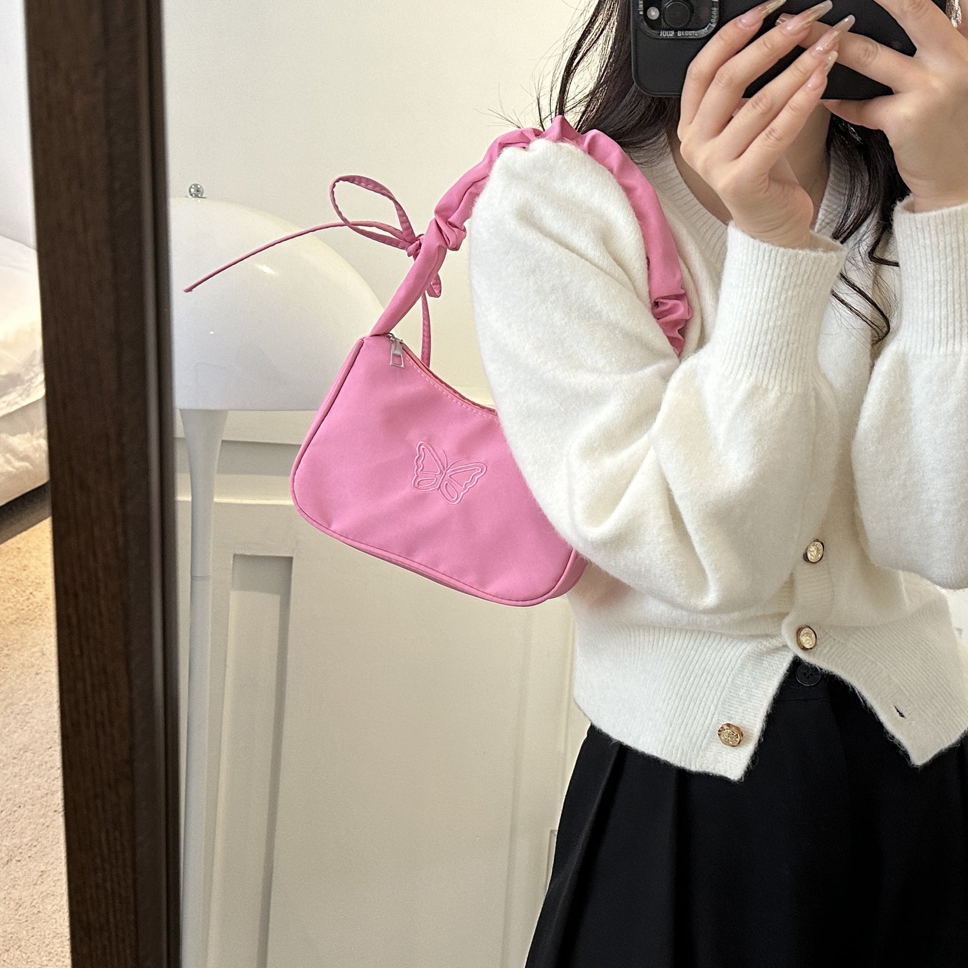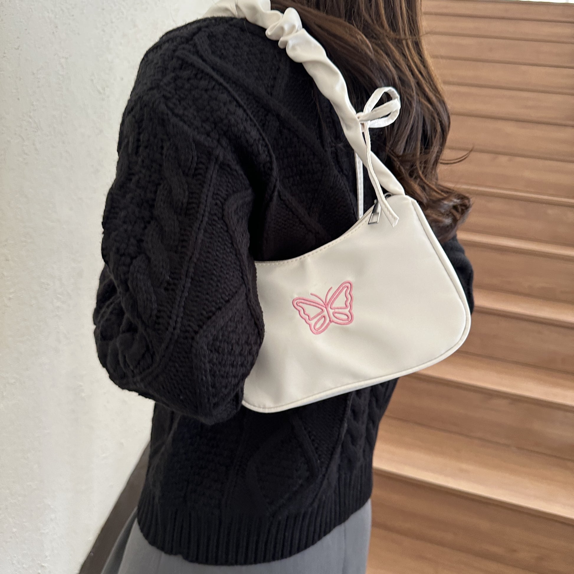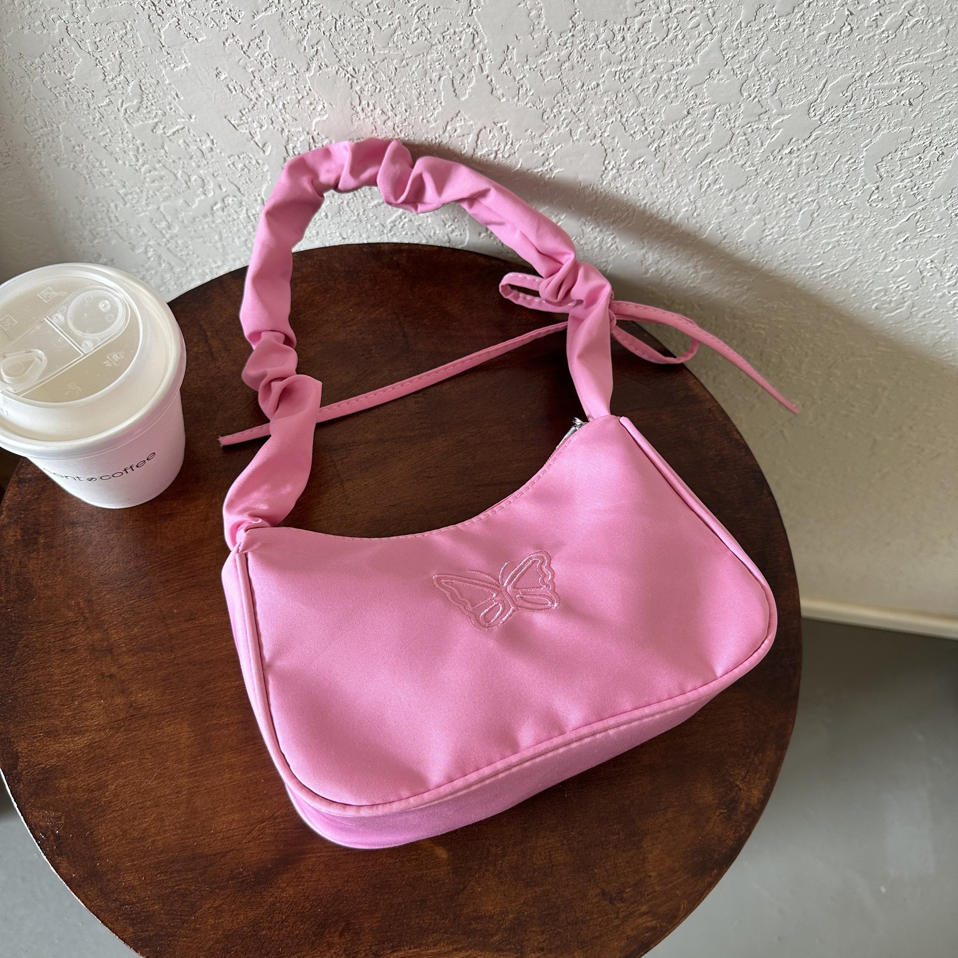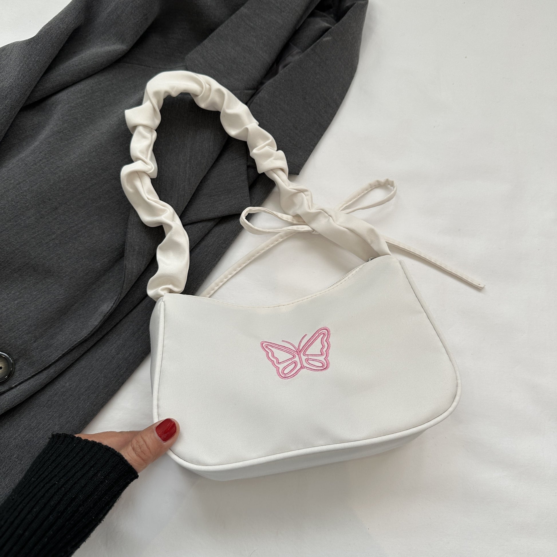 Стильная сумка через плечо с принтом бабочек для женщин, выполненная из повседневной оксфордской ткани с драпированным облачным дизайном, застежкой на молнии и полиэстеровой подкладкой.