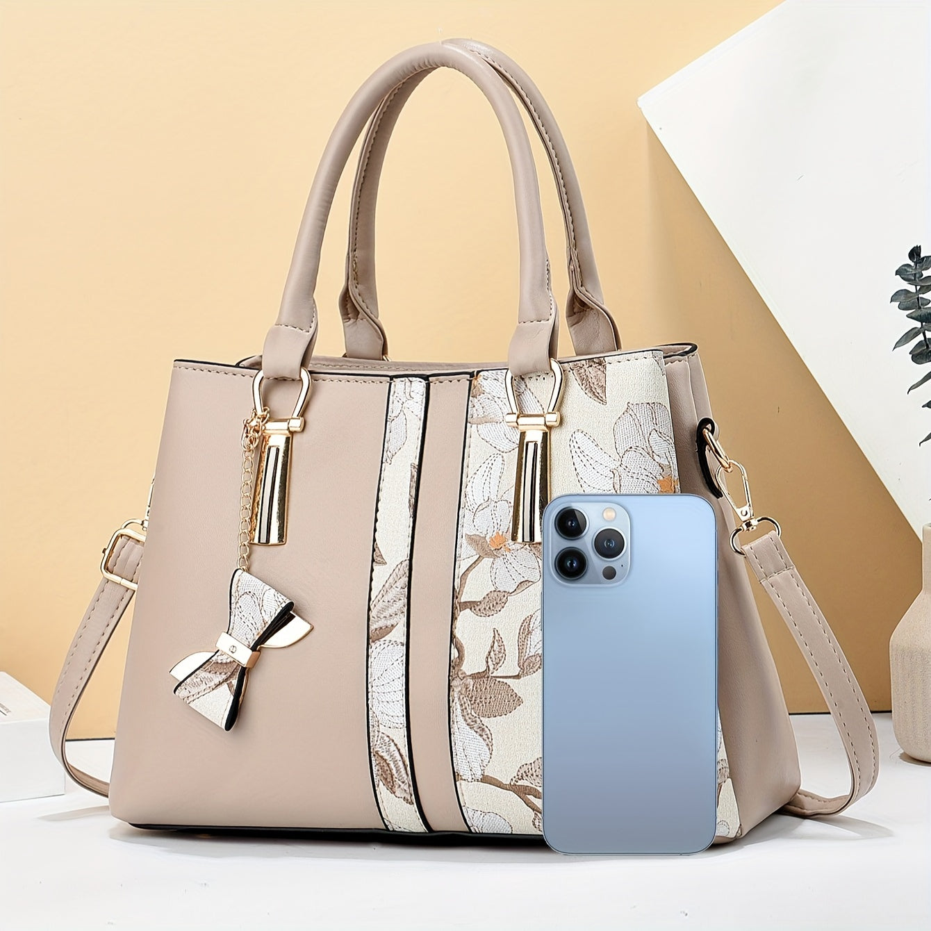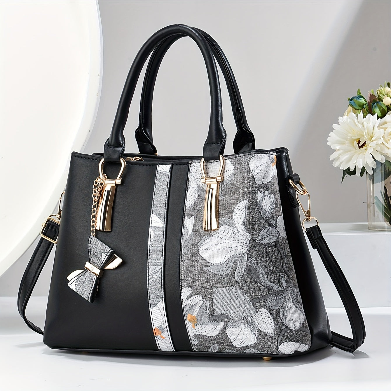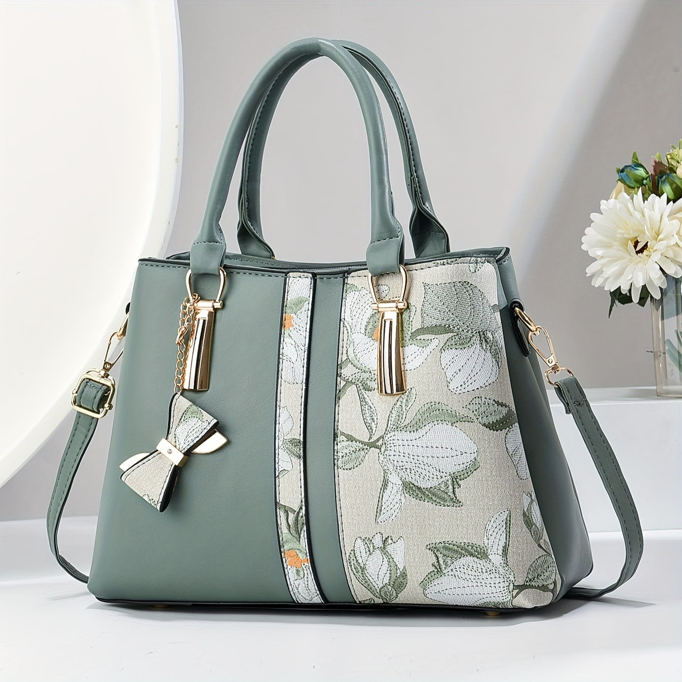 Стильная сумка-тоут с цветочным принтом для женщин с 3-слойным дизайном, карманами, застежкой на молнии и прочным PU-материалом в цветах хаки, кремовом, зеленом, синем, черном.