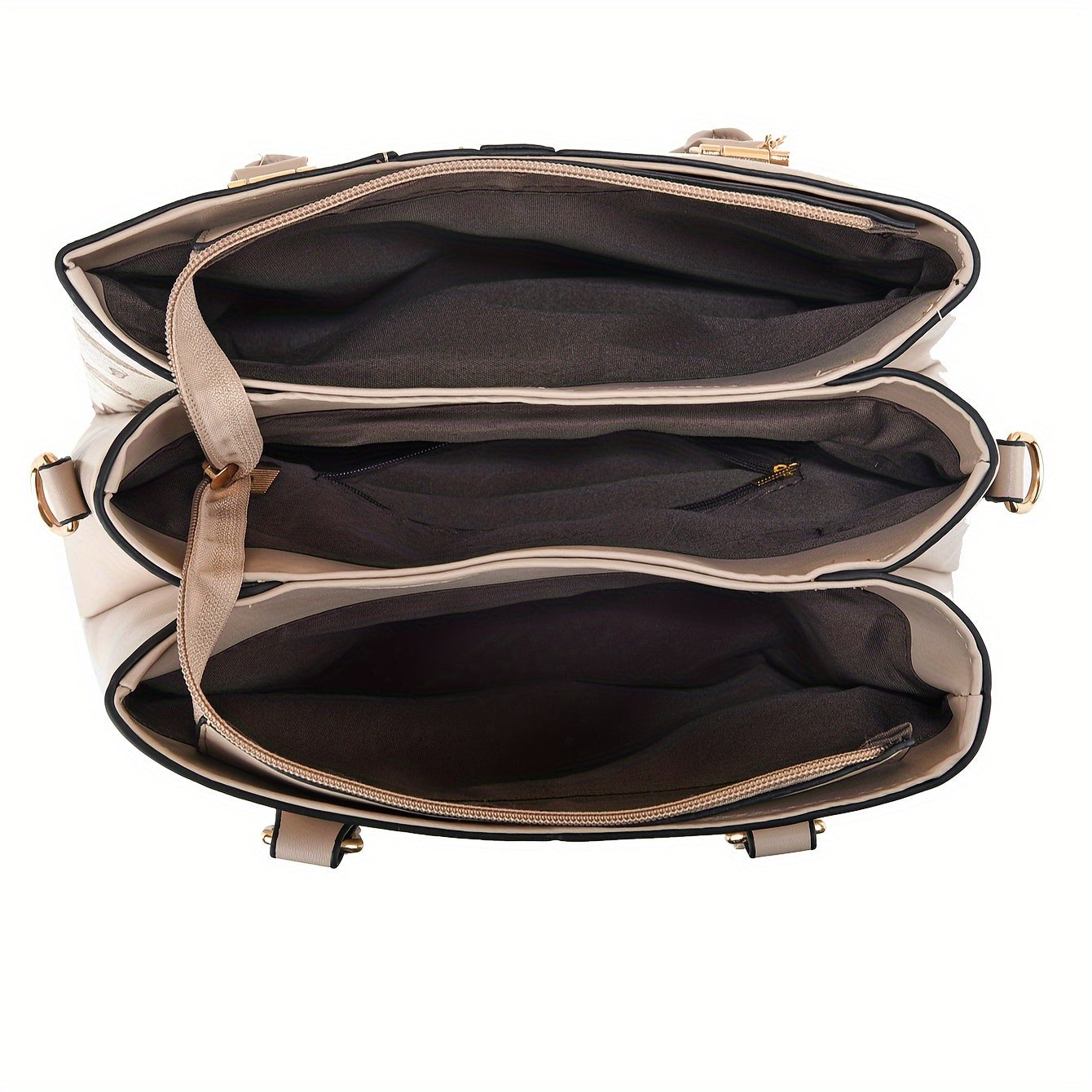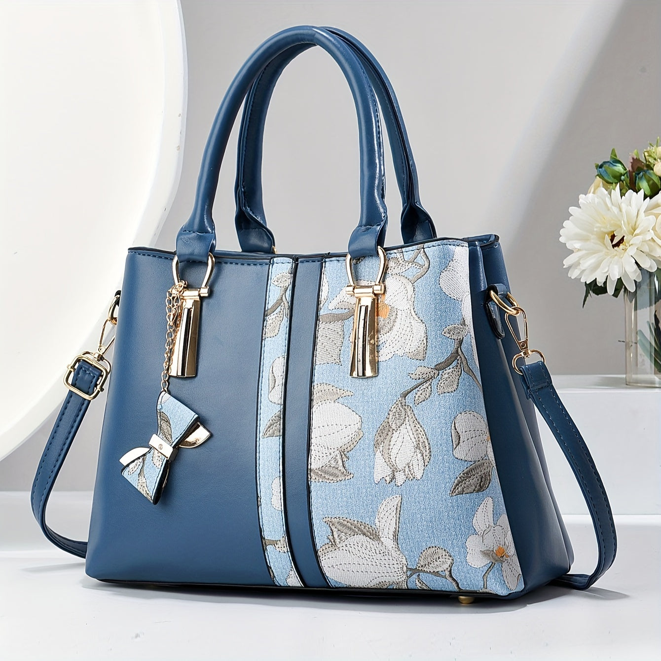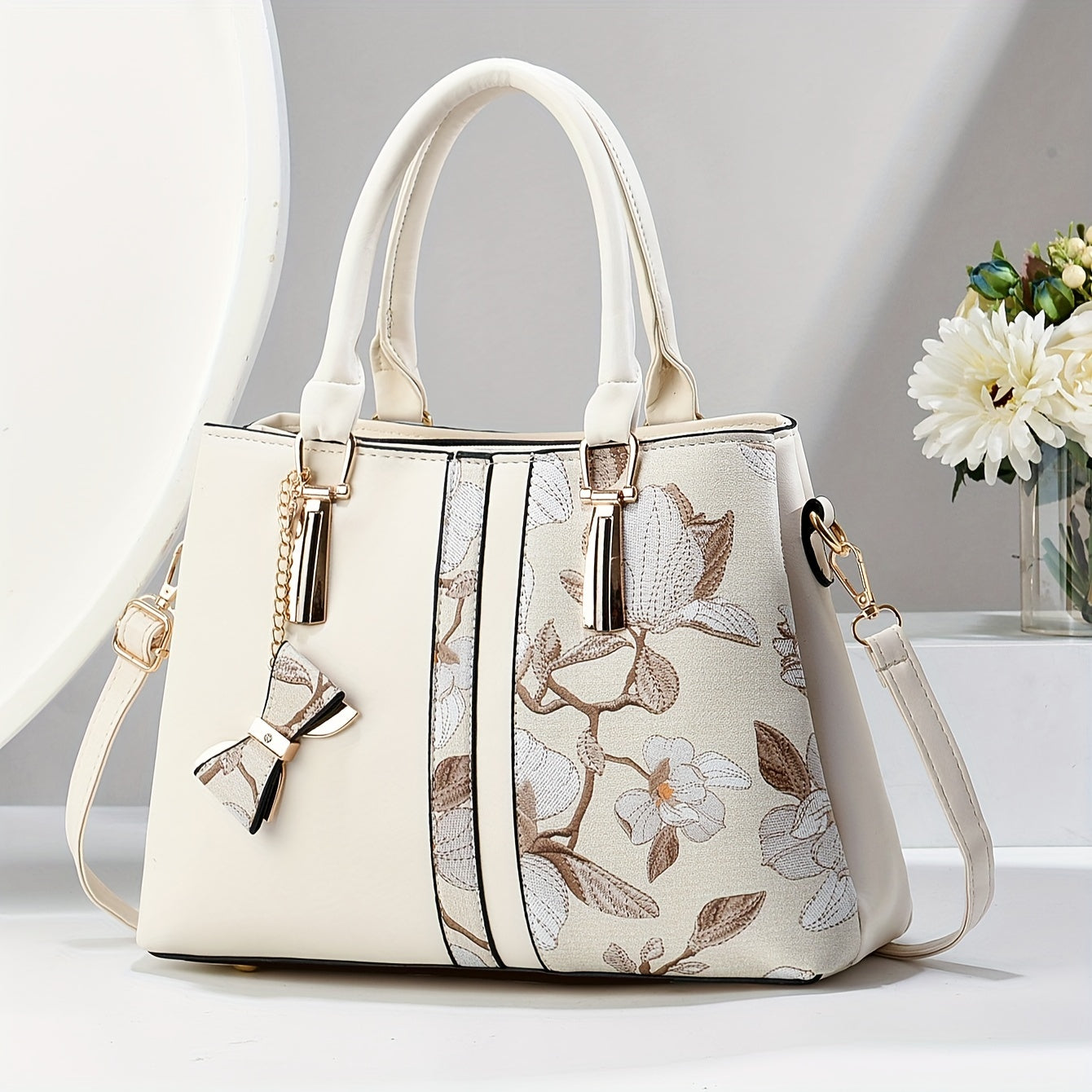 Стильная сумка-тоут с цветочным принтом для женщин с 3-слойным дизайном, карманами, застежкой на молнии и прочным PU-материалом в цветах хаки, кремовом, зеленом, синем, черном.