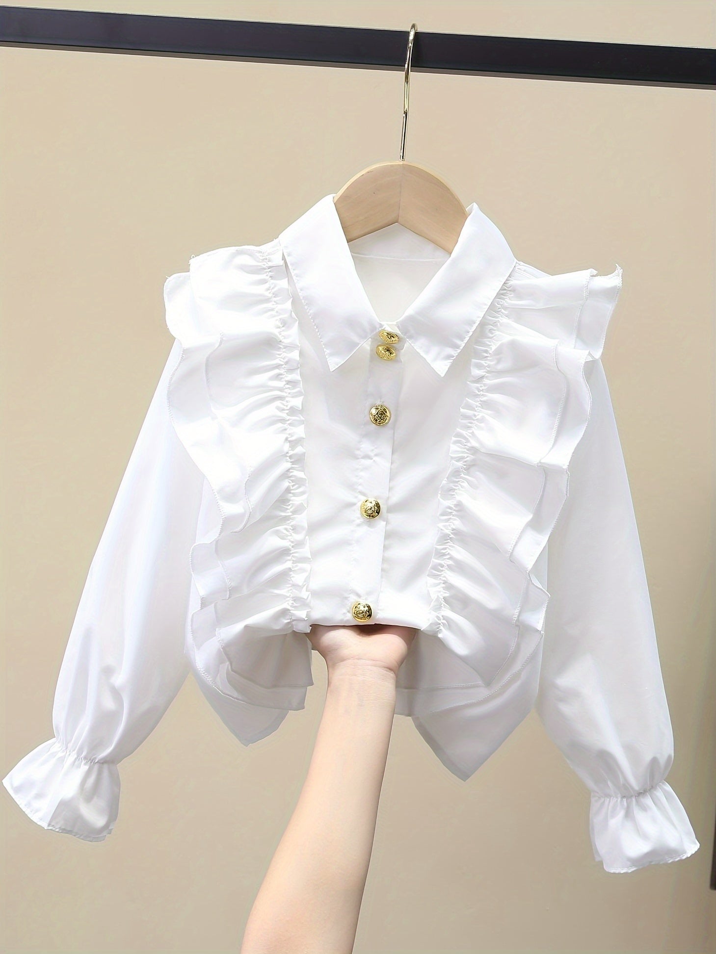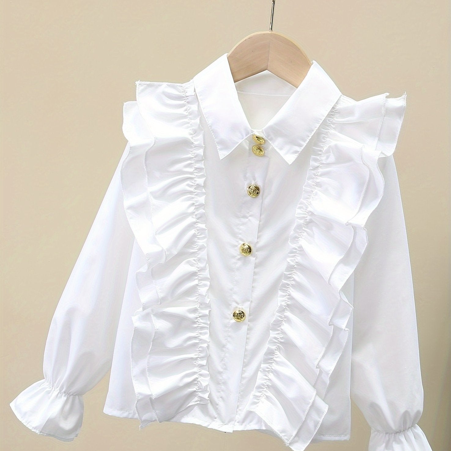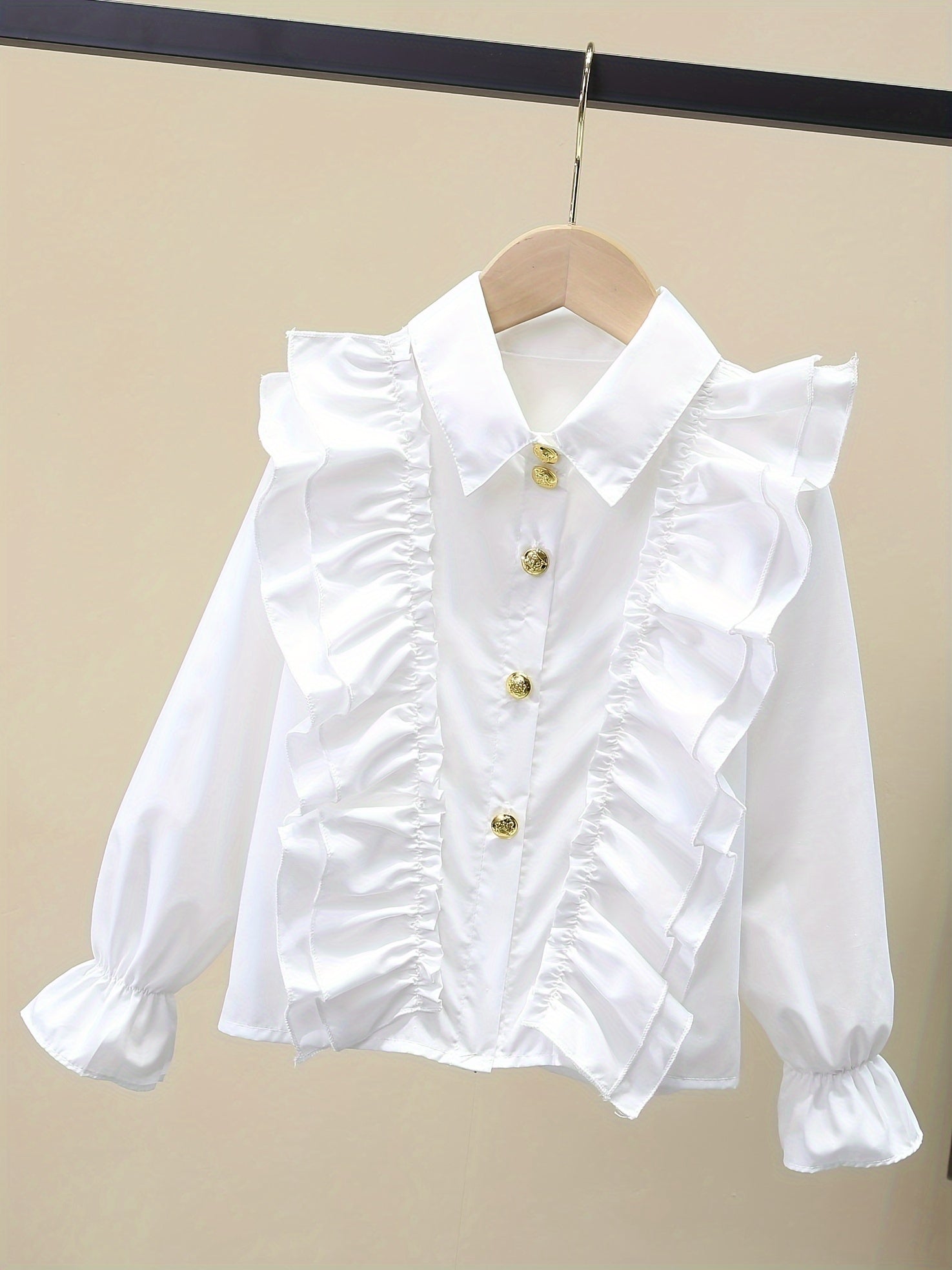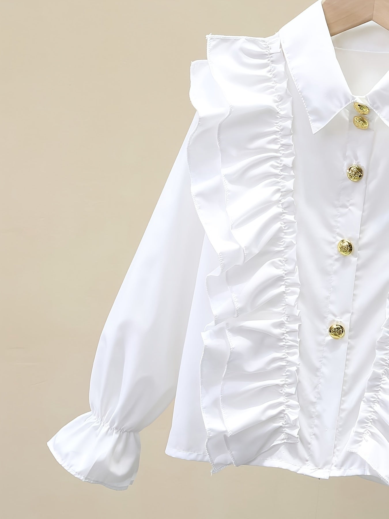 Длинная рубашка для девочек с рюшеобразными манжетами и металлическими пуговицами для школы или моды