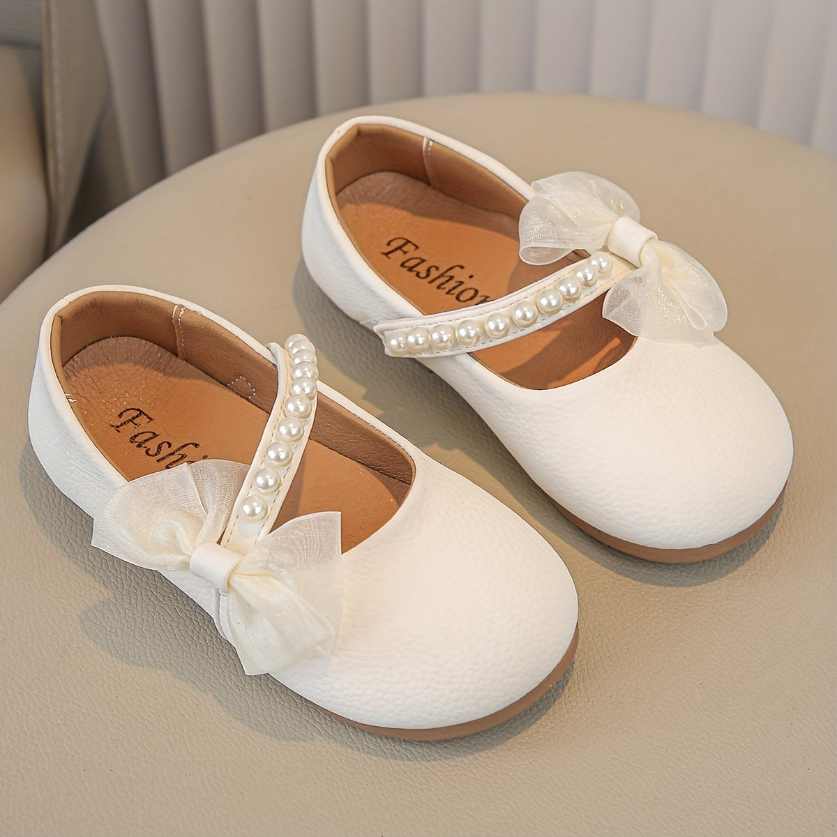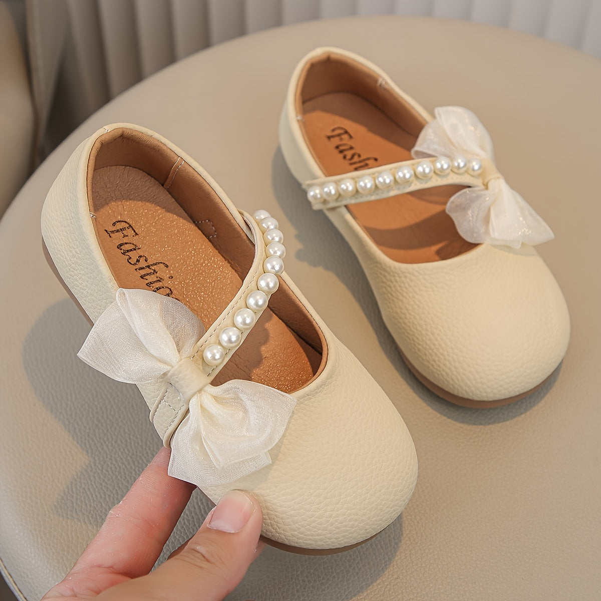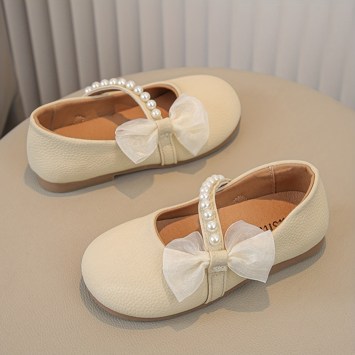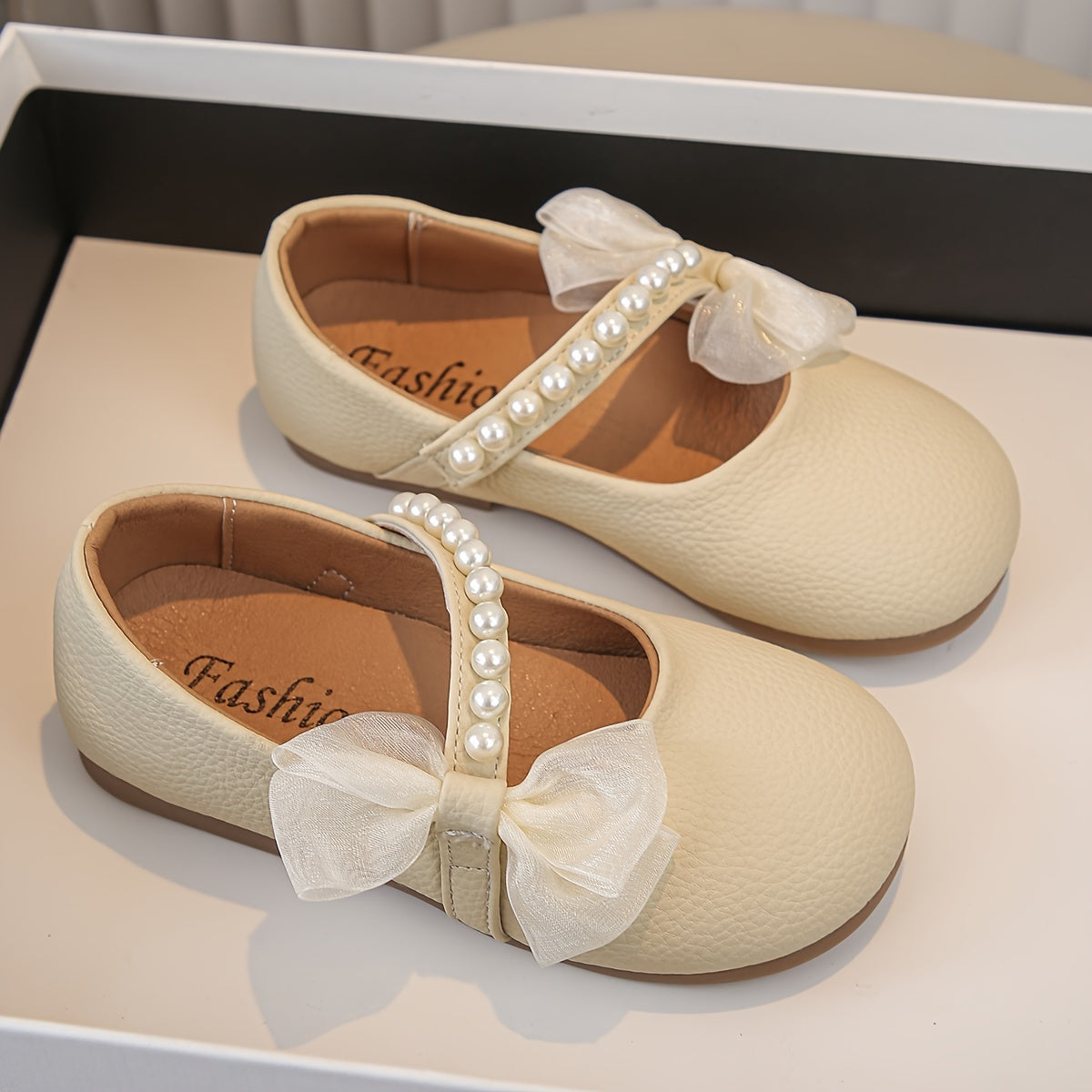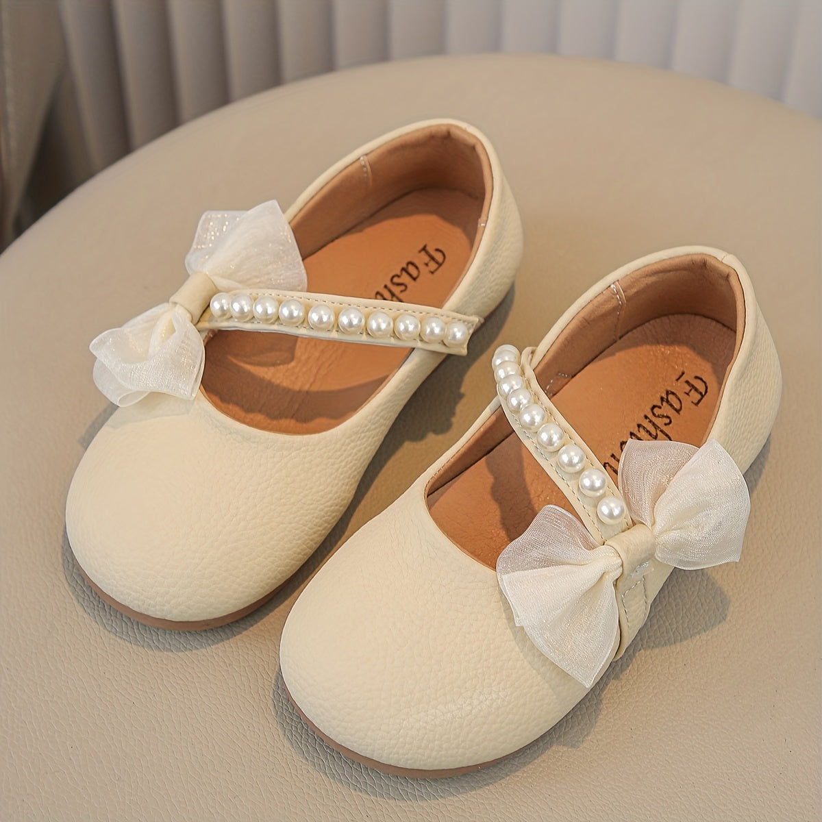 Детские балетки Mary Jane с жемчугом и бантом, бежевые, низкий топ, круглым носом, повседневные и танцевальные туфли