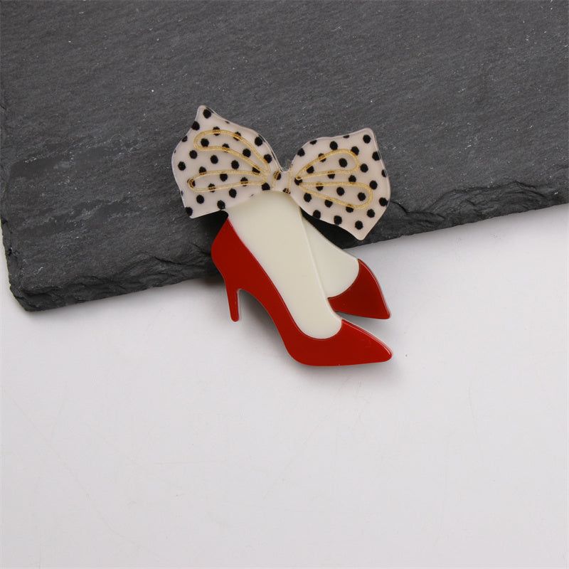 Брошь в виде стильных туфель на высоком каблуке: модный и оригинальный аксессуар для любого случая