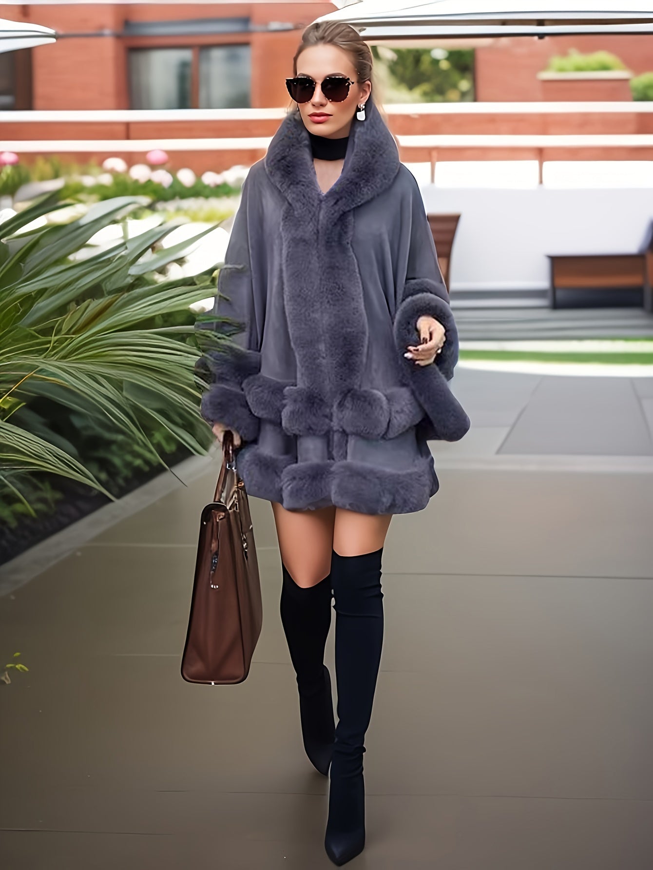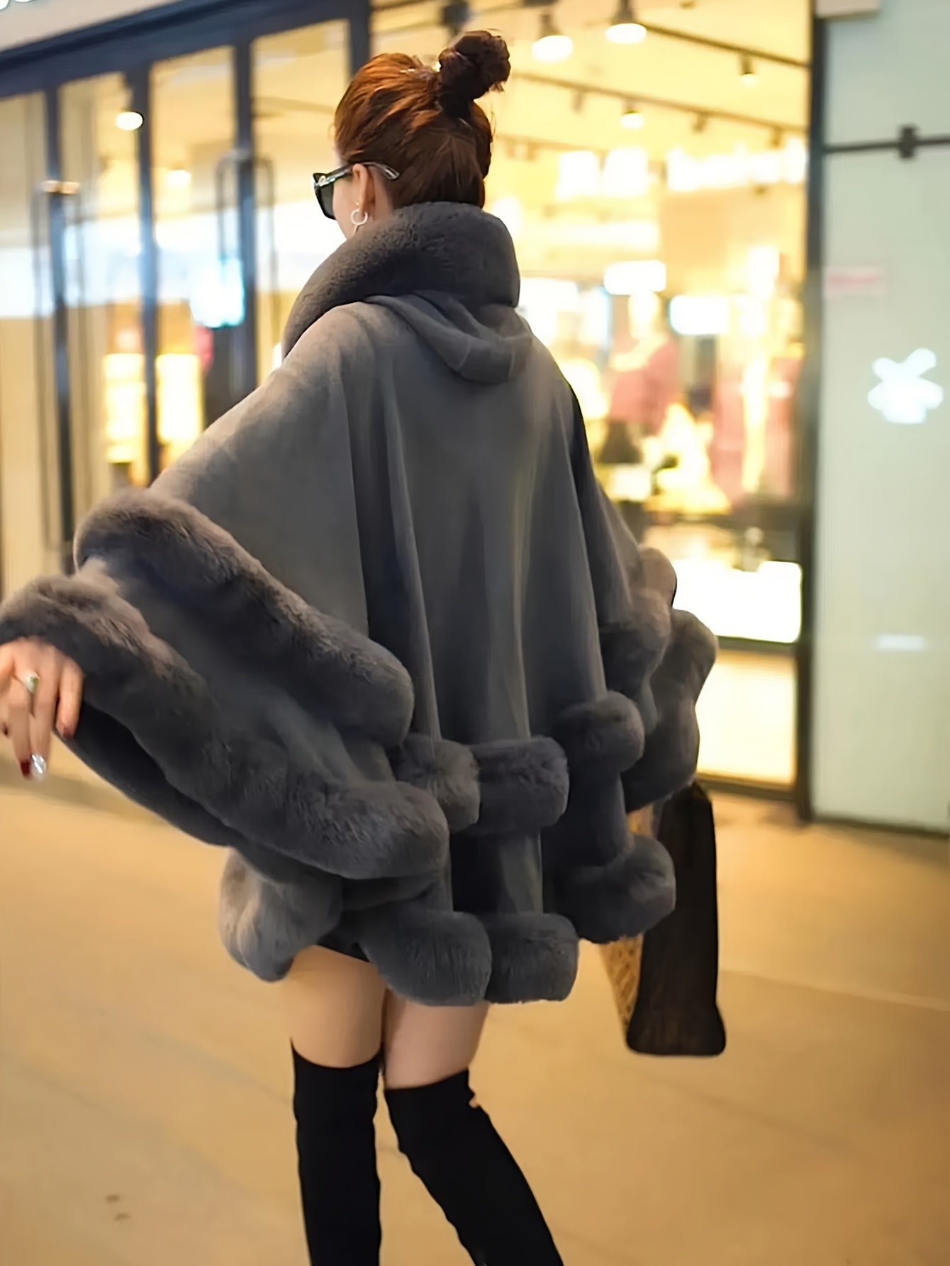 Плюс сайз накидка с капюшоном из искусственного меха однотонного цвета, осень-зима, вязанный акрил