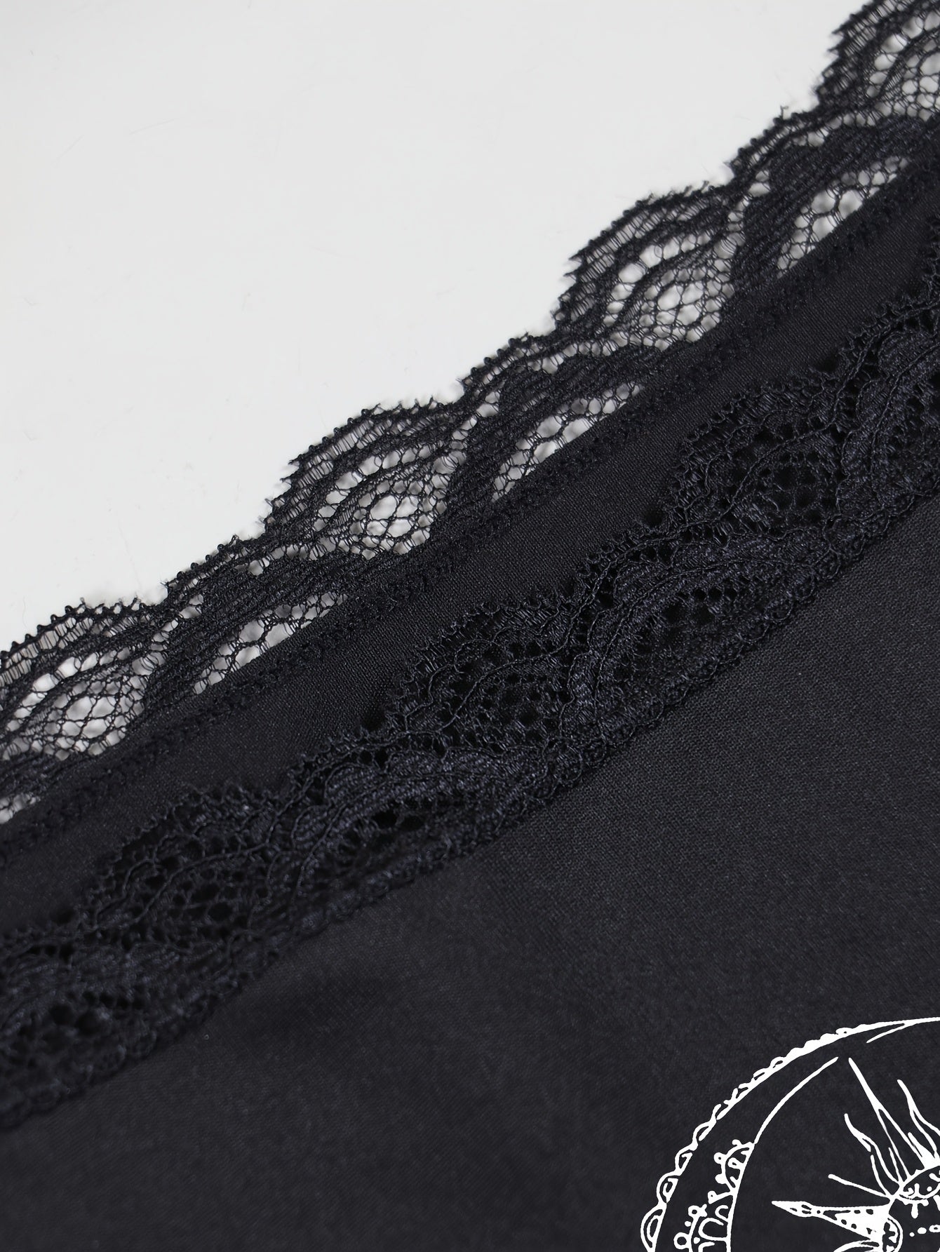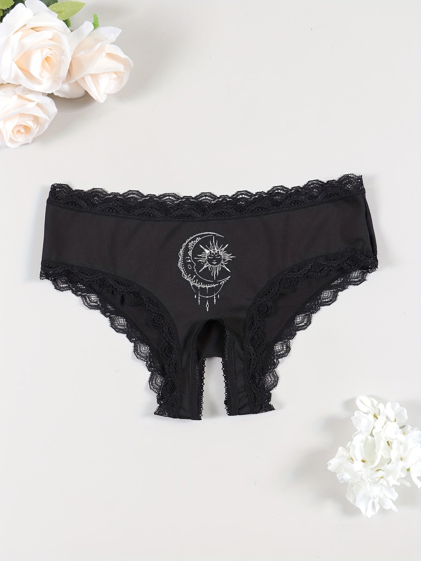 Стильные кружевные треугольные трусики с принтами луны и солнца, дышащие и удобные с сексуальным дизайном с открытым шагом.