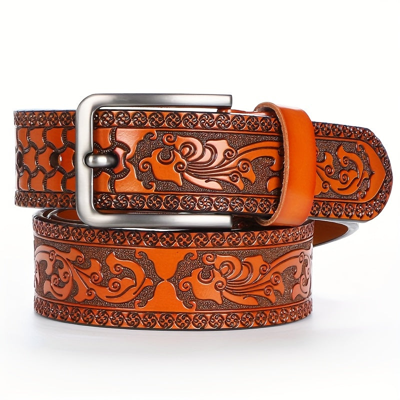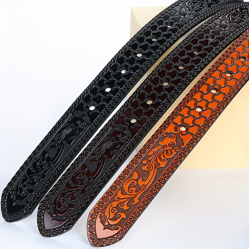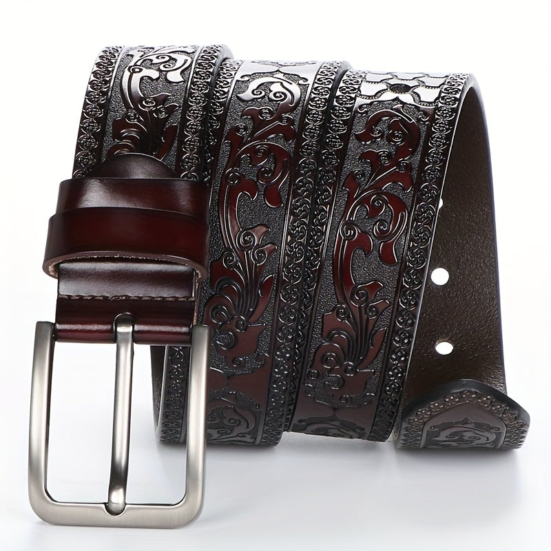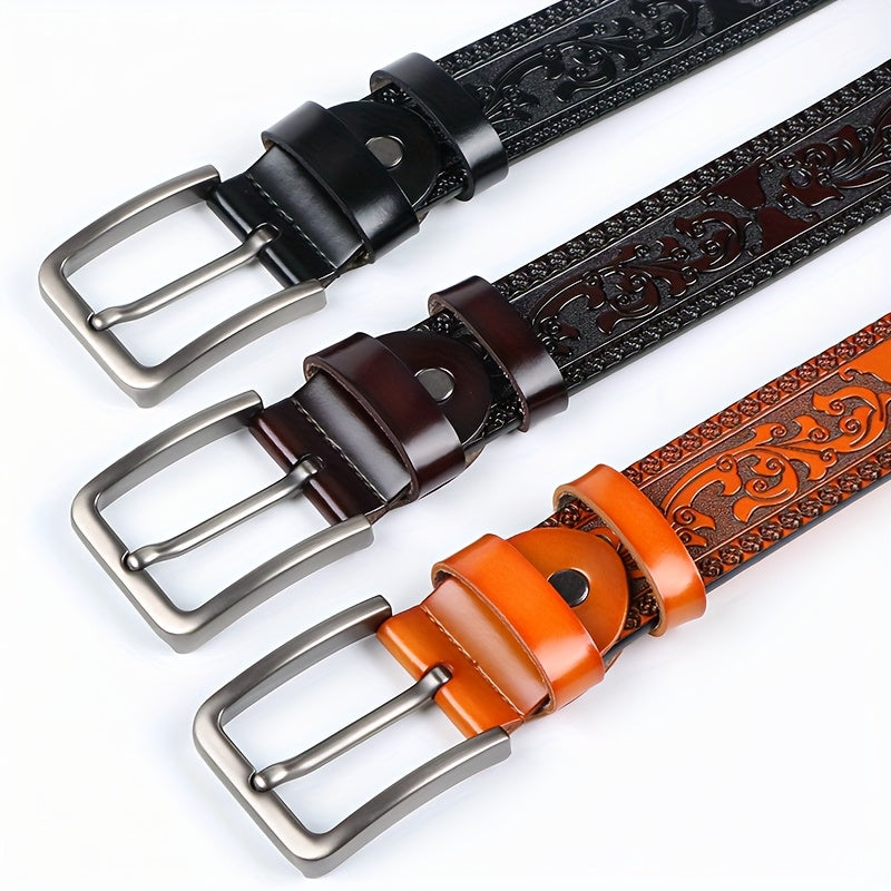 Мужской кожаный ремень с металлической пряжкой в винтажном стиле для делового повседневного ношения