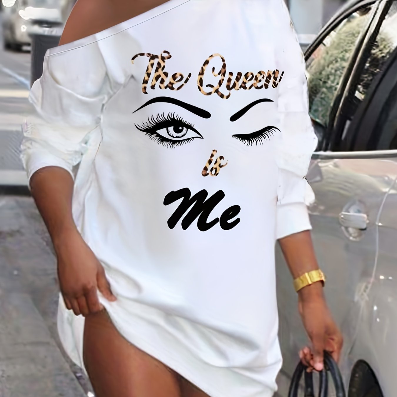 Футболка-платье с открытыми плечами и леопардовым принтом, черный полиэстер, эластичный, повседневный