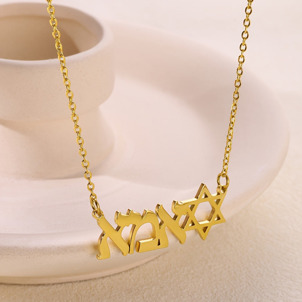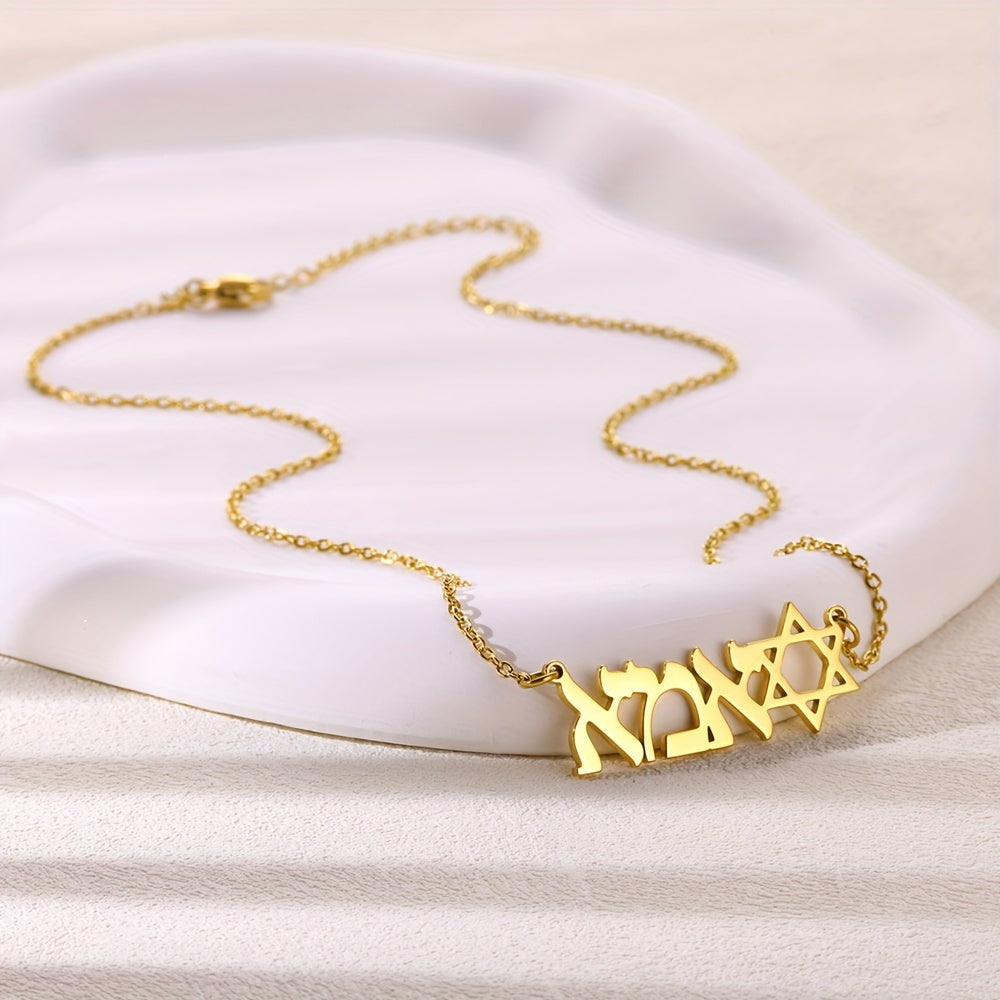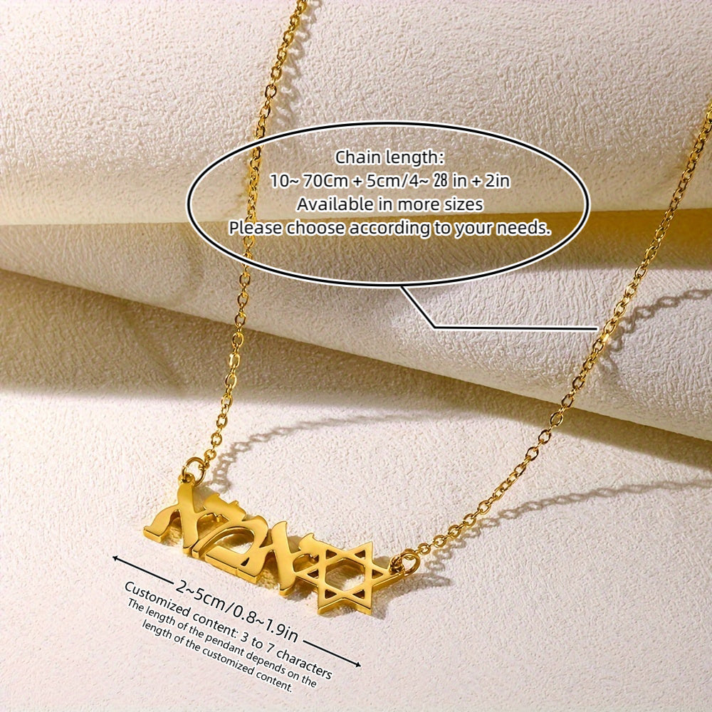 Стильное персонализированное ожерелье с именем на иврите и подвеской в виде звезды Давида из нержавеющей стали с 18-каратным золотым покрытием, элегантный французский дизайн, идеально подходящее для повседневной носки и праздничных подарков.