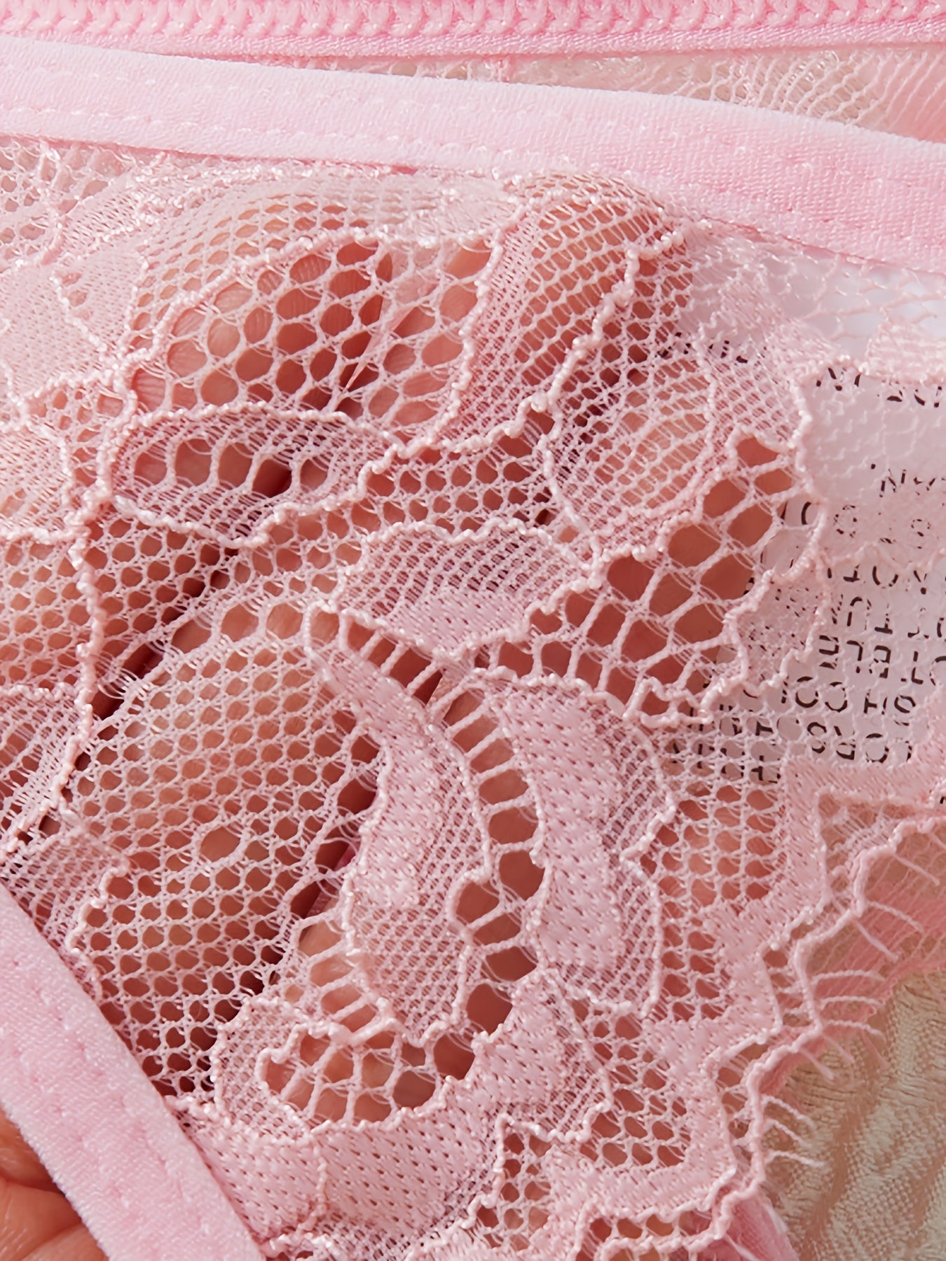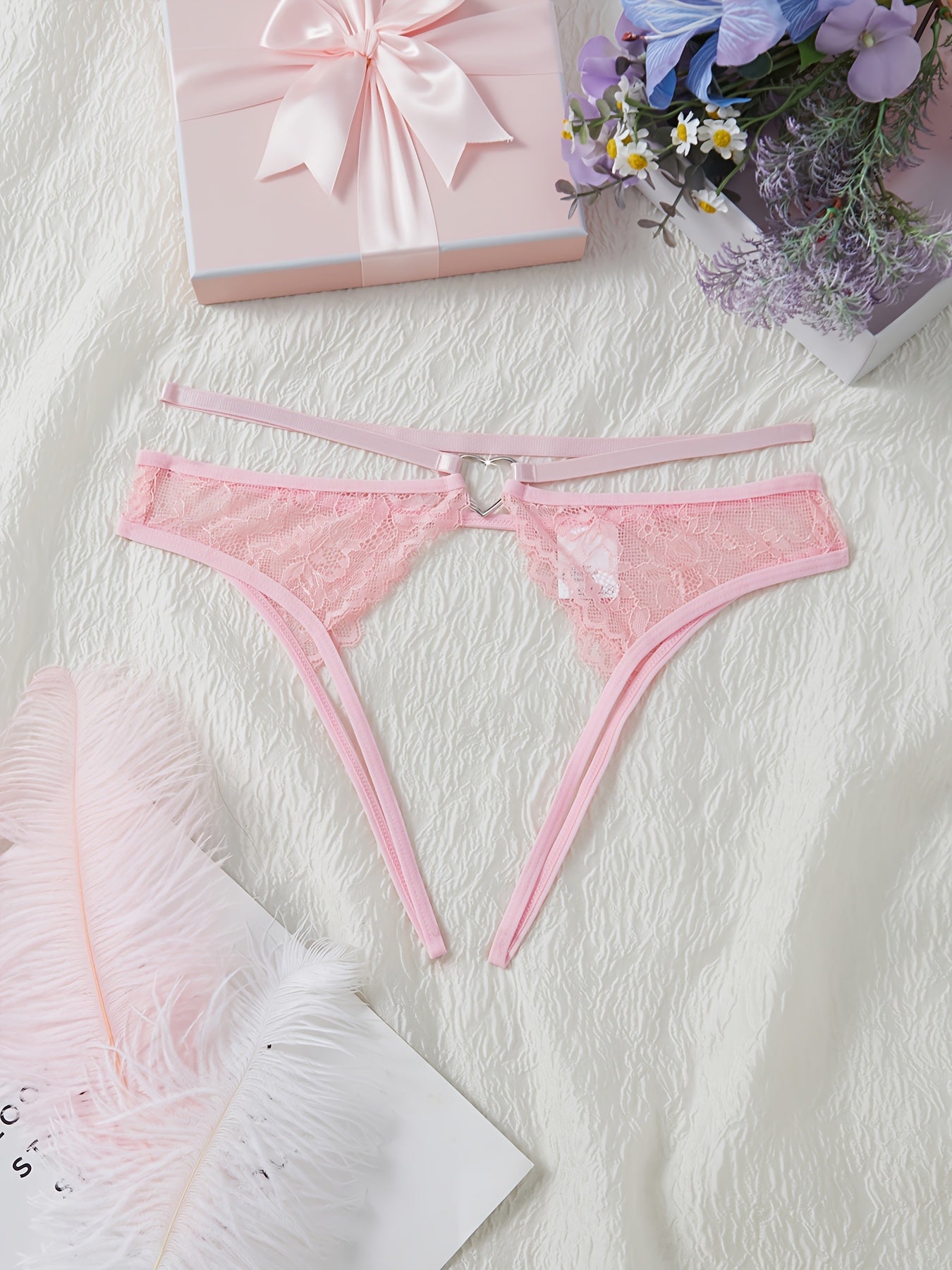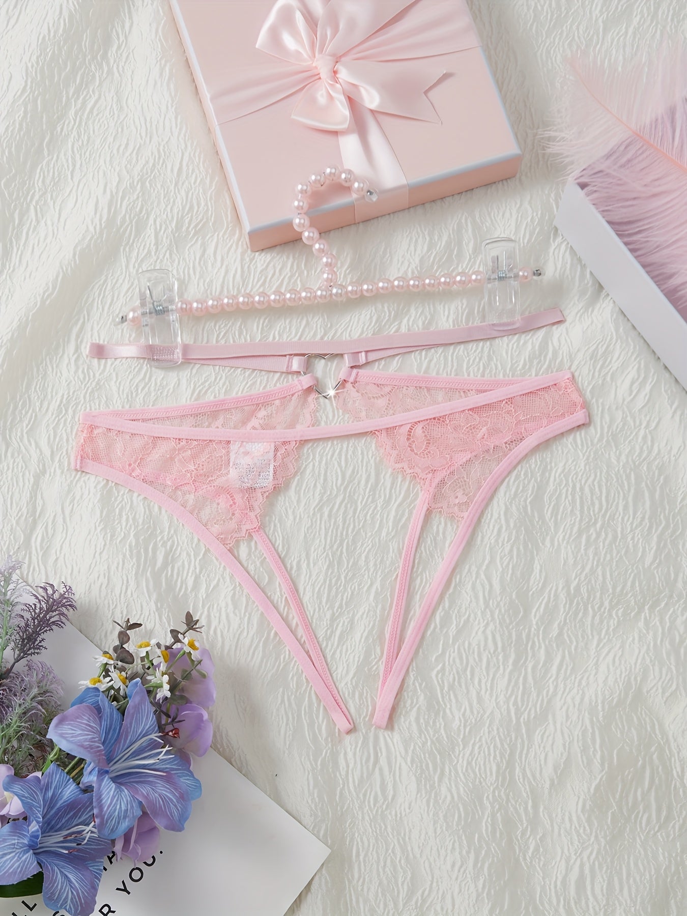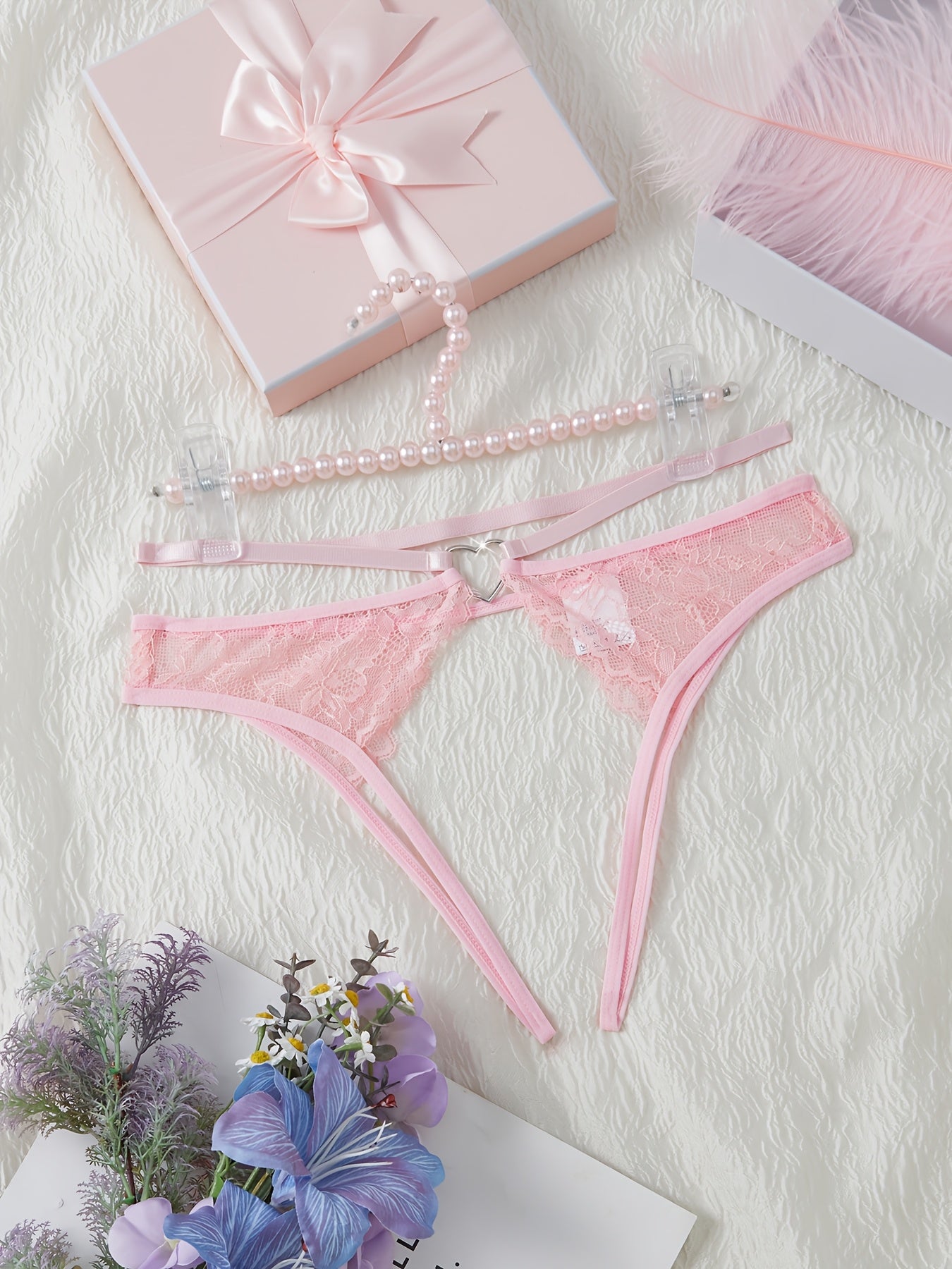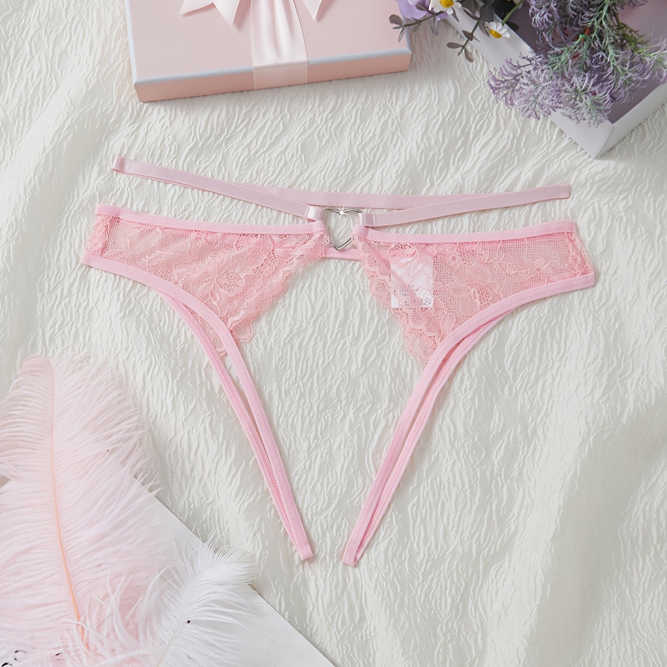 Розовые кружевные стринги для женщин с низкой посадкой, прорезью, металлическим кольцом, дышащим нейлоном и эластаном, нижнее белье