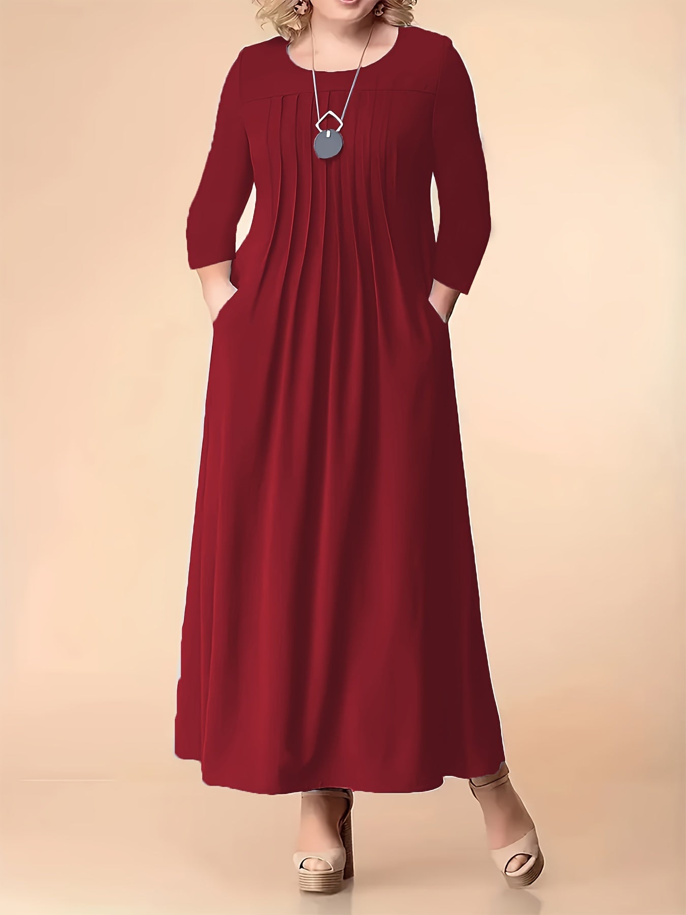 Платье большого размера из полиэстера с трикотажной посадкой и расклешением, с драпированным круглым вырезом, для всех сезонов