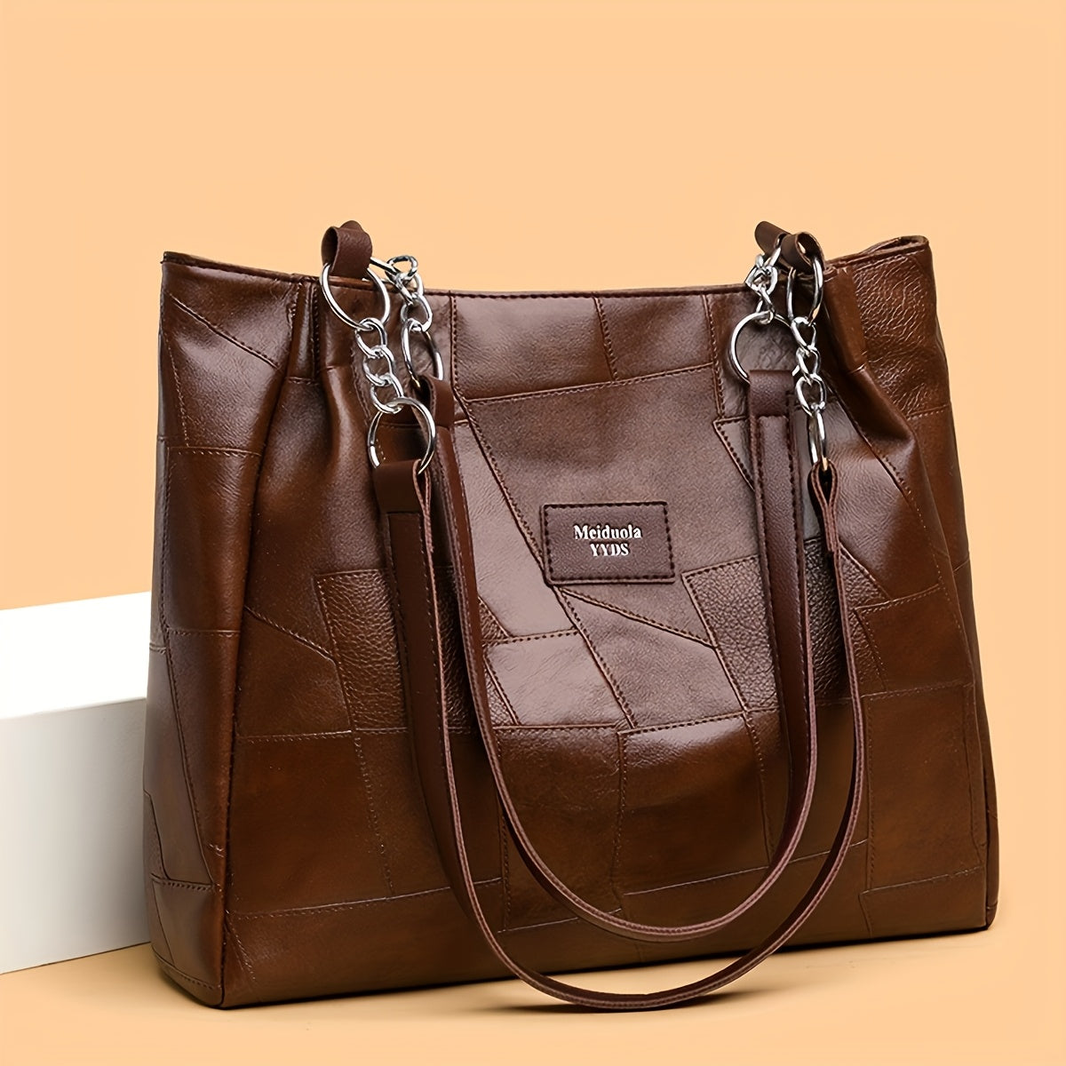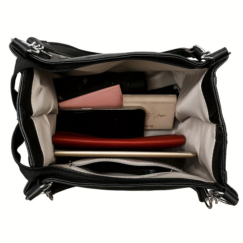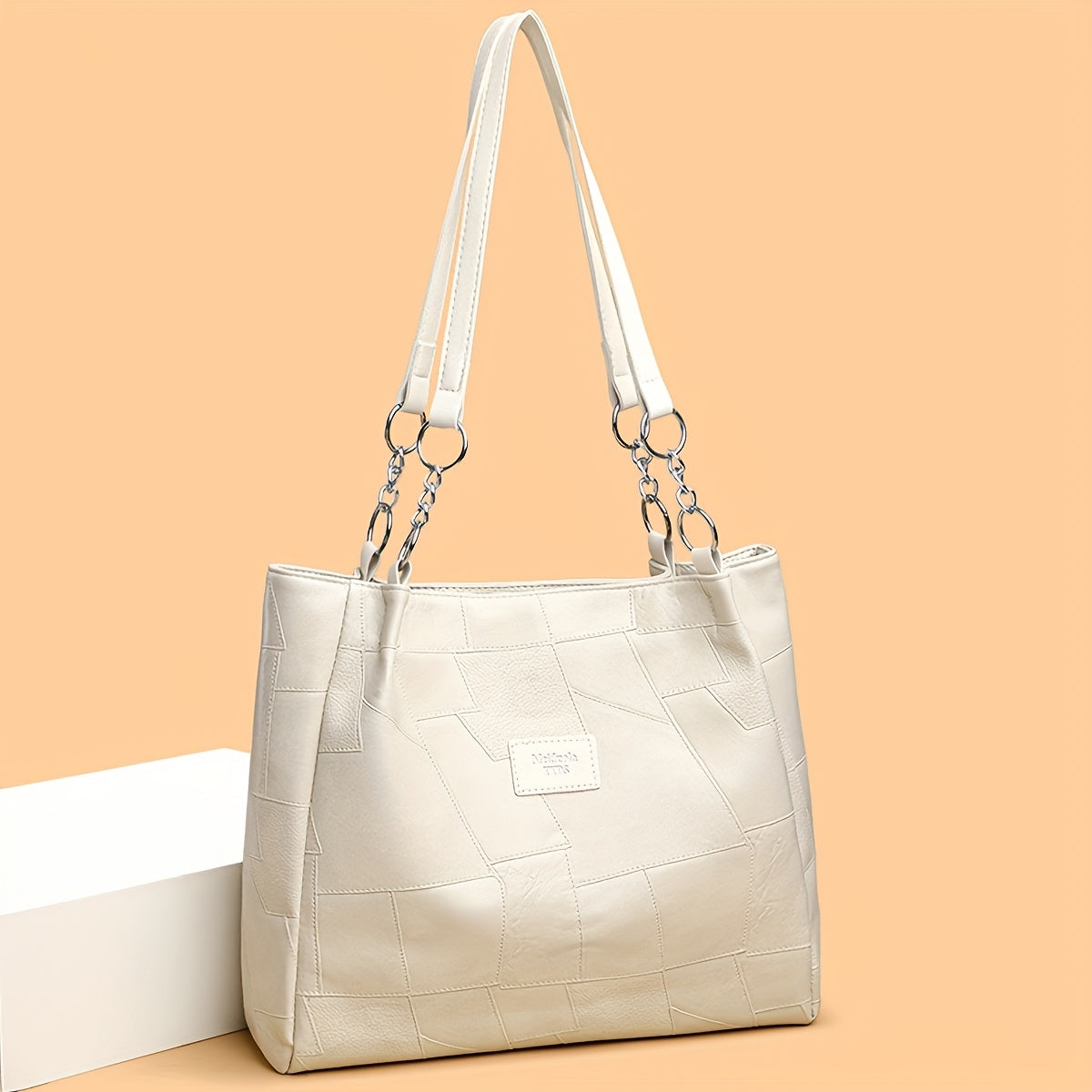 Стильная стеганая сумка-тоут с молнией, фиксированным ремнем и классическим дизайном, идеально подходящая для работы или повседневного использования. Доступна в черном, белом или коричневом цвете.