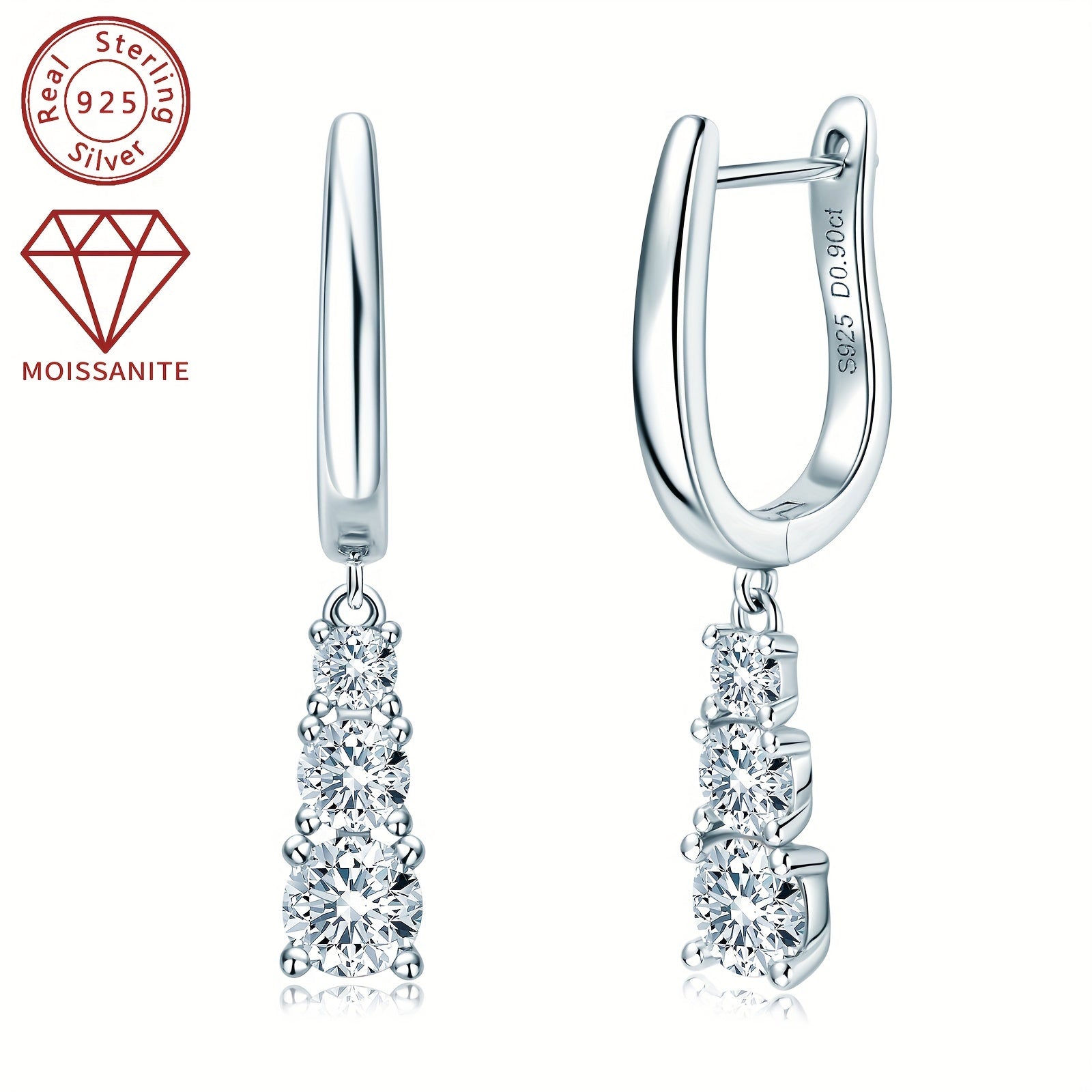 Стильные серьги-кольца с подвеской в форме капли из серебра 925 пробы, украшенные камнями моиссанита размером 5 мм, 4 мм и 3 мм, идеальны для особых случаев, таких как праздники и свадьбы.