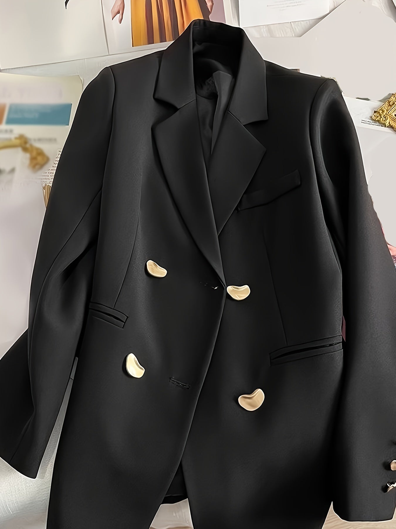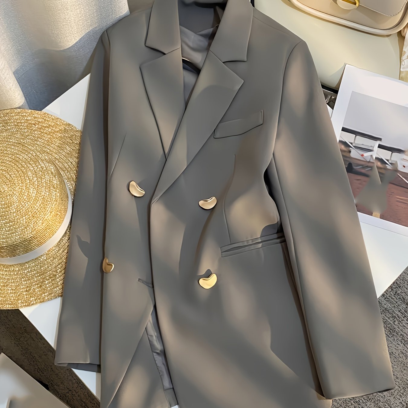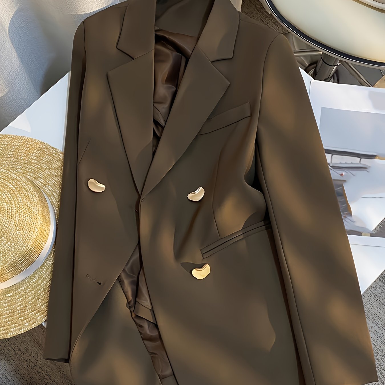 Стильный женский блейзер с британским вдохновением и повседневным французским дизайном, с длинными рукавами, двойной застежкой и выполненный из полиэстера - идеален для перехода между сезонами.