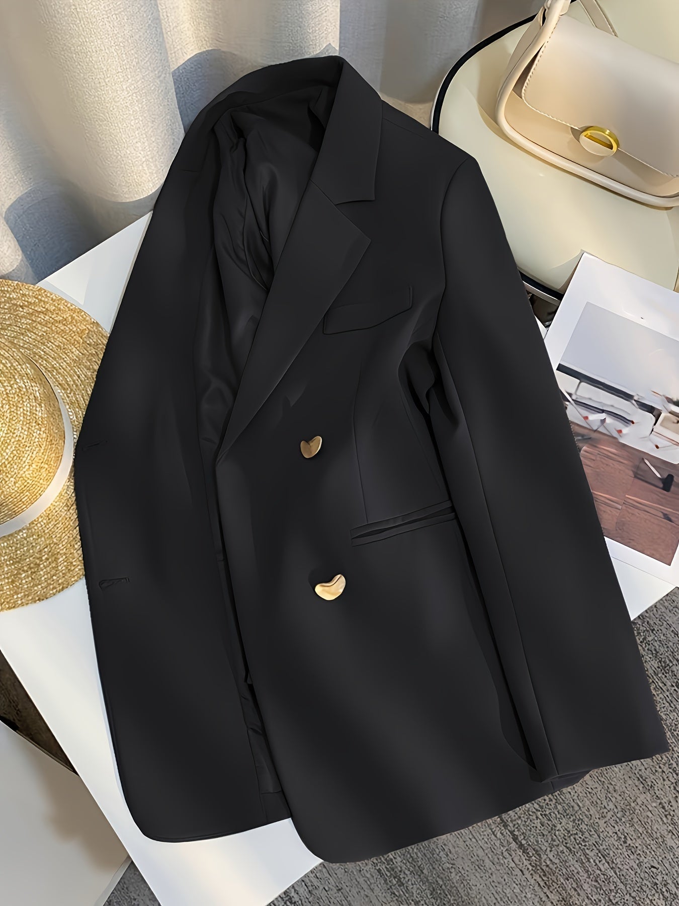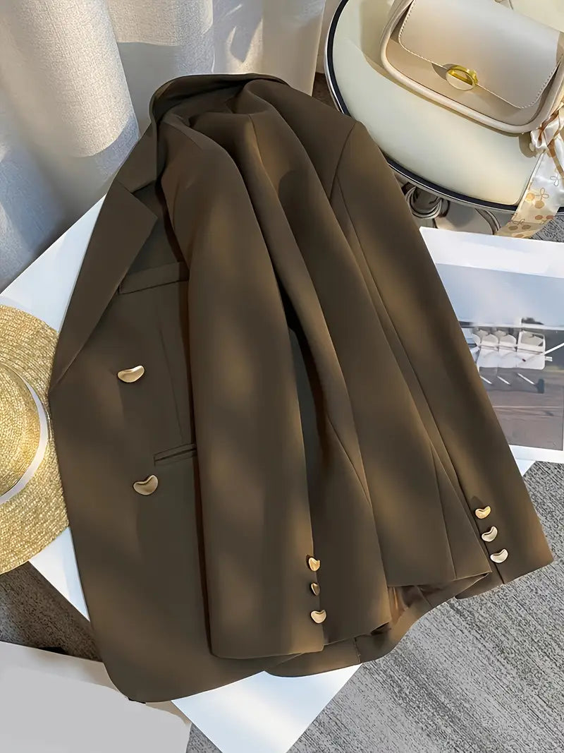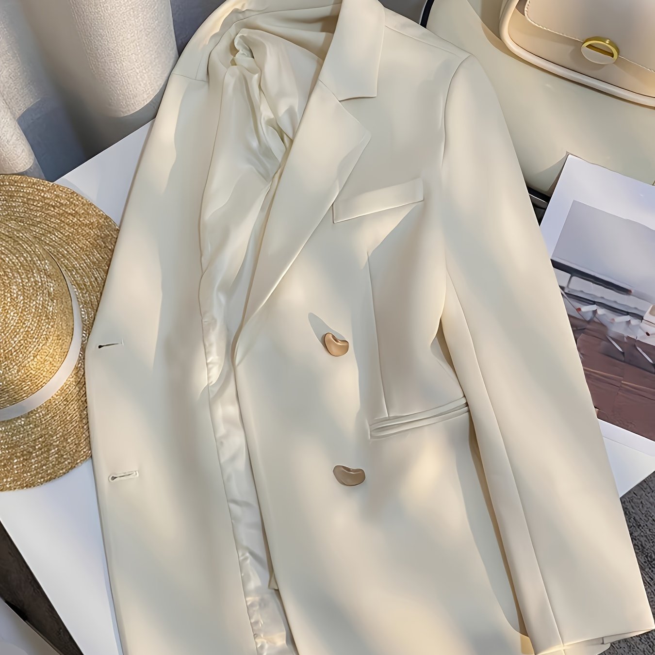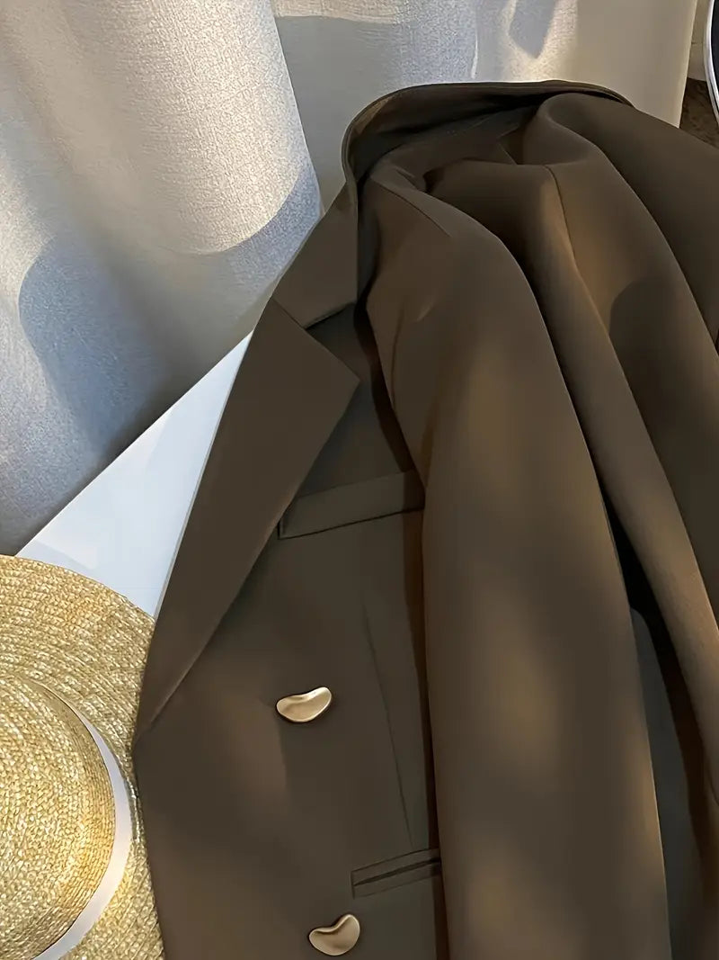 Стильный женский блейзер с британским вдохновением и повседневным французским дизайном, с длинными рукавами, двойной застежкой и выполненный из полиэстера - идеален для перехода между сезонами.
