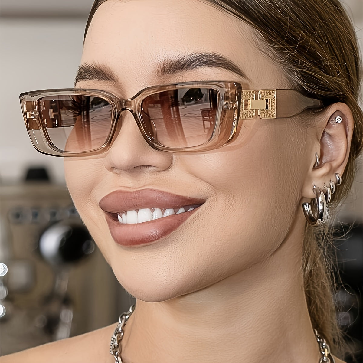 Стильные женские очки в форме кошачьего глаза с широкими дужками и металлическими петлями, идеально подходящие для повседневной носки и уличного стиля.