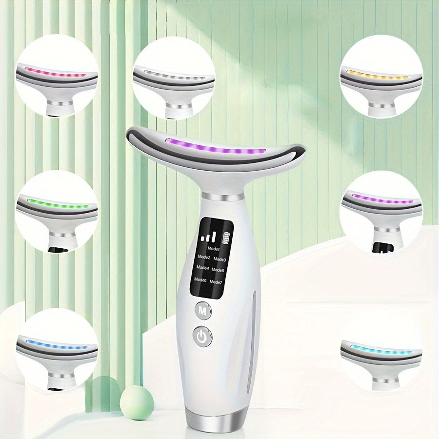 7-в-1 USB перезаряжаемый массажер для лица и шеи с функцией нагрева и вибрации