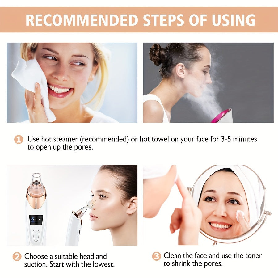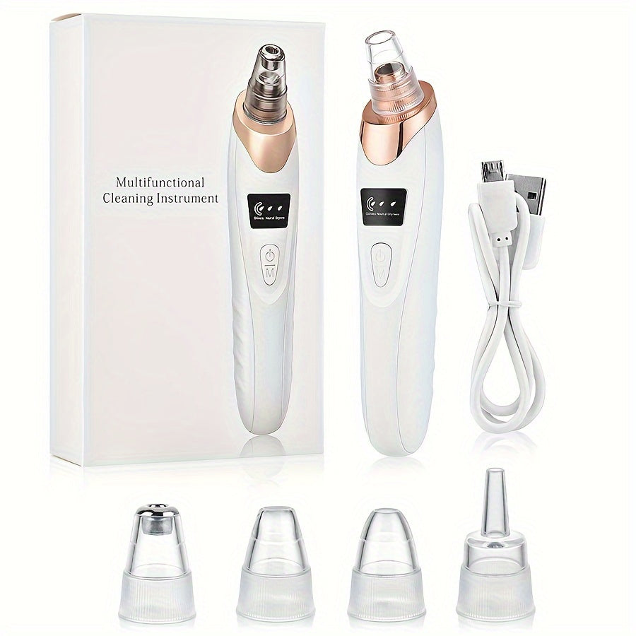 Сосатель для удаления черных точек Sunhill с 5 уровнями всасывания, USB-зарядкой и перезаряжаемой литий-полимерной батареей на 400 мАч. Включает 4 насадки для многофункциональной очистки.