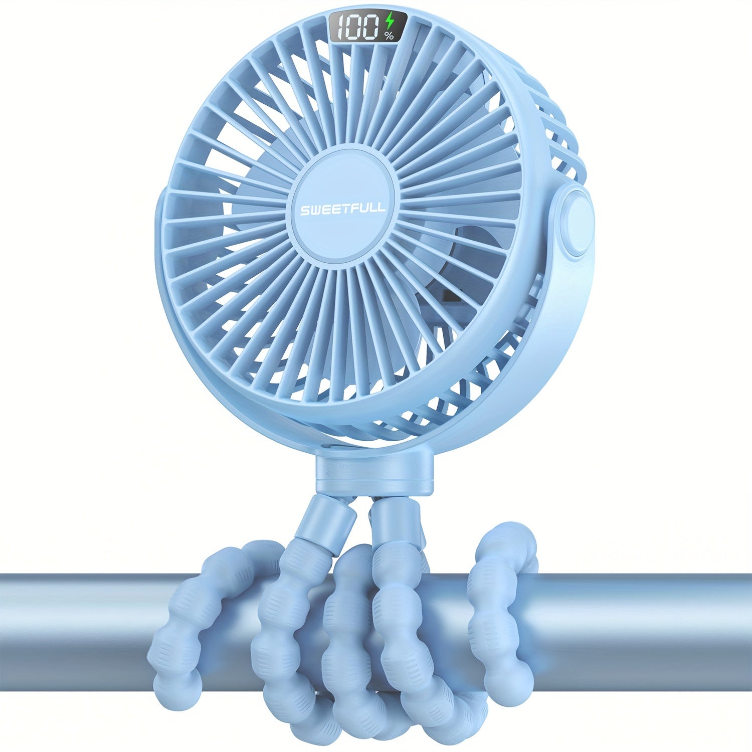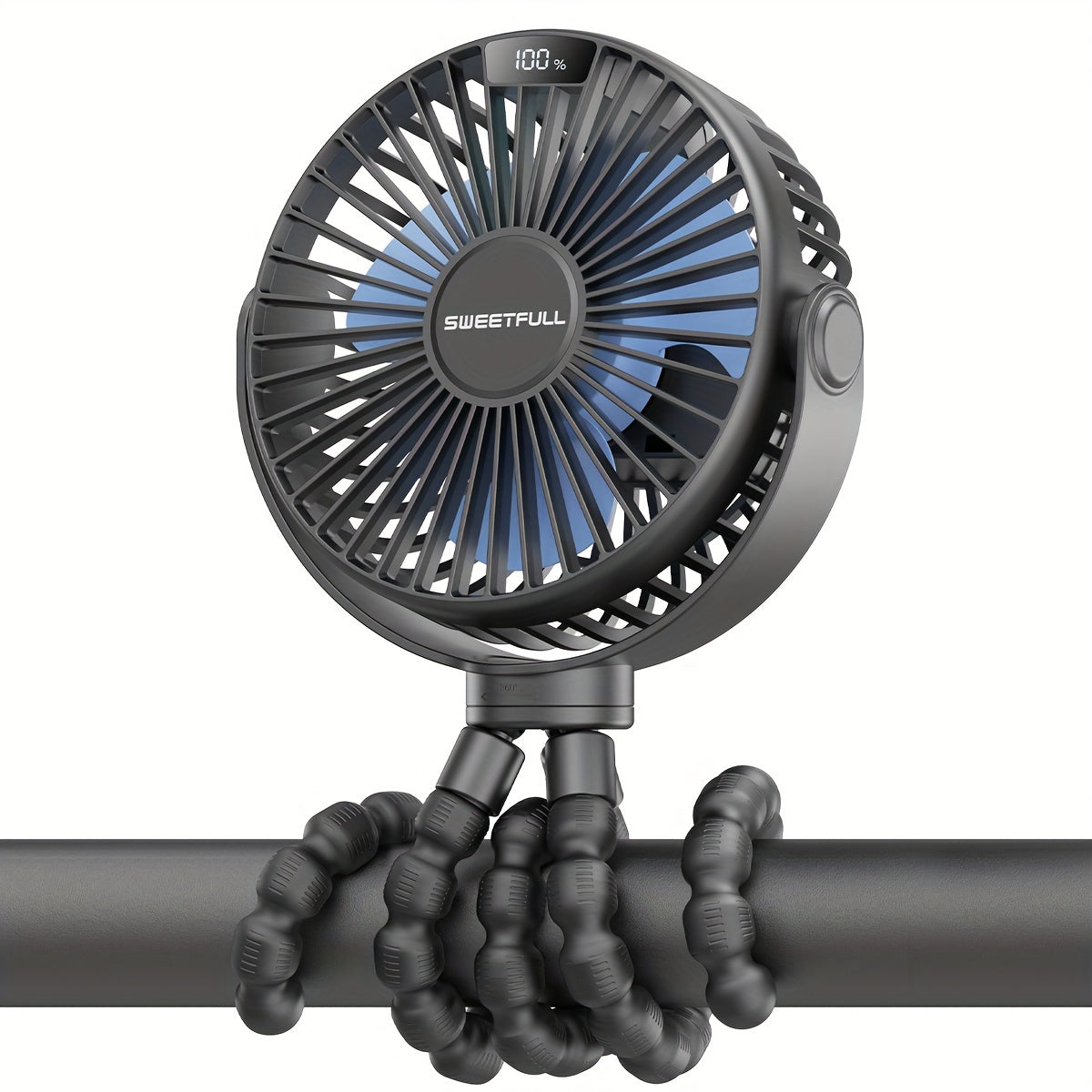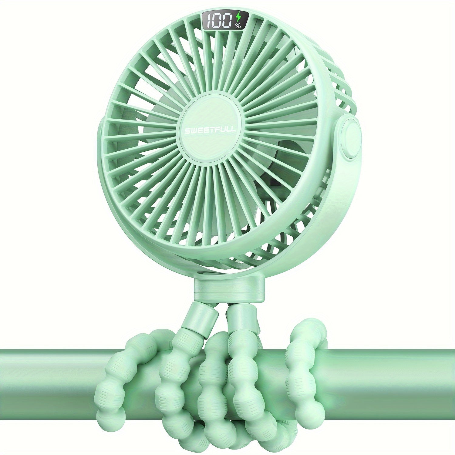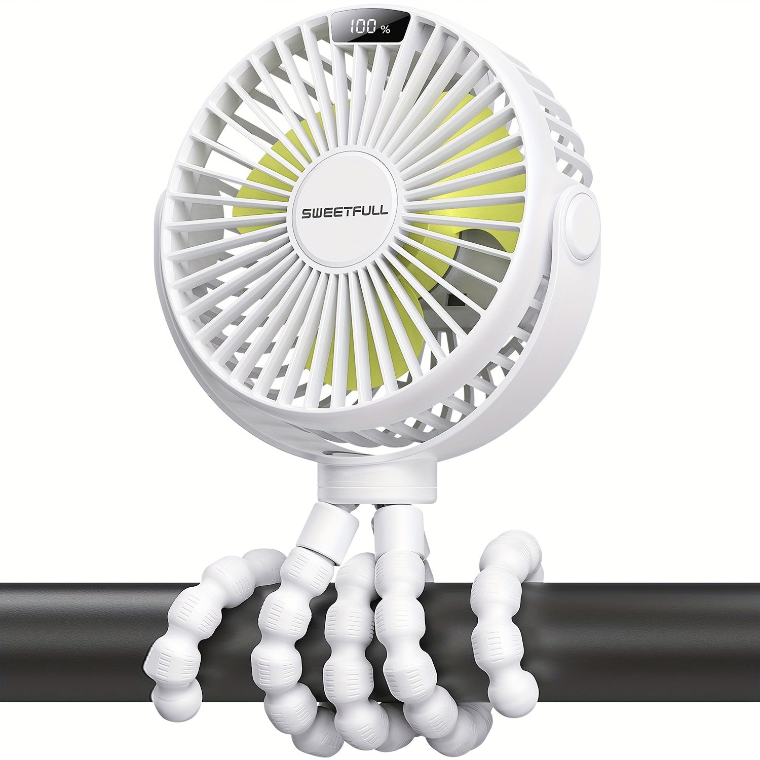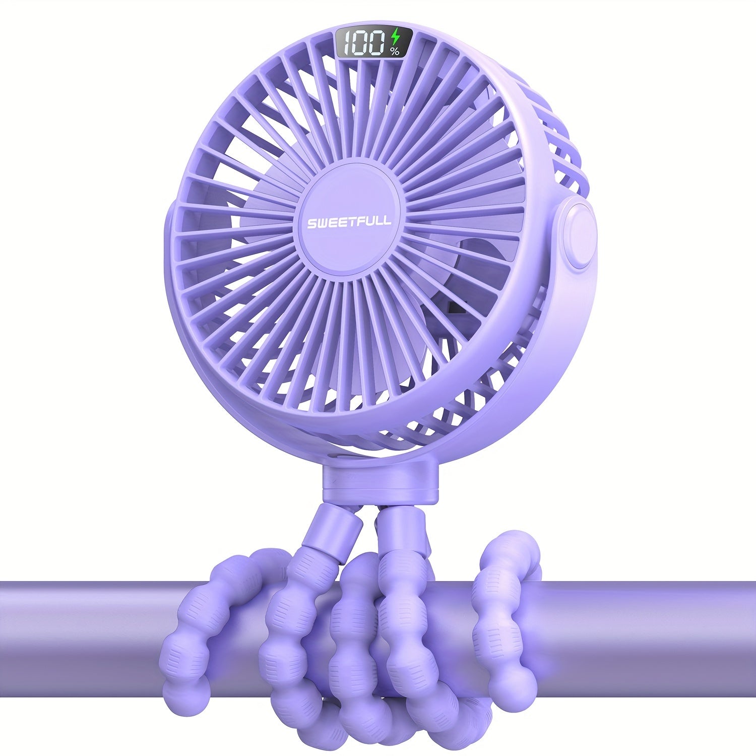 SWEETFULL Портативный вентилятор для коляски с LED-дисплеем, мини-вентилятор с 4 скоростями и перезаряжаемой батареей для личного охлаждения в пути.