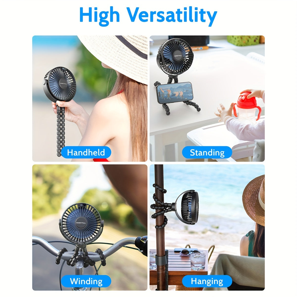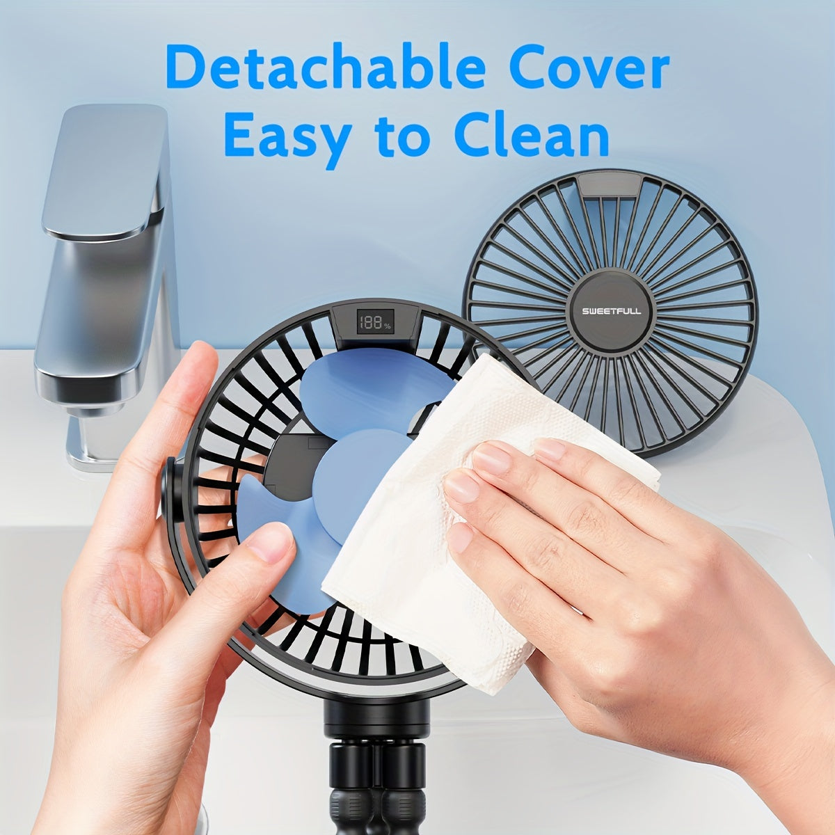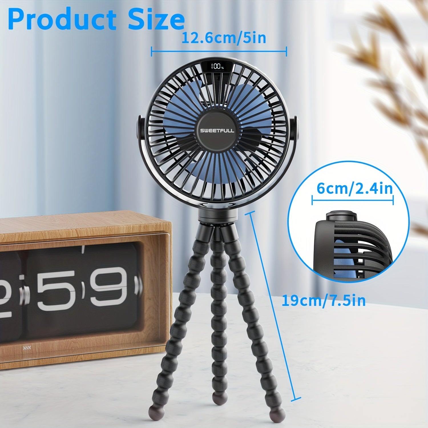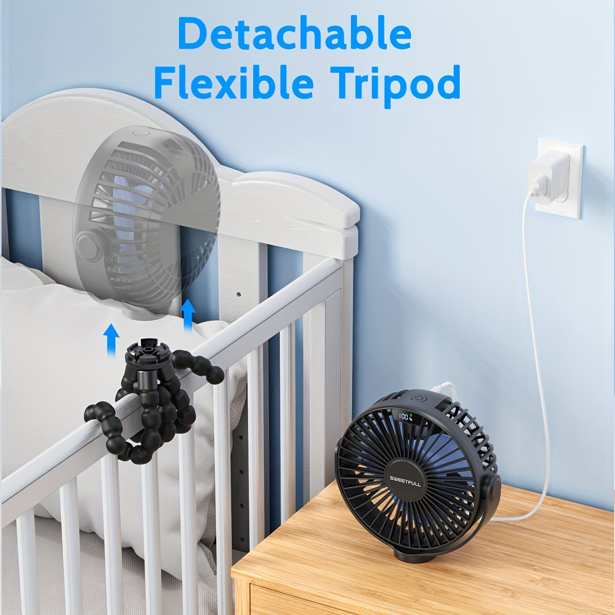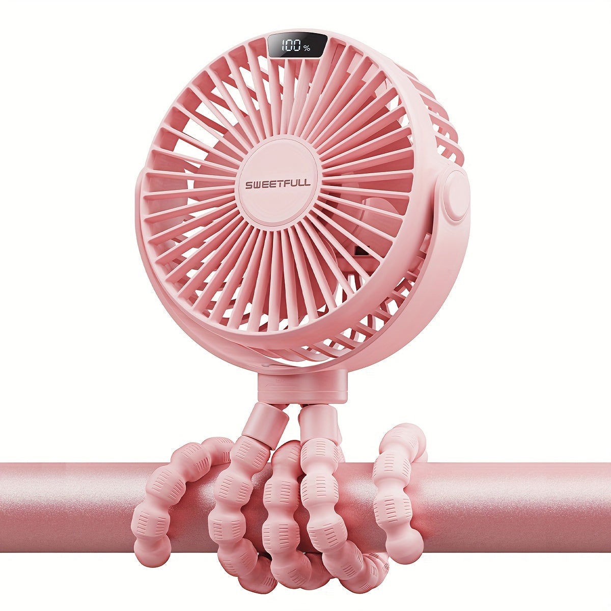 SWEETFULL Портативный вентилятор для коляски с LED-дисплеем, мини-вентилятор с 4 скоростями и перезаряжаемой батареей для личного охлаждения в пути.