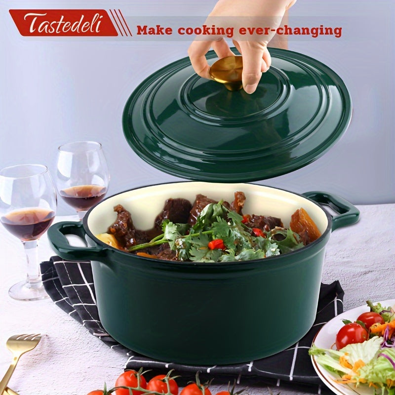 Кастрюля-утятница Tastedeli объемом 4,7 литра из эмалированного чугуна идеально подходит для приготовления, выпечки и подачи.