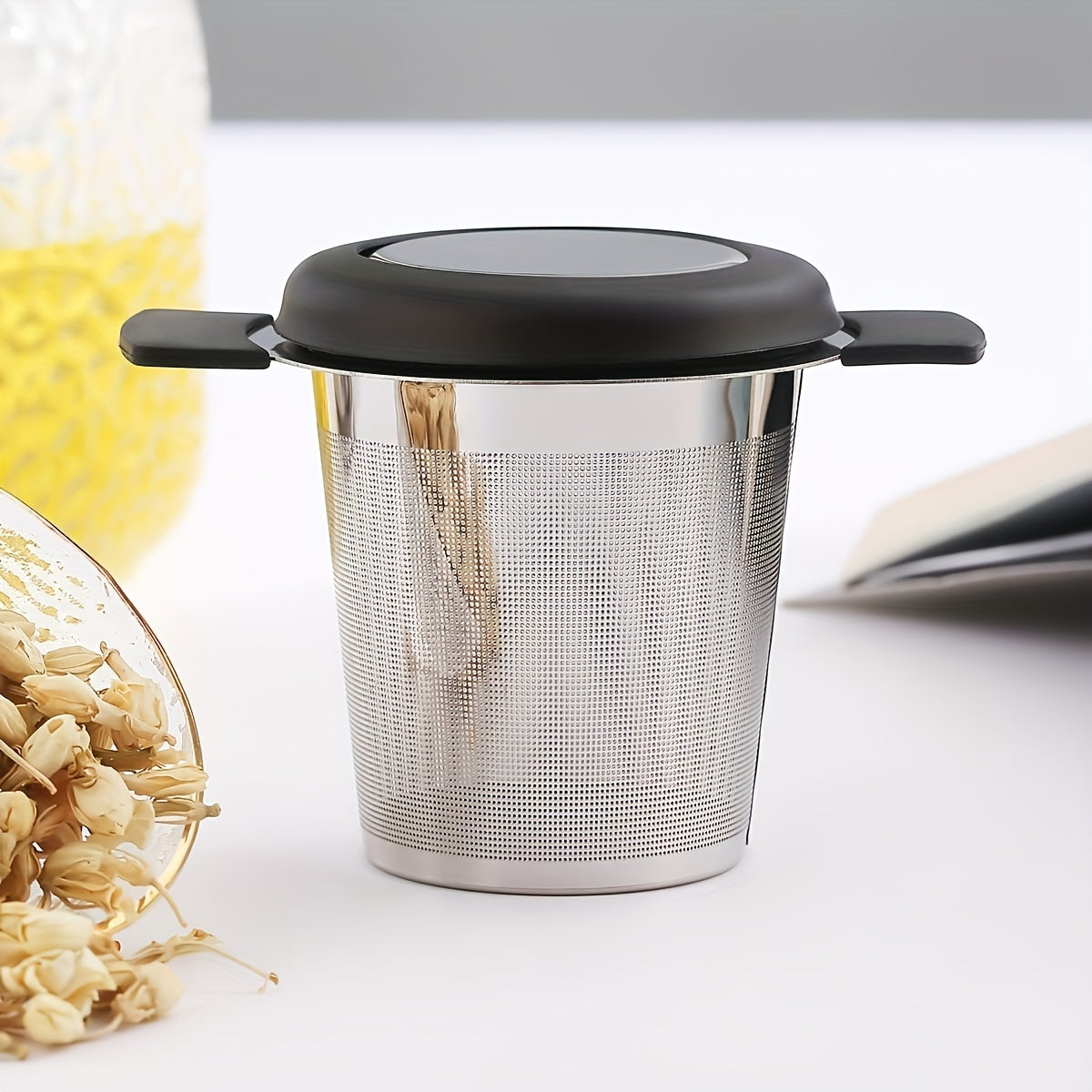 Ситечко для заваривания чая из нержавеющей стали с термостойкой силиконовой ручкой, мелкой сеткой для кружек и чашек - можно мыть в посудомоечной машине, идеально подходит для заваривания чая дома и в офисе