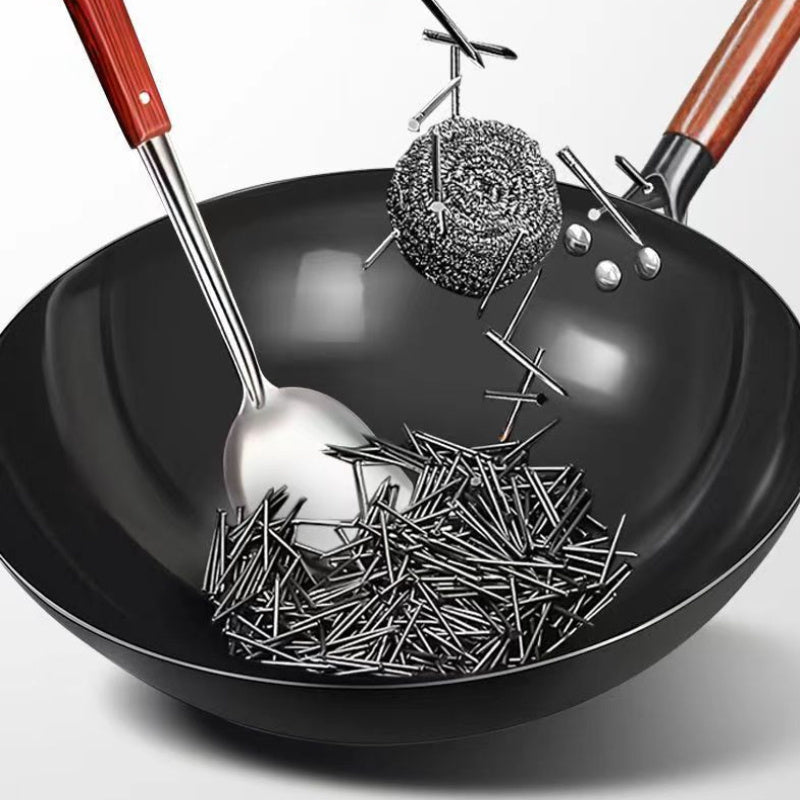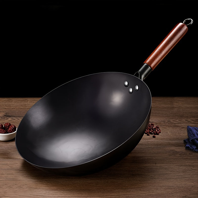 Основной кухонный гаджет: антипригарная чугунная сковорода 13 дюймов с деревянной ручкой, устойчивая к ржавчине, без покрытия, идеальна для жарки и приготовления пищи, на основе азота для круглого дна.