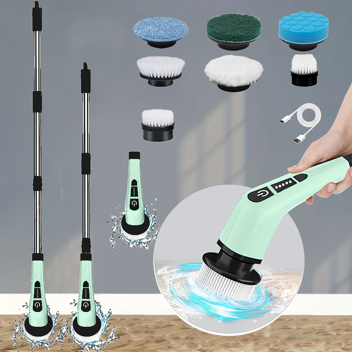 Беспроводной электрический вращающийся скраббер Pro с 7 насадками для чистки ванной комнаты и пола