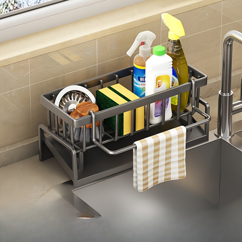 Компактный органайзер для кухонной мойки с держателем для тряпок идеально подходит для хранения губок, мыла, щеток и полотенец.