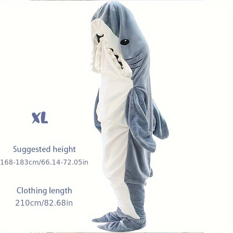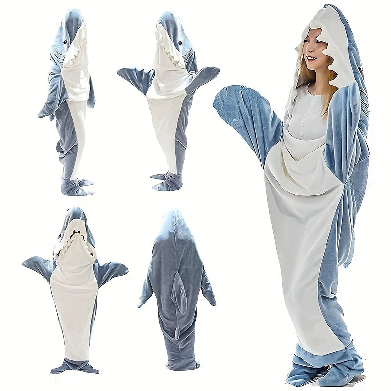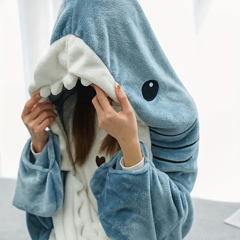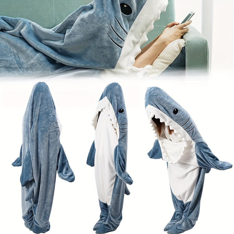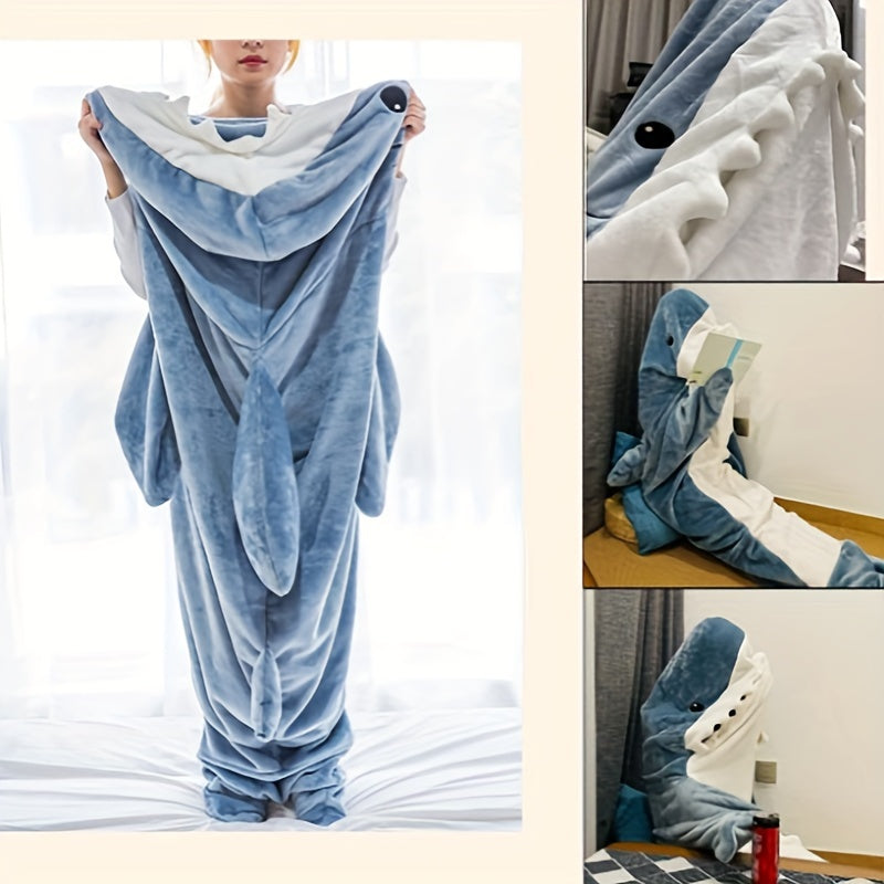 Утолщенные и теплые 1 шт. пижамы для отдыха с дизайном забавной мультяшной акулы, которые превращаются в многофункциональное одеяло, идеально подходят для ношения дома или в качестве уютного спального мешка.