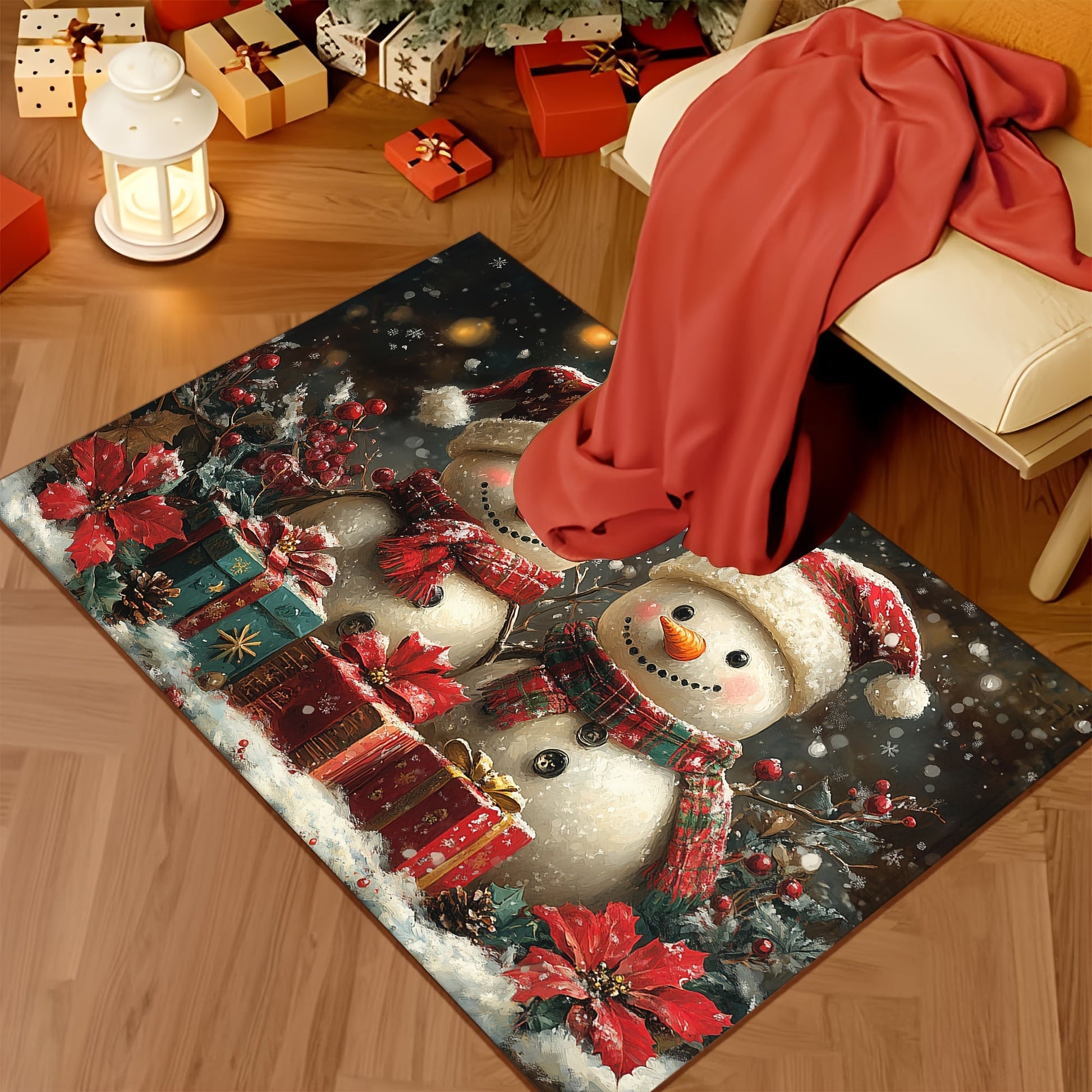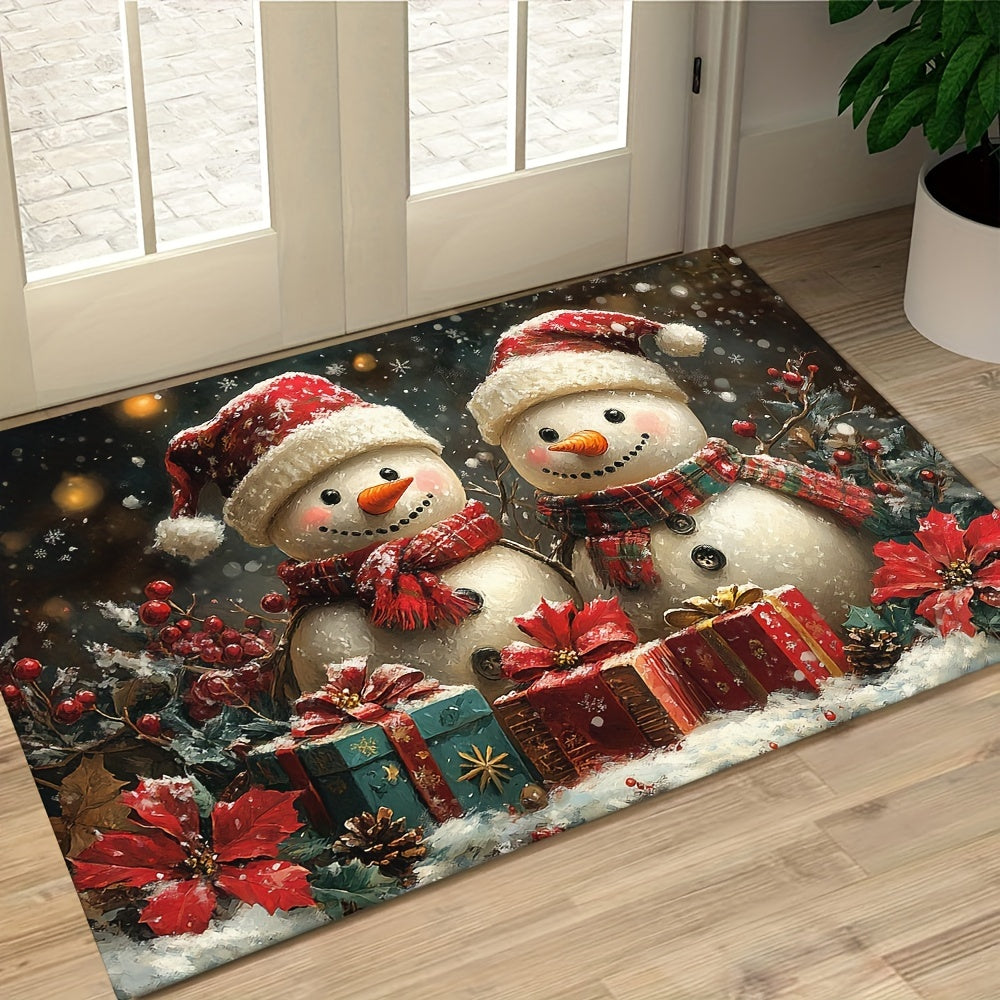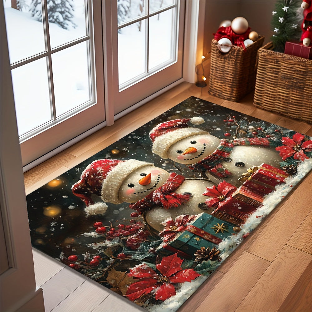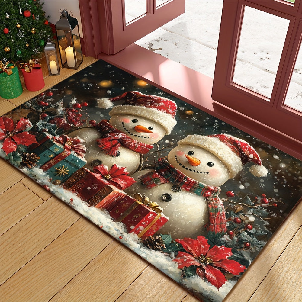Рождественский коврик-снеговик, моющийся из плетеного полиэстера, с противоскользящей основой
