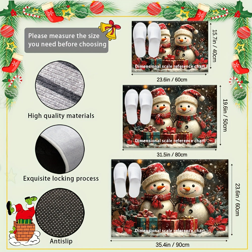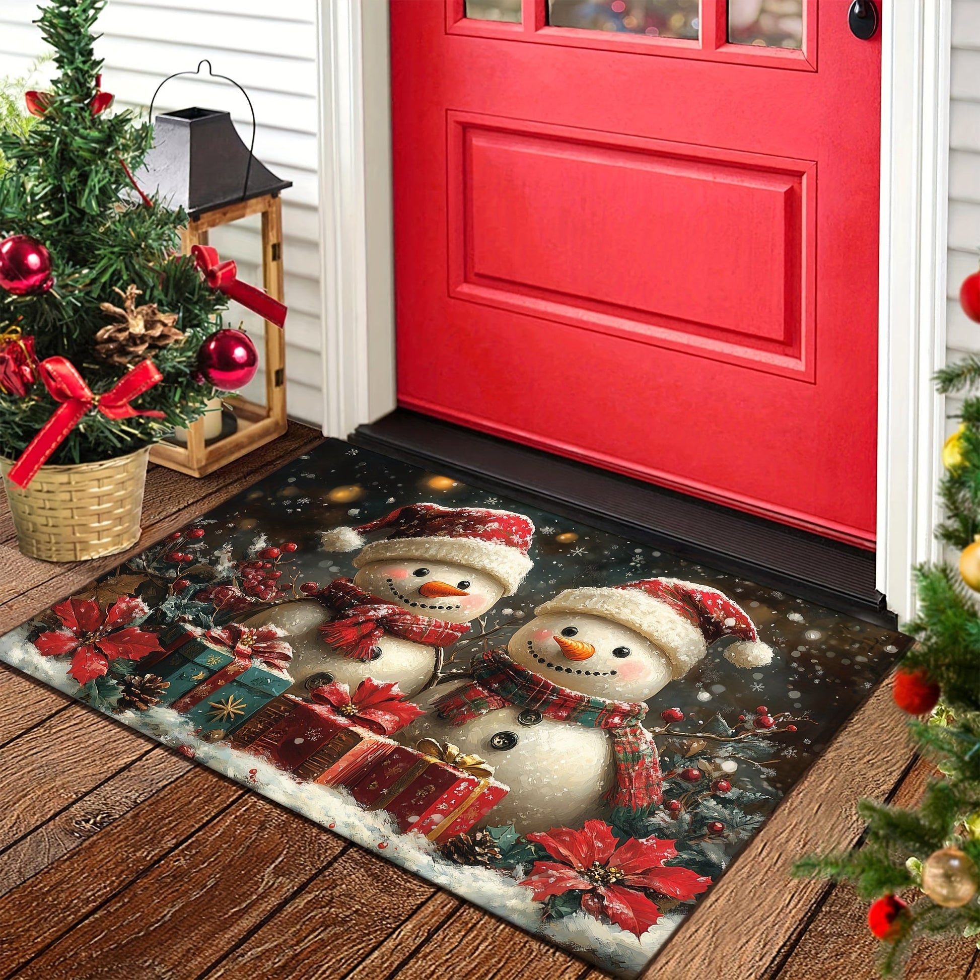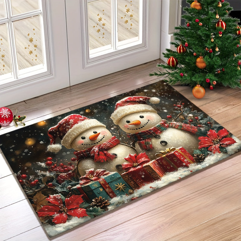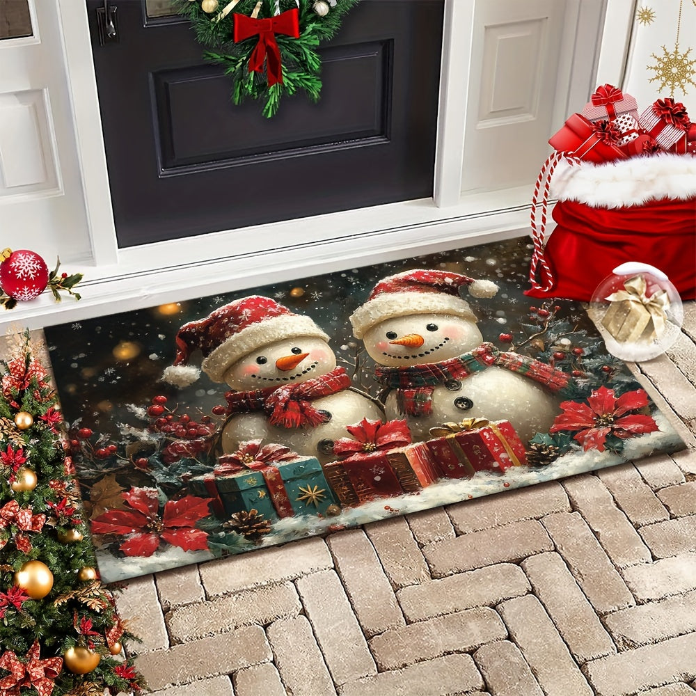 Рождественский коврик-снеговик, моющийся из плетеного полиэстера, с противоскользящей основой
