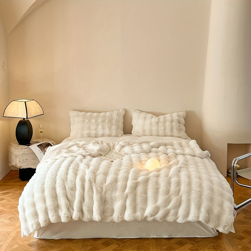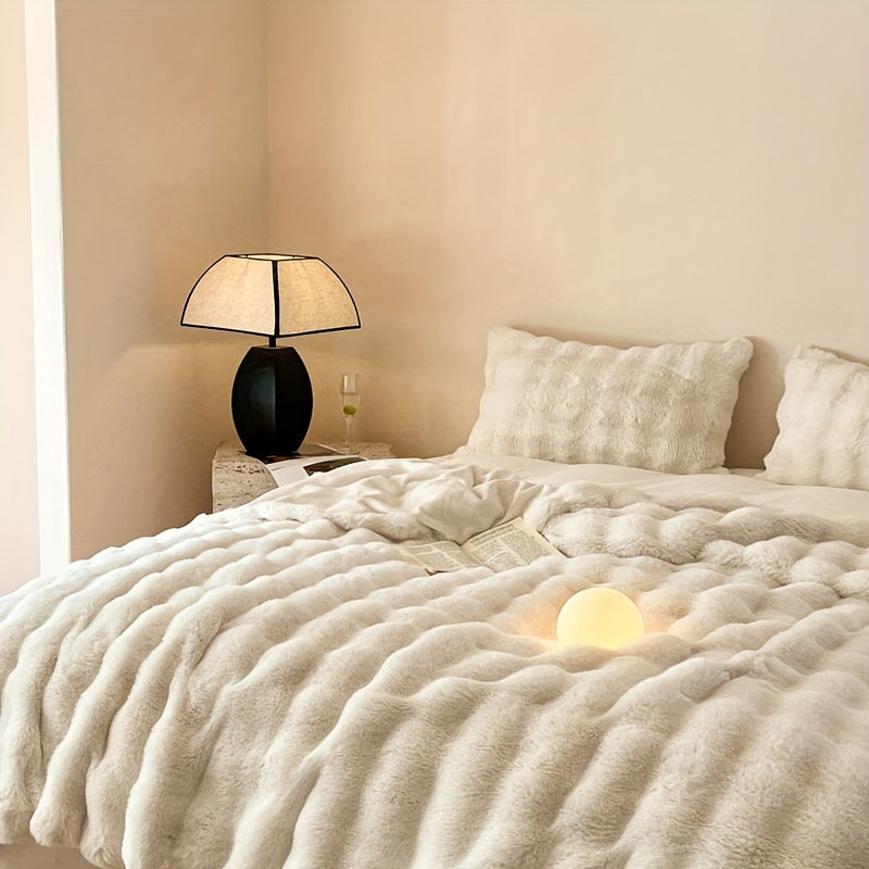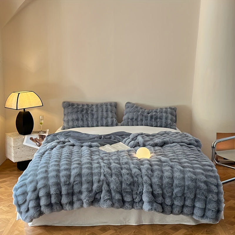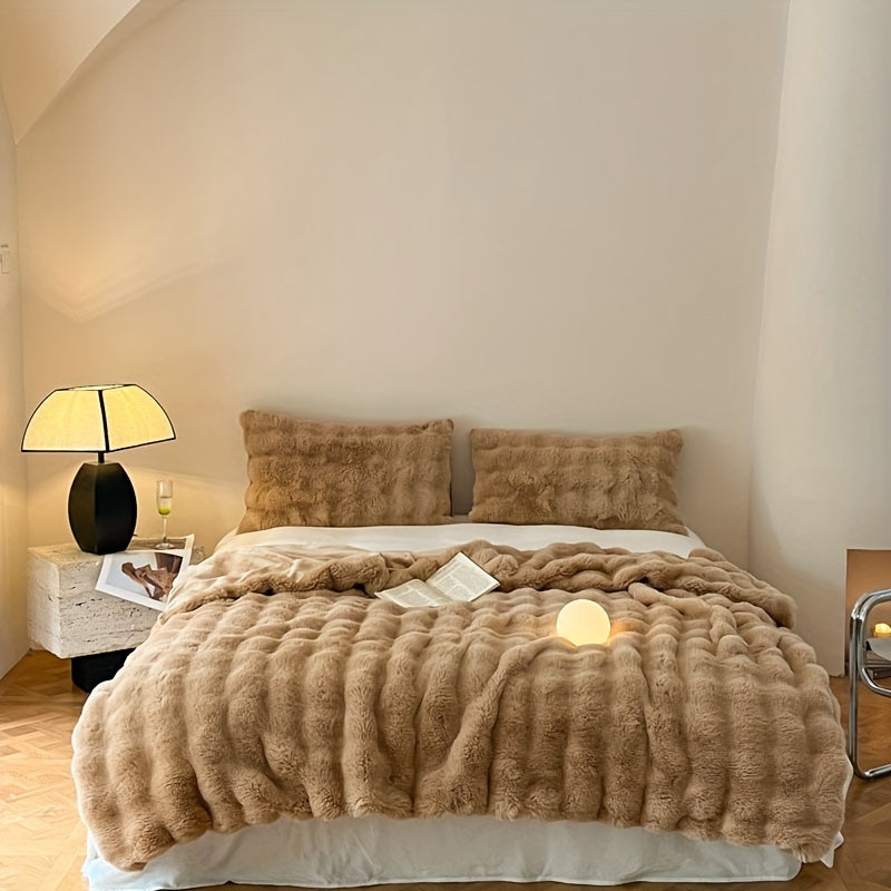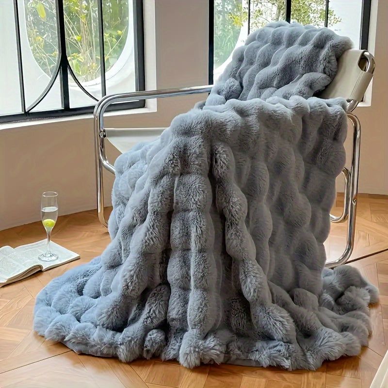 Этот высококачественный плед из искусственного кроличьего меха очень мягкий, удобный и теплый. Он идеально подходит для всех сезонов и отлично подходит для использования в спальне, офисе, на кемпинге, в путешествиях или в качестве домашнего декора.