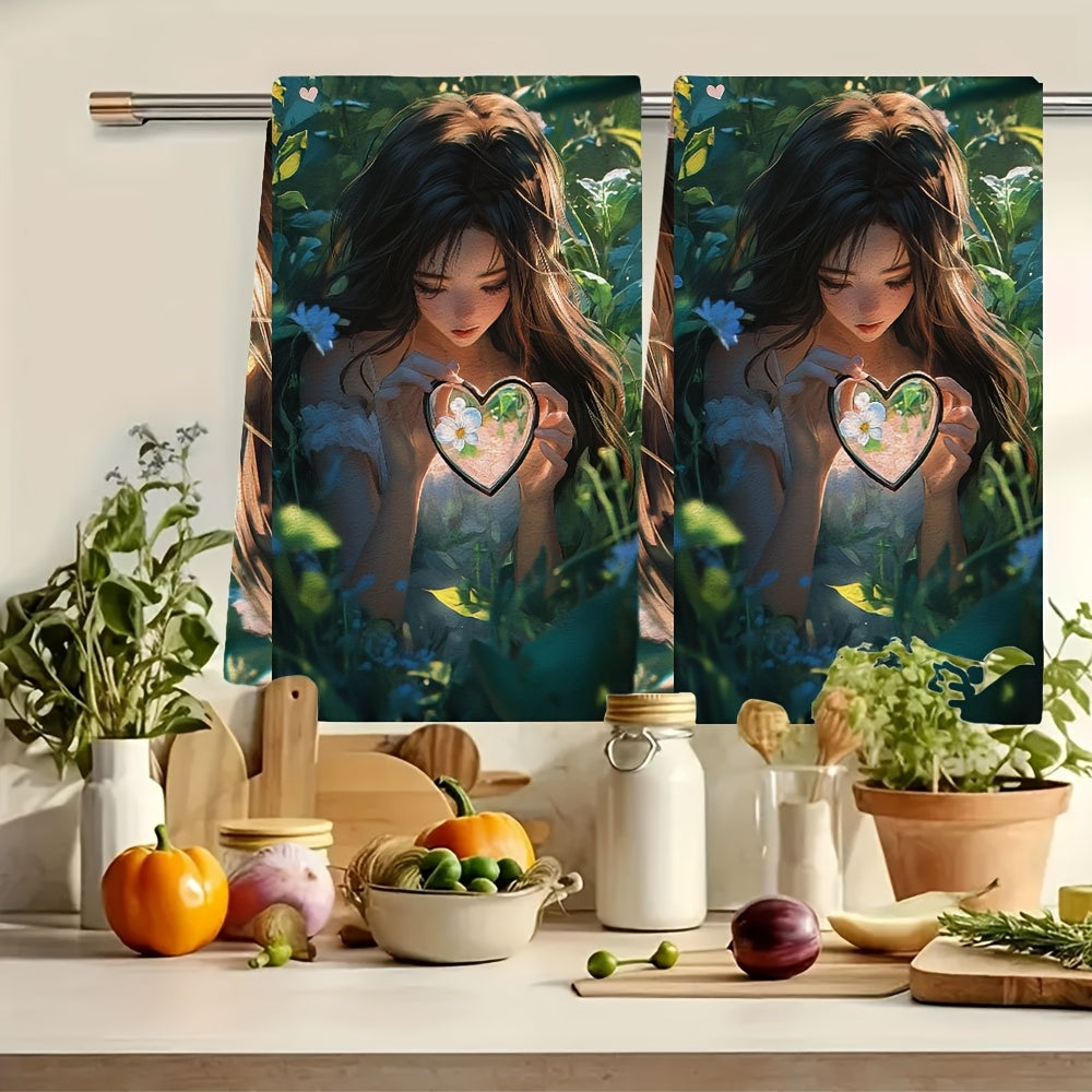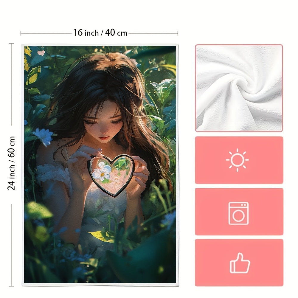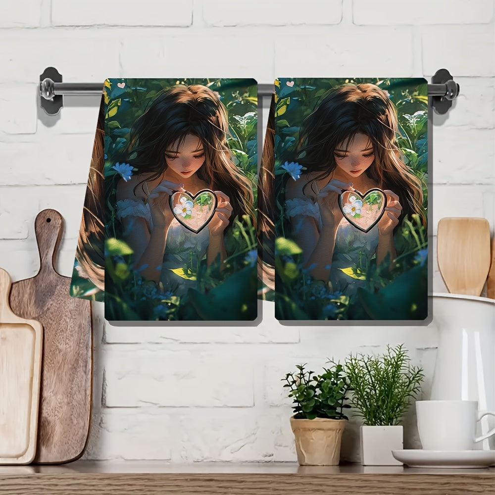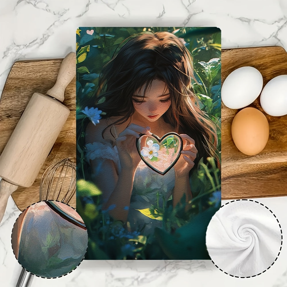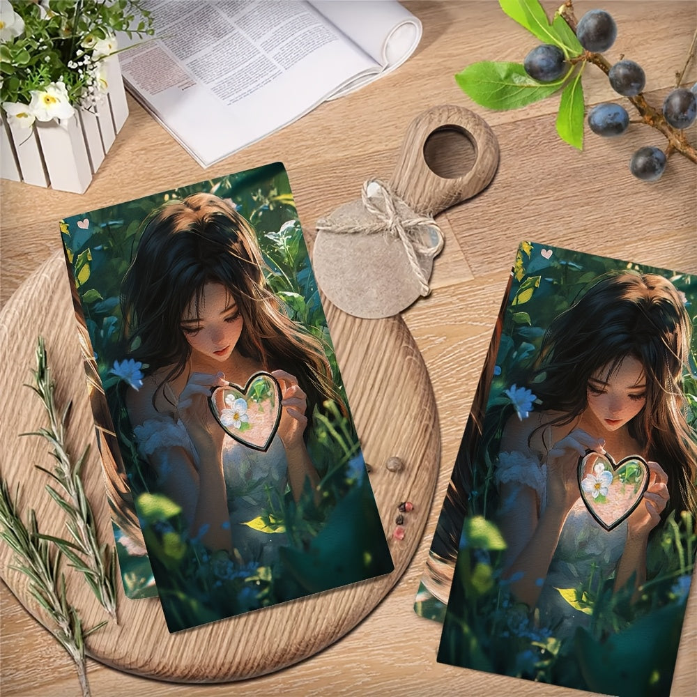 Набор кухонных полотенец с аниме-девушками, ультратонкие, высоко впитывающие, с садовым дизайном