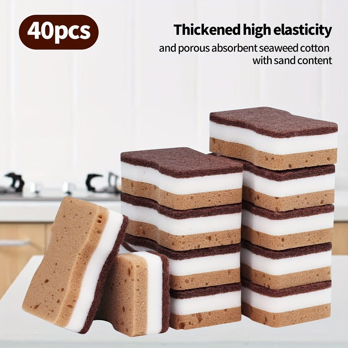 Трехслойные губки для мытья посуды из водорослей в упаковках по 5, 10, 20 или 40 штук. Высококачественные, прочные, нецарапающие кухонные губки, которые обладают высокой впитывающей способностью. Идеально подходят для мытья посуды и протирания, часть из