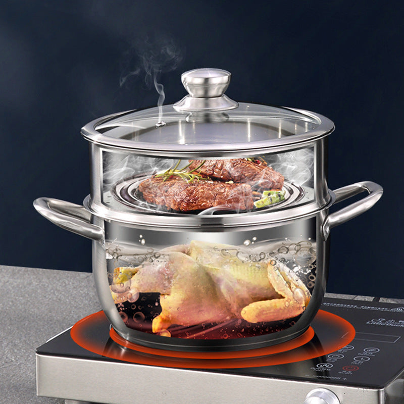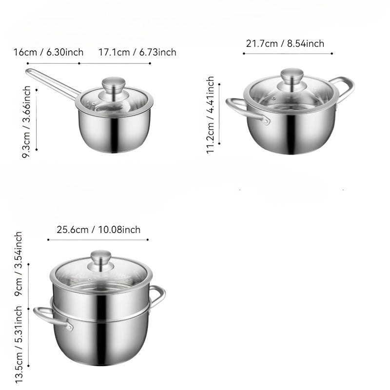 Набор из 3 нержавеющих стальных кастрюль для приготовления пищи и пароварки