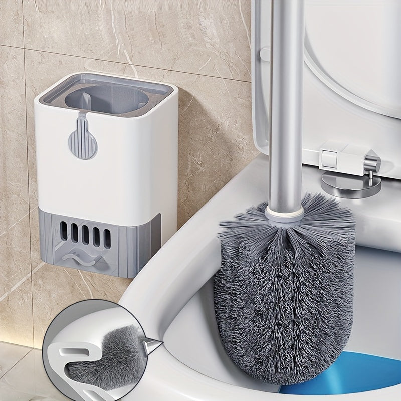 Набор щеток для унитаза с настенным длинным держателем - гибкий дизайн устраняет труднодоступные углы, делая уборку в ванной легкой.