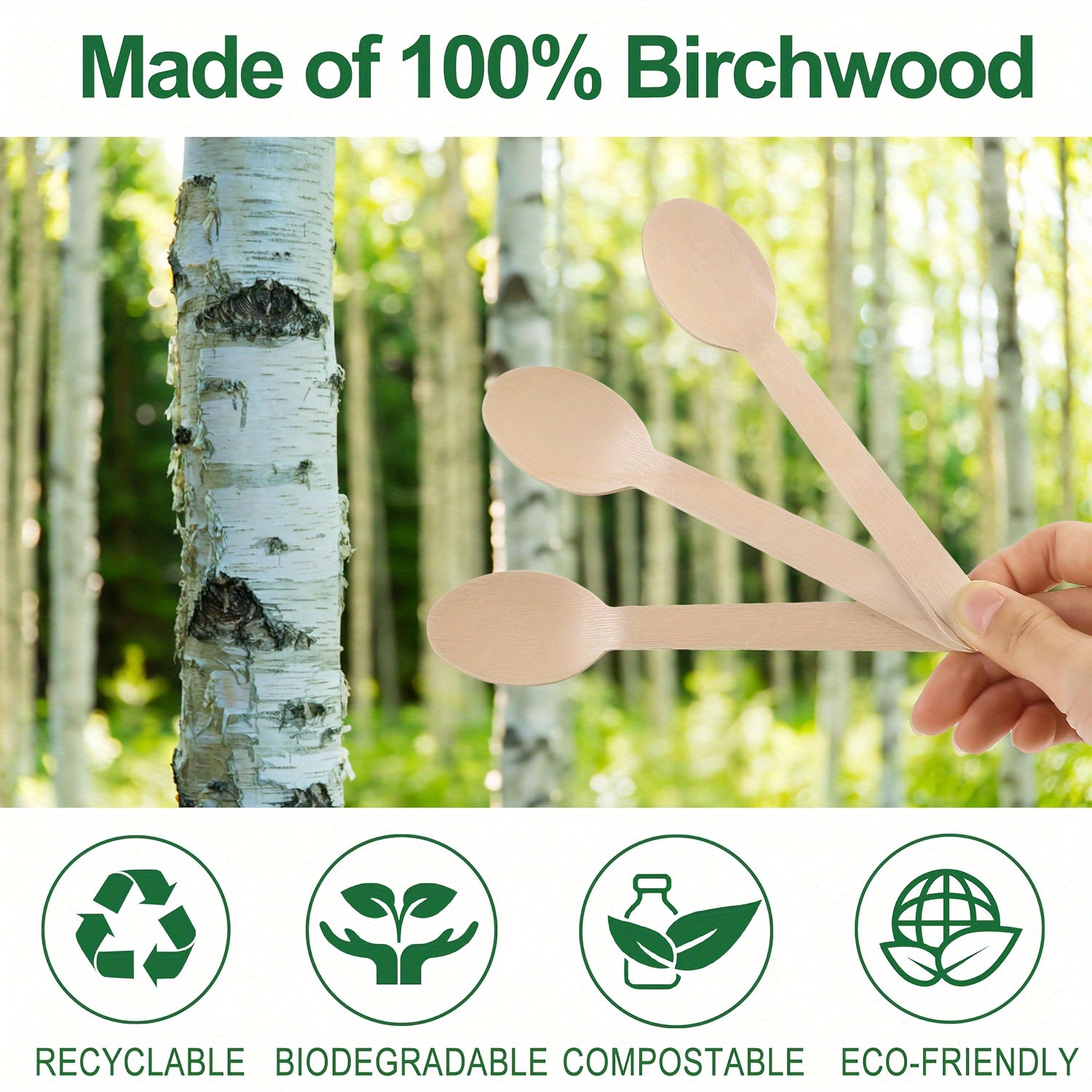 Одноразовые ложки из берёзовой древесины, упаковка по 10, 30, 50, 100 штук для дегустации и сервировки
