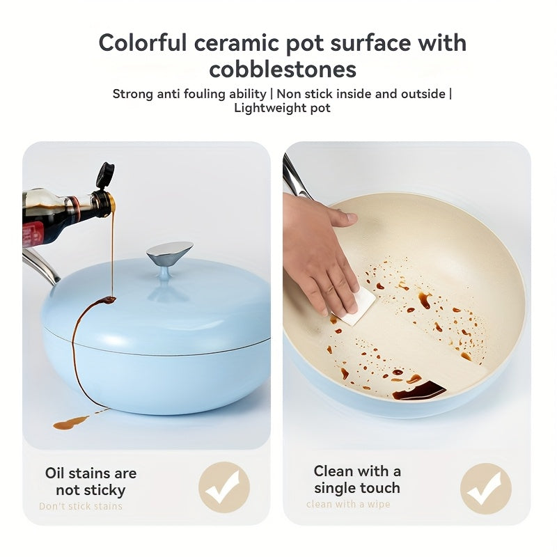 Сковорода из керамики высшего качества с антипригарным покрытием и крышкой - идеально подходит для жарки, приготовления и помешивания - работает с газовыми и индукционными плитами.