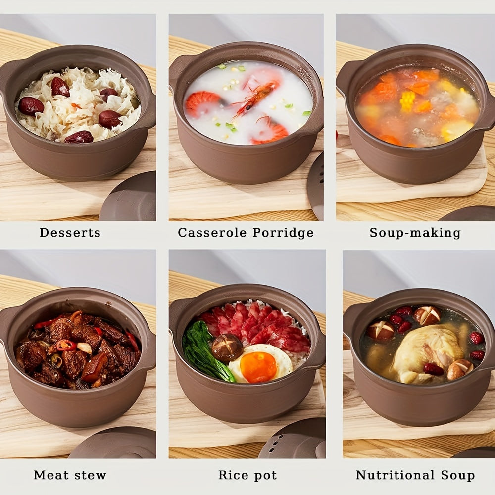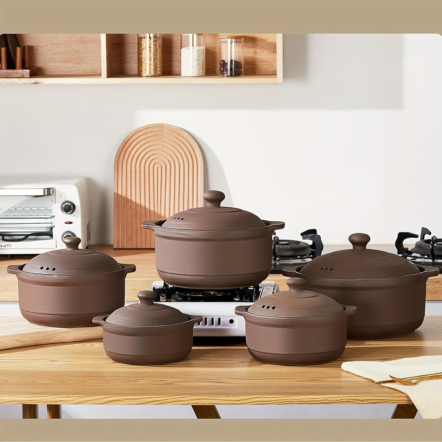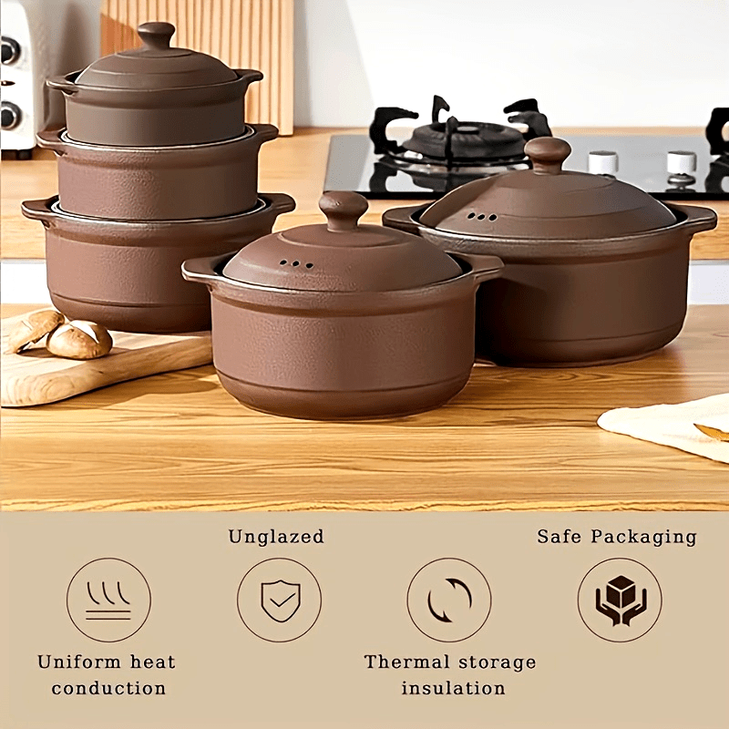 Традиционная керамическая глиняная кастрюля с крышкой для приготовления пищи, обладающая термоизоляцией, равномерным теплопроводностью и надежной упаковкой.