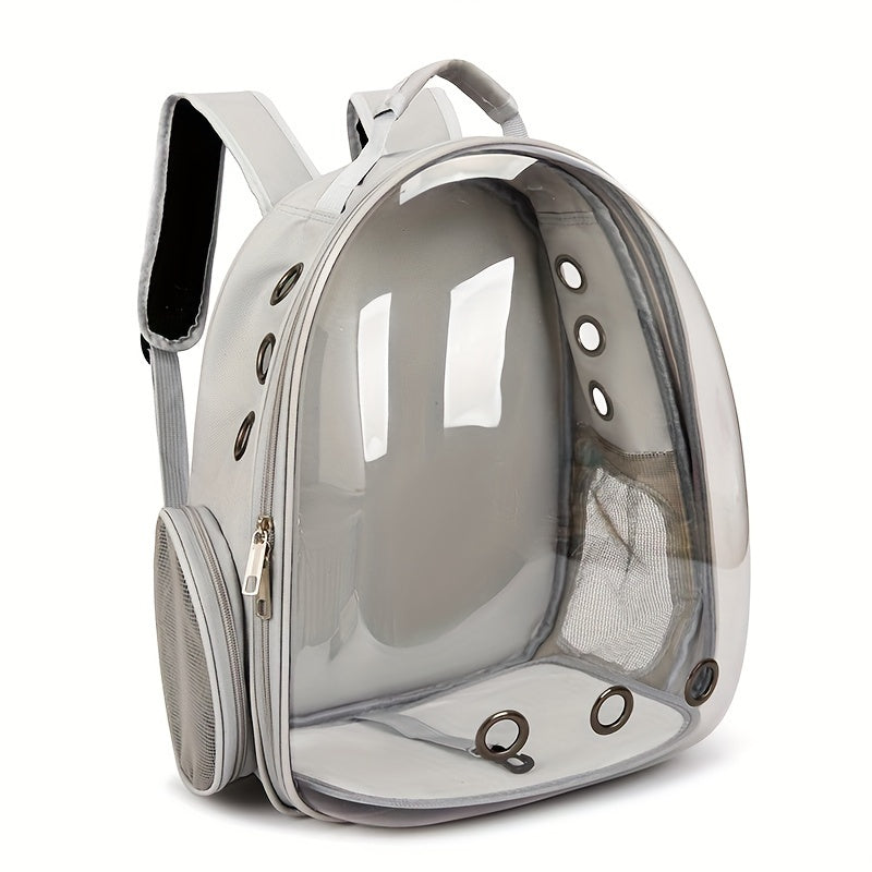Прозрачный рюкзак-переноска для кошек с застежкой на молнии - дышащий и удобный дизайн космической капсулы для домашних животных.