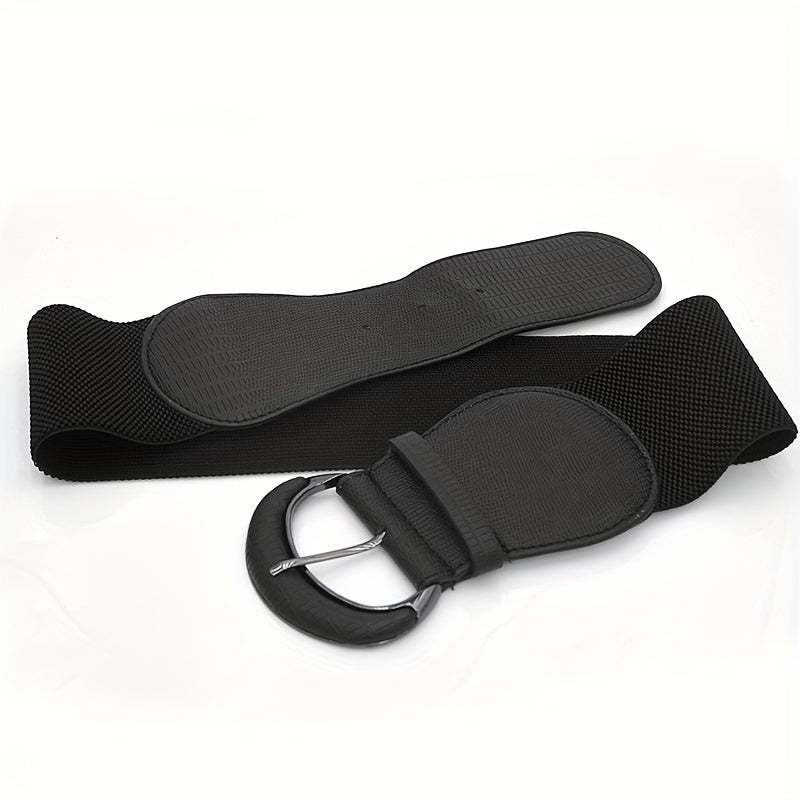 Женский широкий пояс с овальной пряжкой, однотонные цвета, элегантный аксессуар для платья и пальто