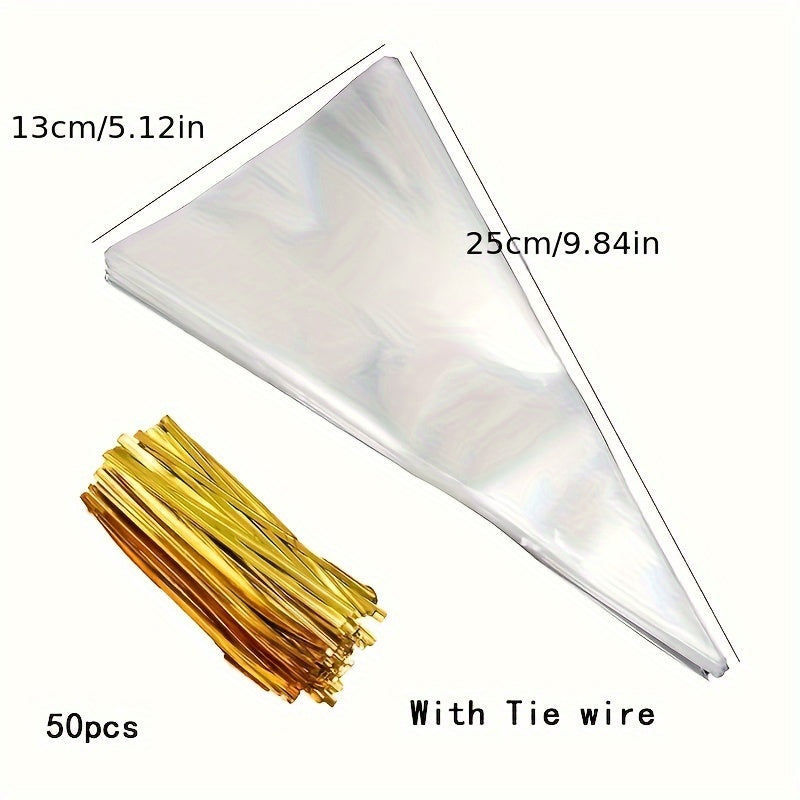 Прозрачные треугольные пакеты для угощений с завязкой из проволоки для конфет, мороженого, попкорна, упаковка 50
