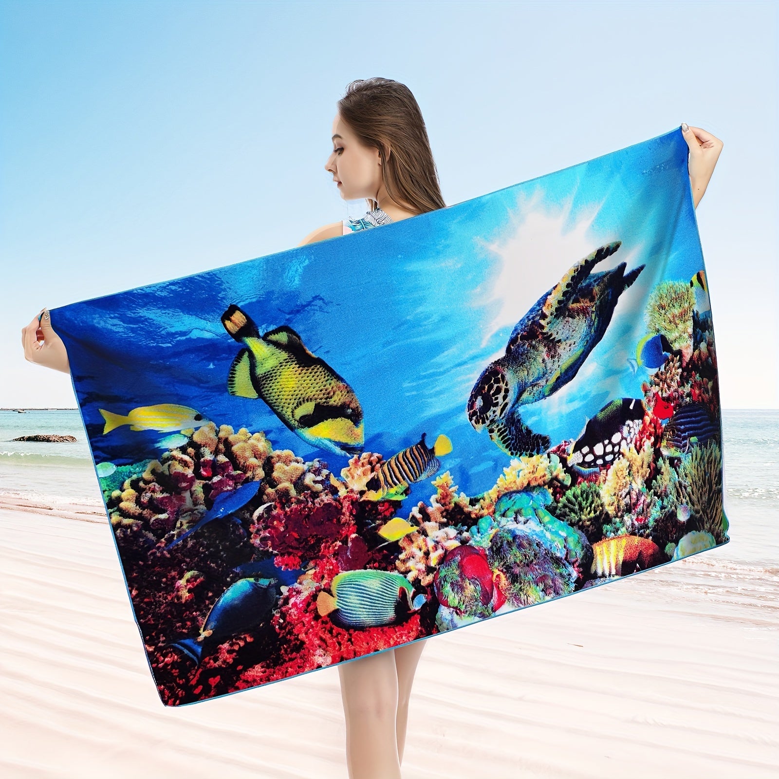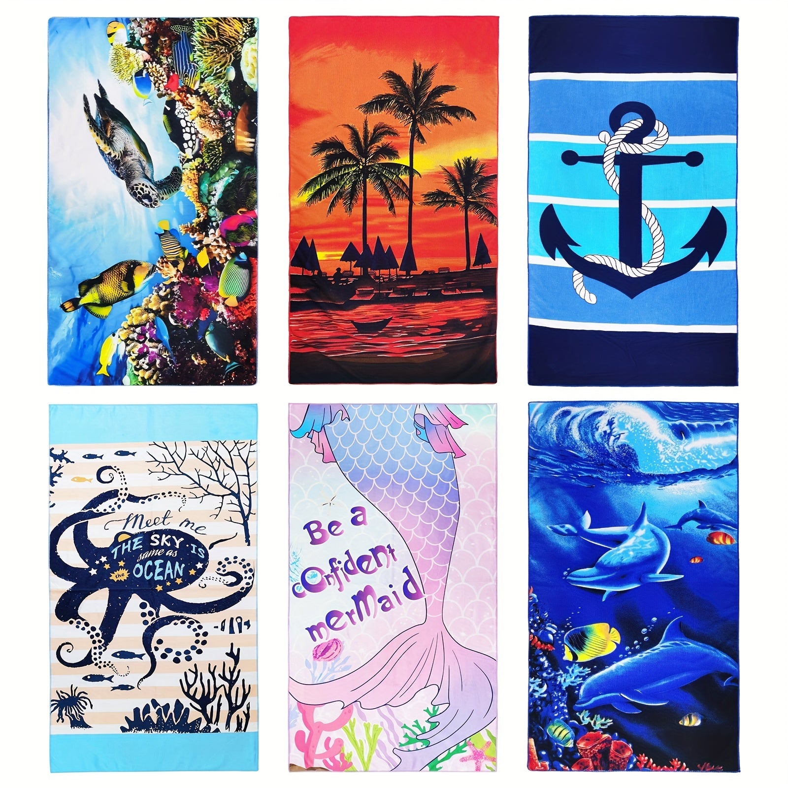Микрофибровые пляжные полотенца 27,5x55 дюймов с яркими морскими принтами, быстро сохнущие, мягкие, впитывающие для плавания, серфинга, йоги, кемпинга
