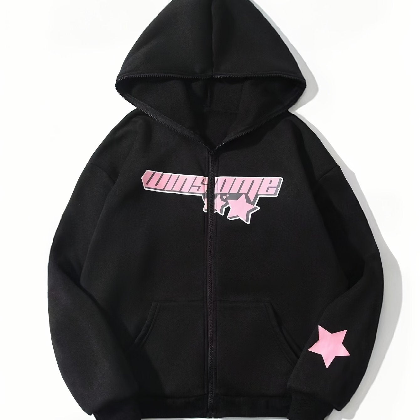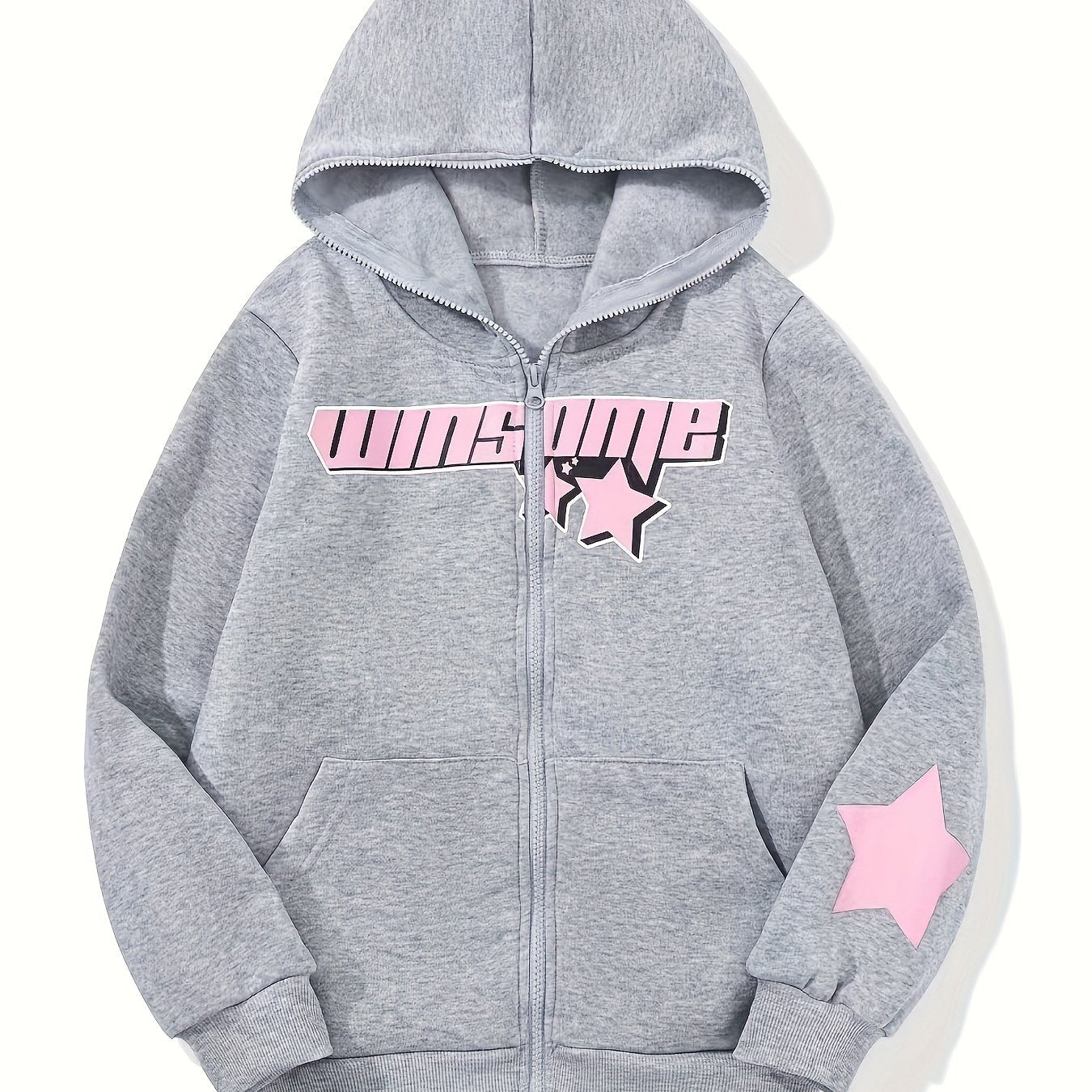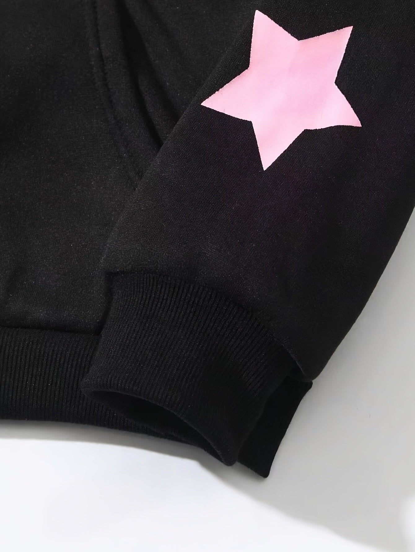 Спортивная толстовка с флисовой подкладкой для девочек-подростков с милым принтом звезд и букв, идеально подходит для повседневной носки на улице.