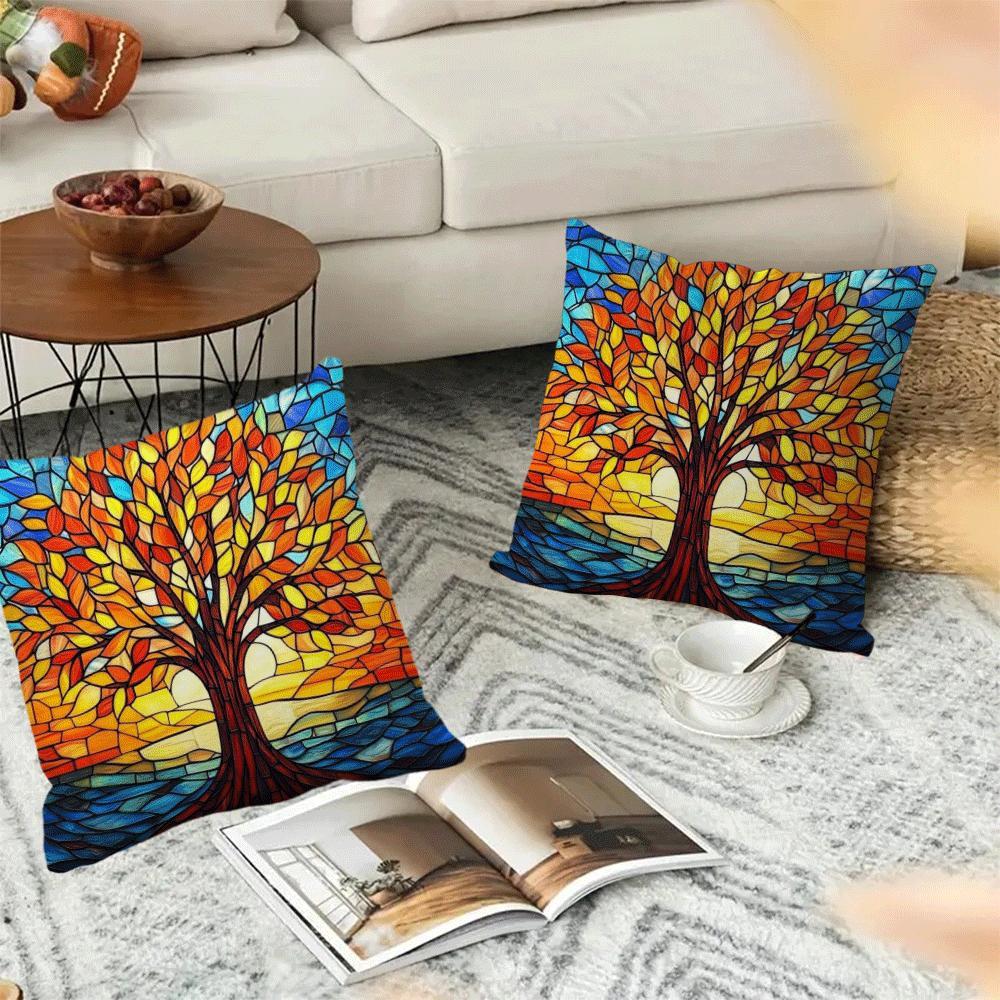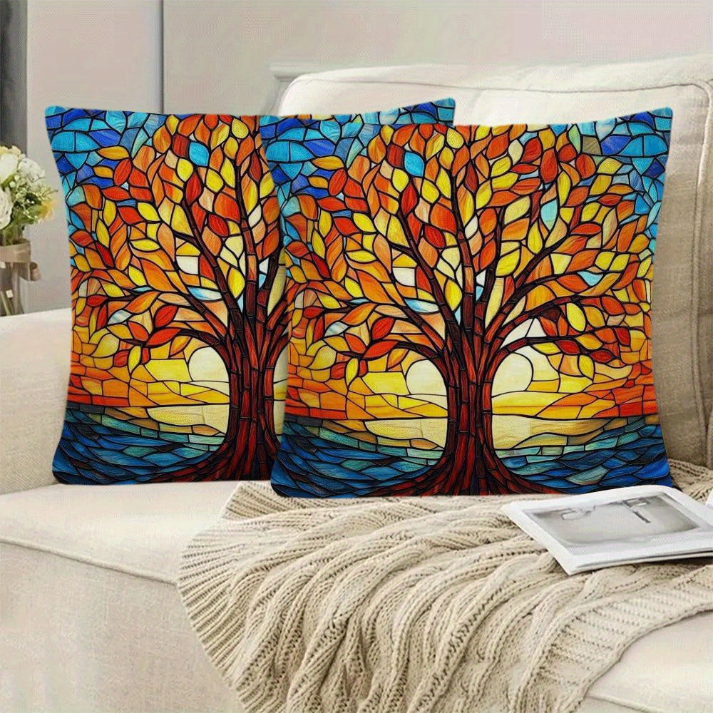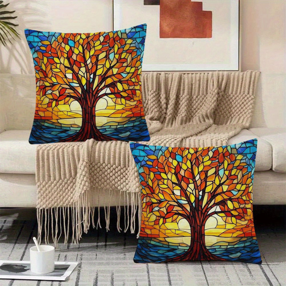 Два чехла для подушек из плюша с изображением Дерева Жизни осенью размером 45,72x45,72 см - Подходят для использования на диване, в спальне и на открытом воздухе. Имеют застежку на молнии и могут стираться в машине.